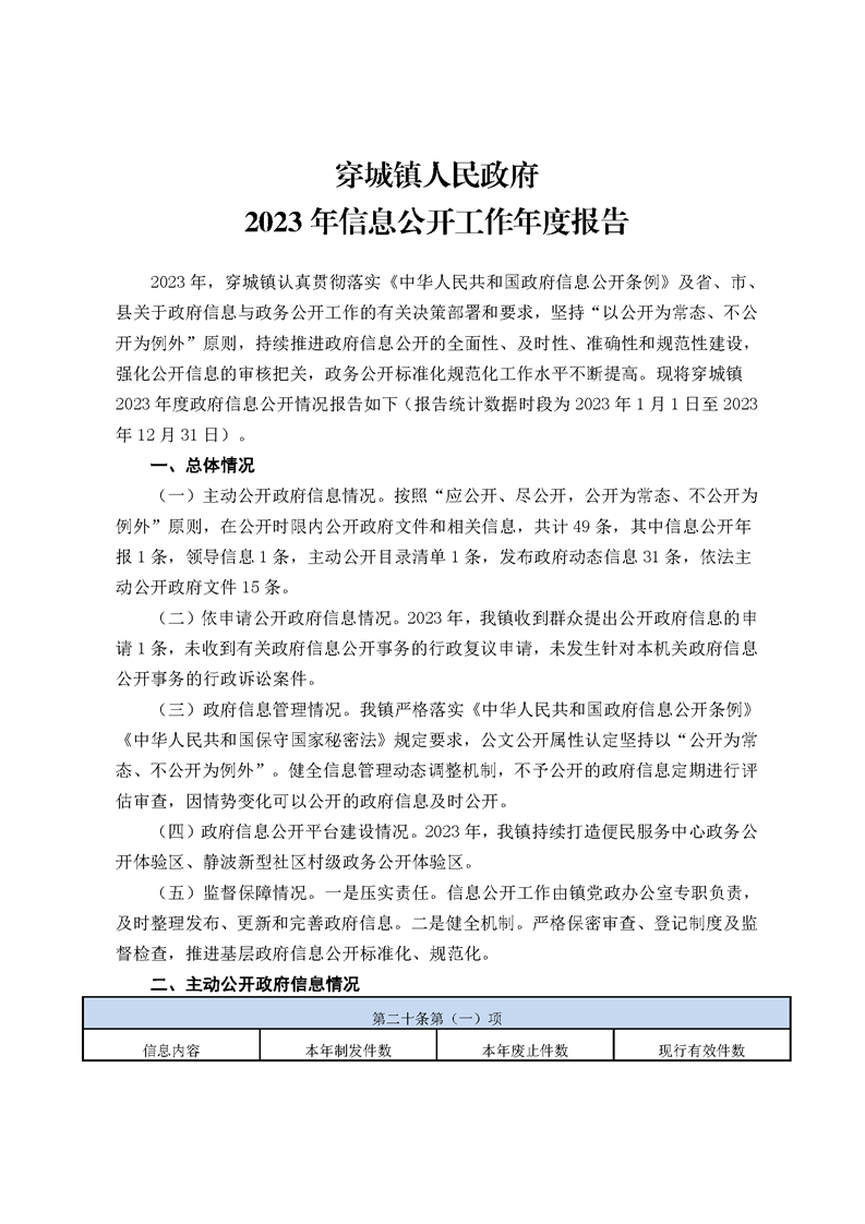 穿城鎮人民政府2023年信息公開工作年度報告