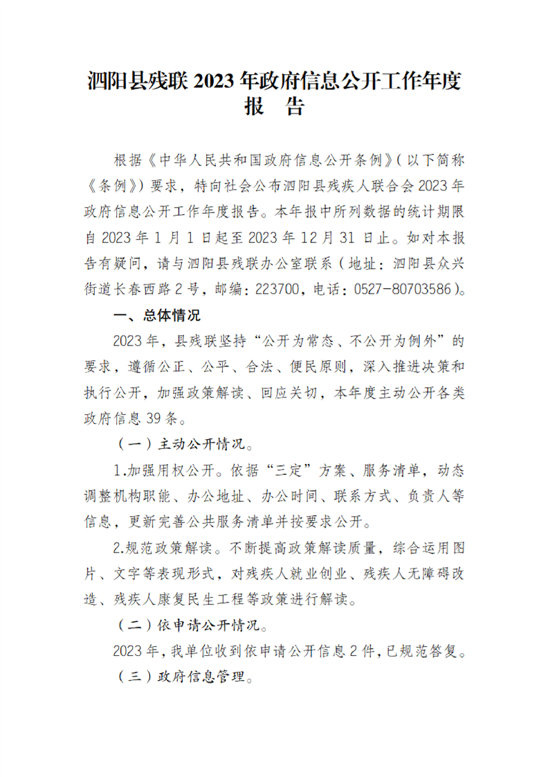 泗陽縣殘聯(lián)2023年政府信息公開工作年度報(bào)告