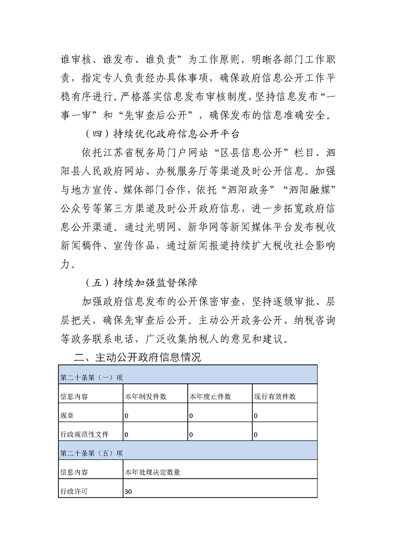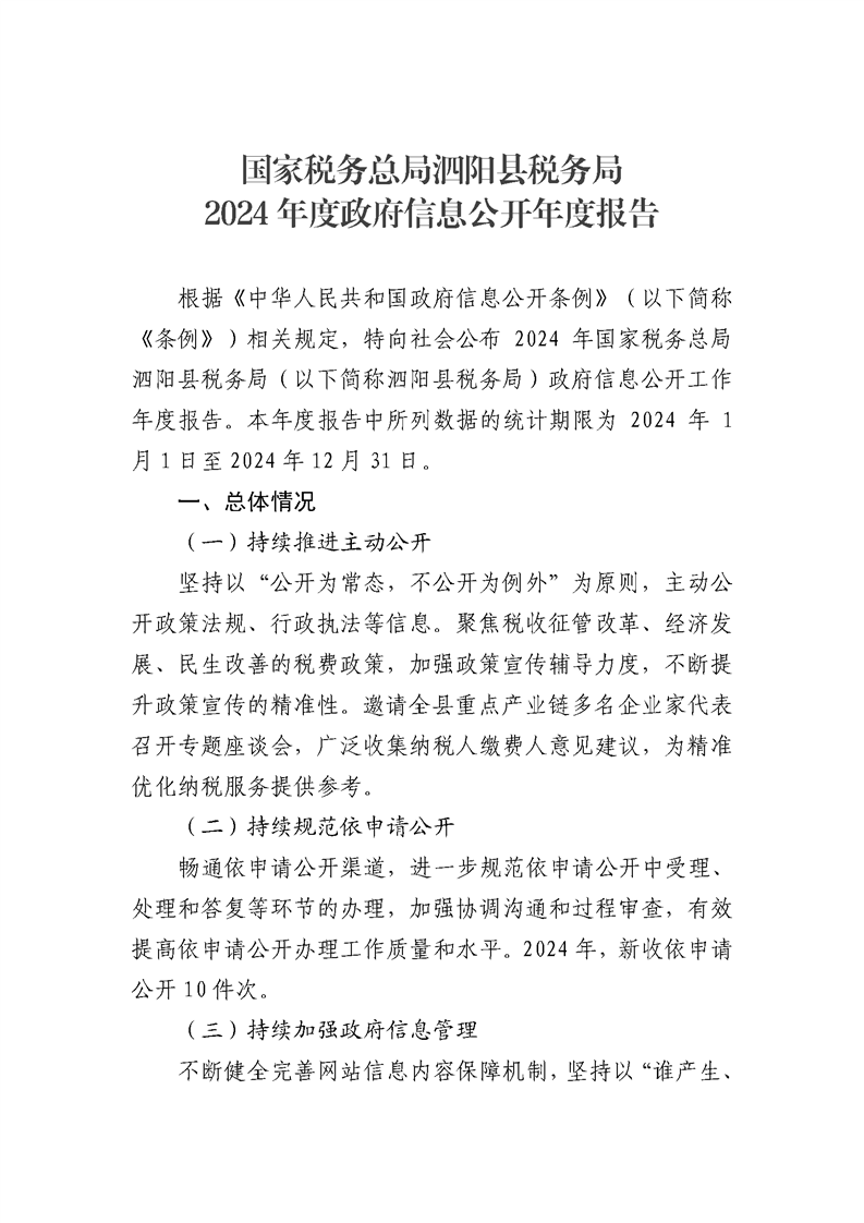 國家稅務總局泗陽縣稅務局2024年度政府信息公開年度報告