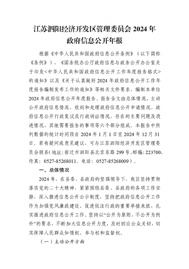 江蘇泗陽經濟開發區管理委員會2024年政府信息公開年報