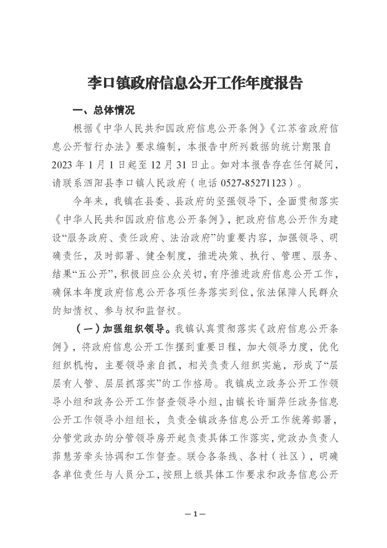 泗陽縣李口鎮人民政府2023年政府信息公開年度報告