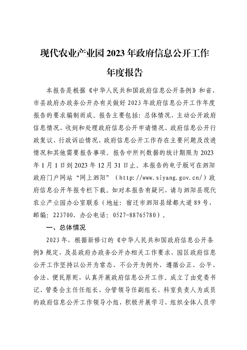 泗陽縣現代農業產業園2023年政府信息公開工作年度報告