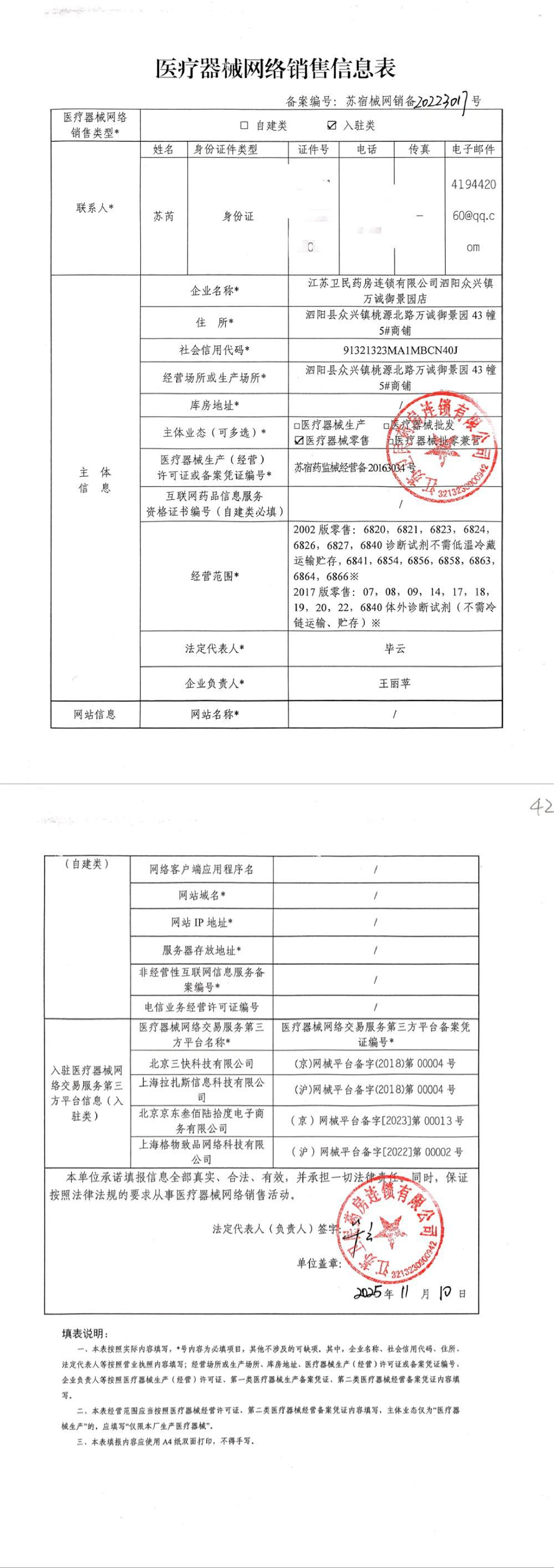 醫療器械網絡銷售:江蘇衛民藥房連鎖有限公司泗陽眾興鎮萬誠御景園店