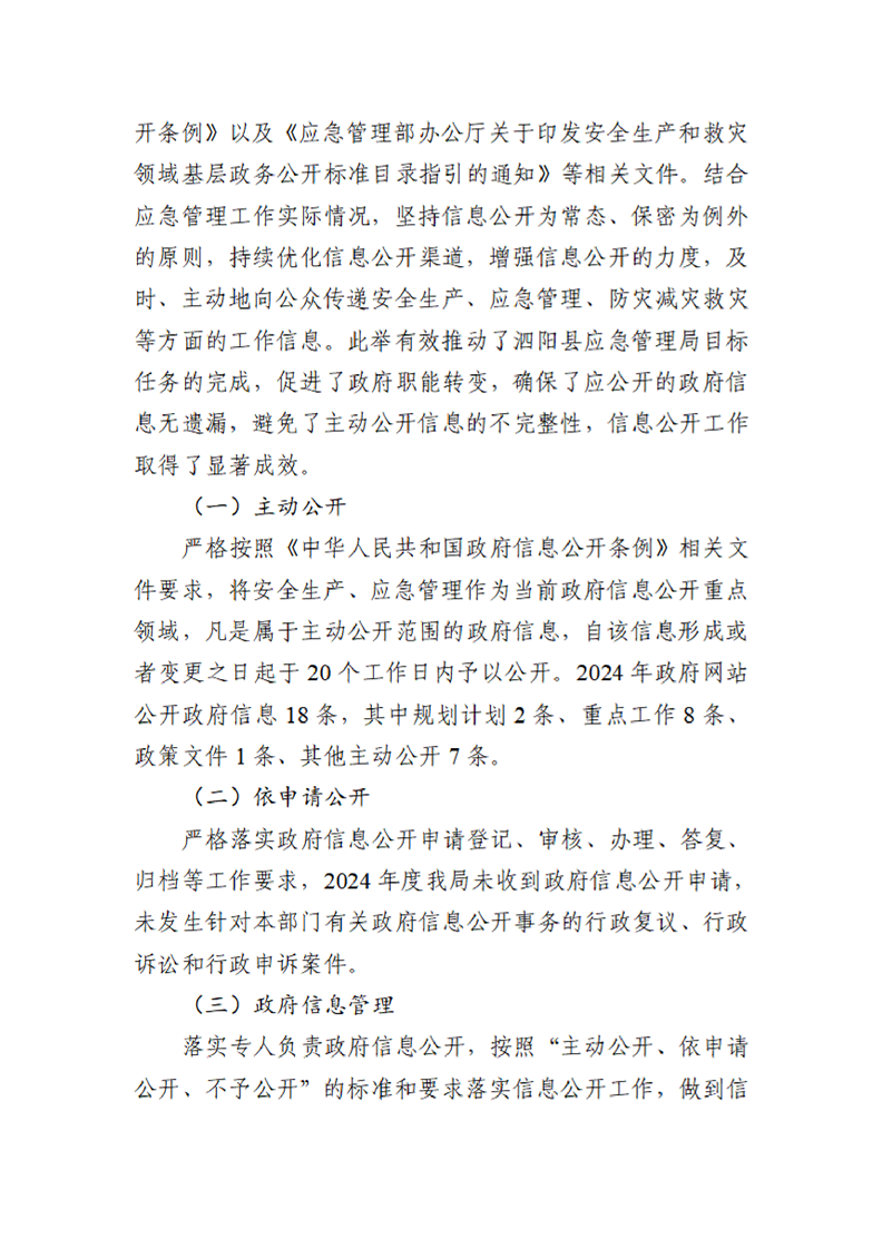 泗陽縣應急管理局2024年政府信息公開工作年度報告