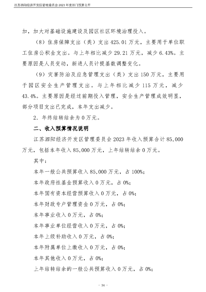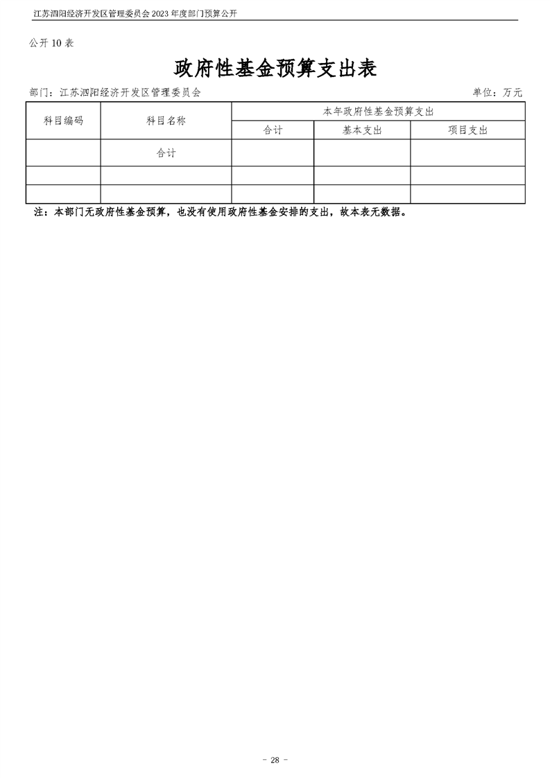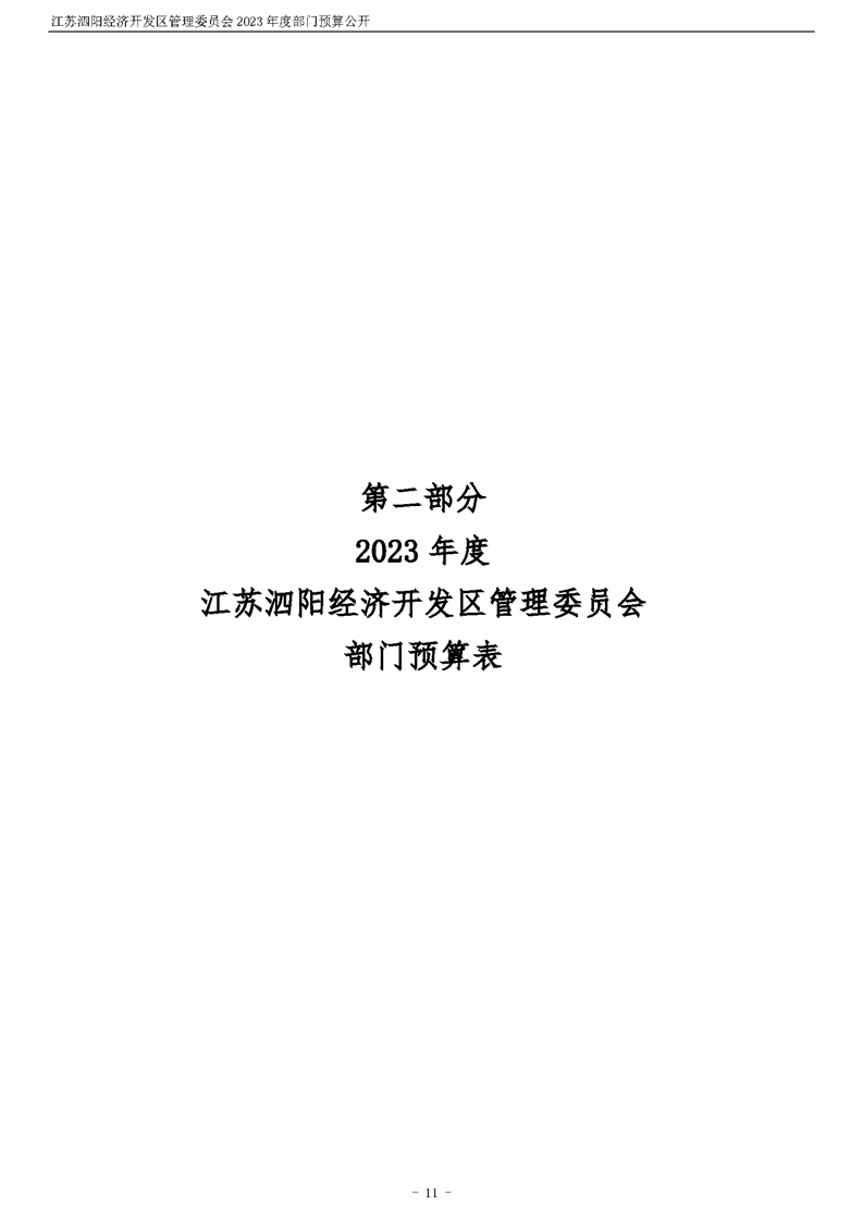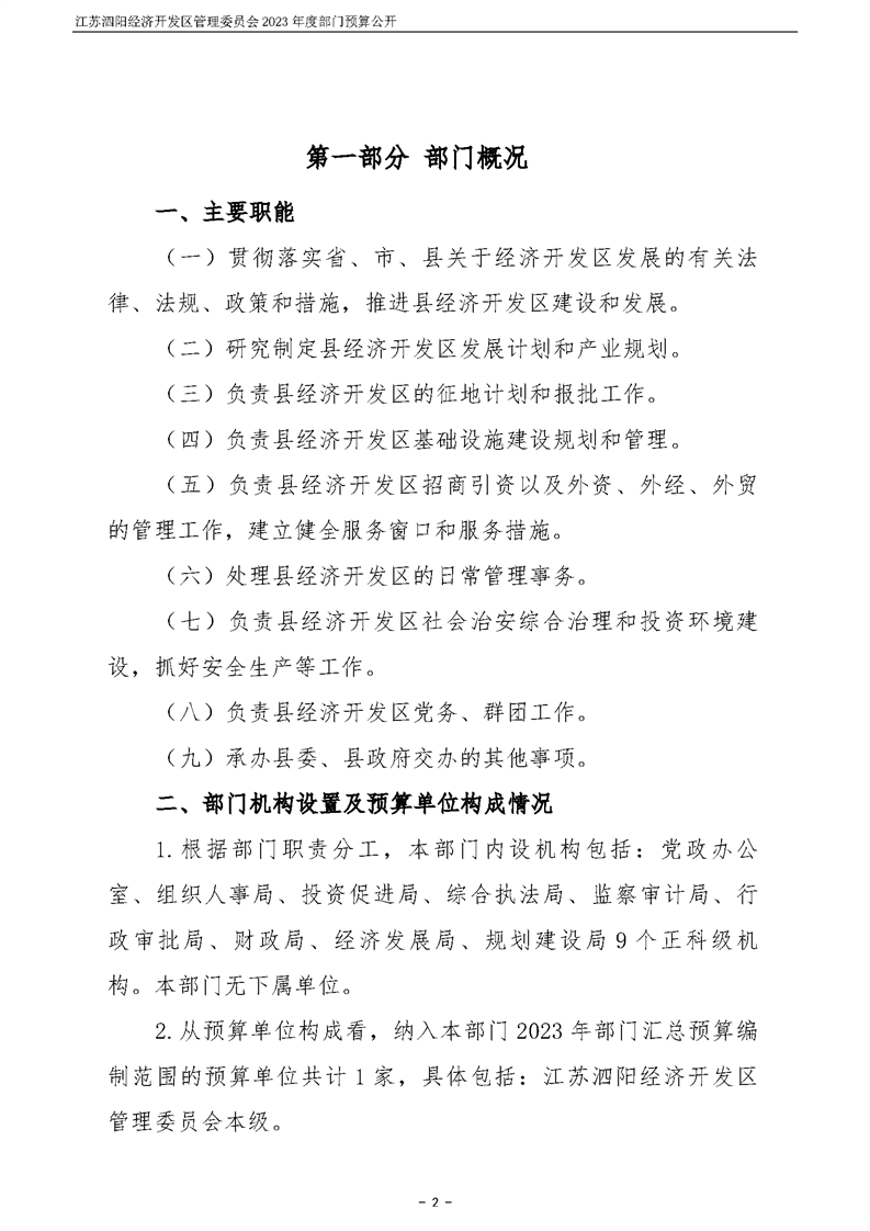 2023年度江蘇泗陽經濟開發區管理委員會部門預算公開