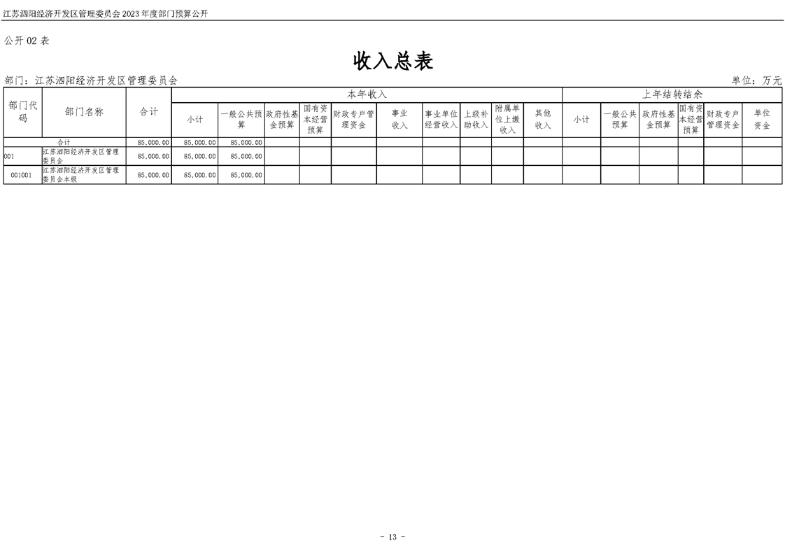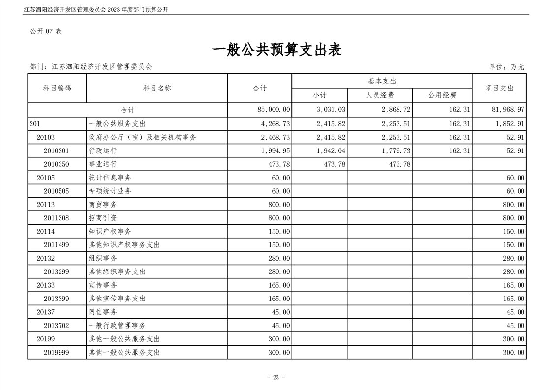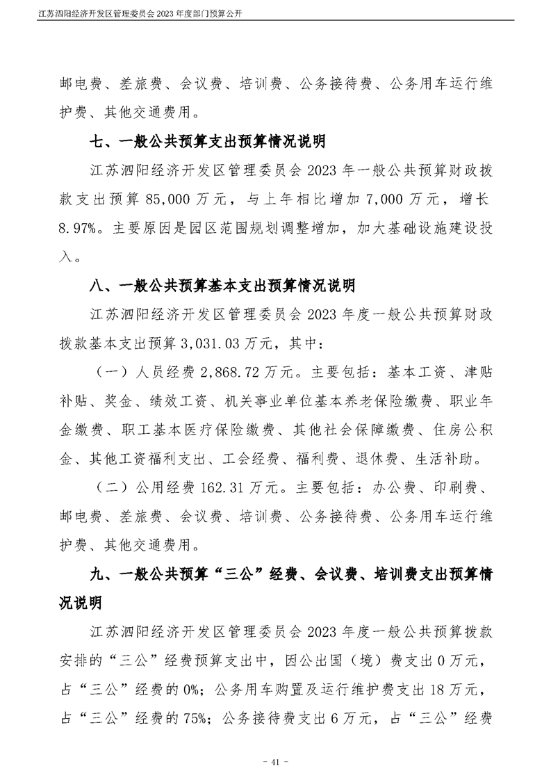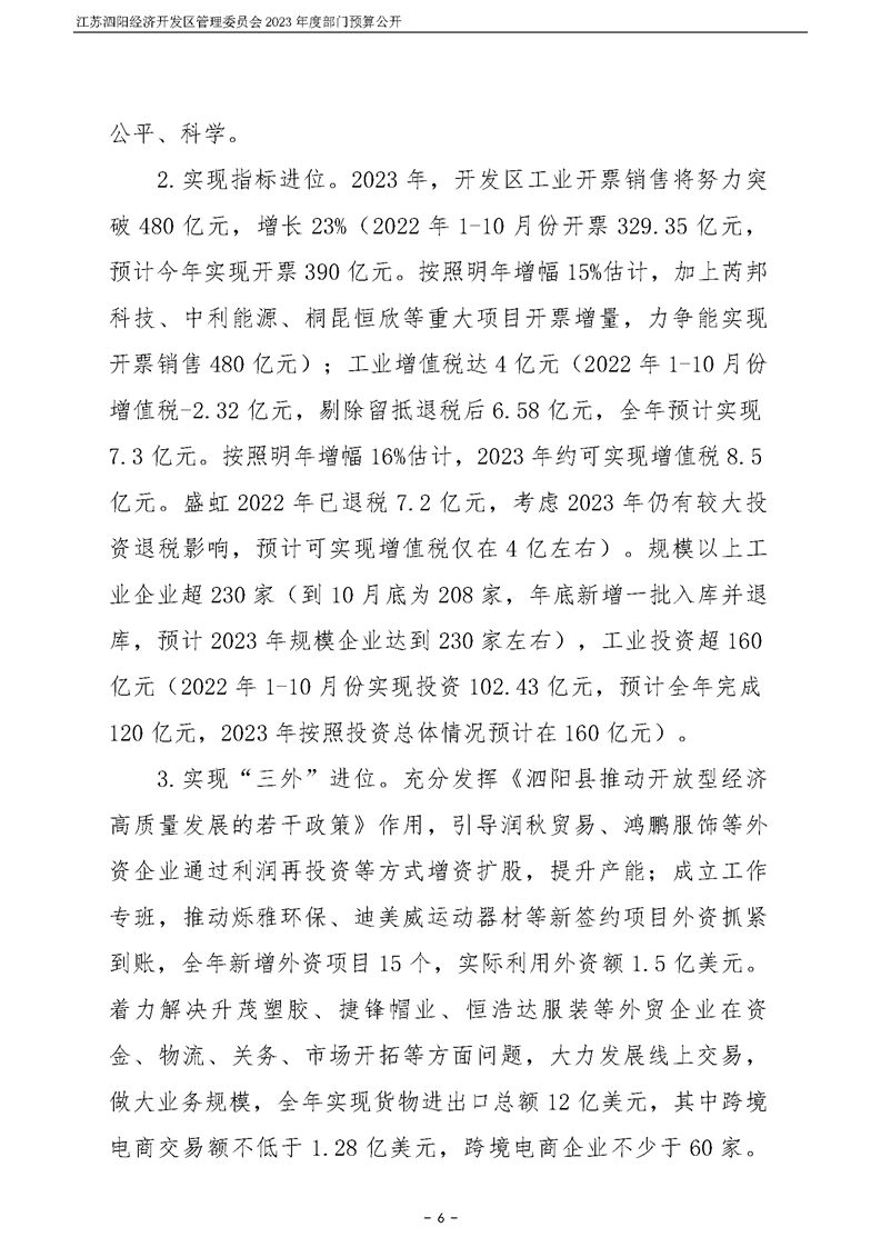 2023年度江蘇泗陽經濟開發區管理委員會部門預算公開