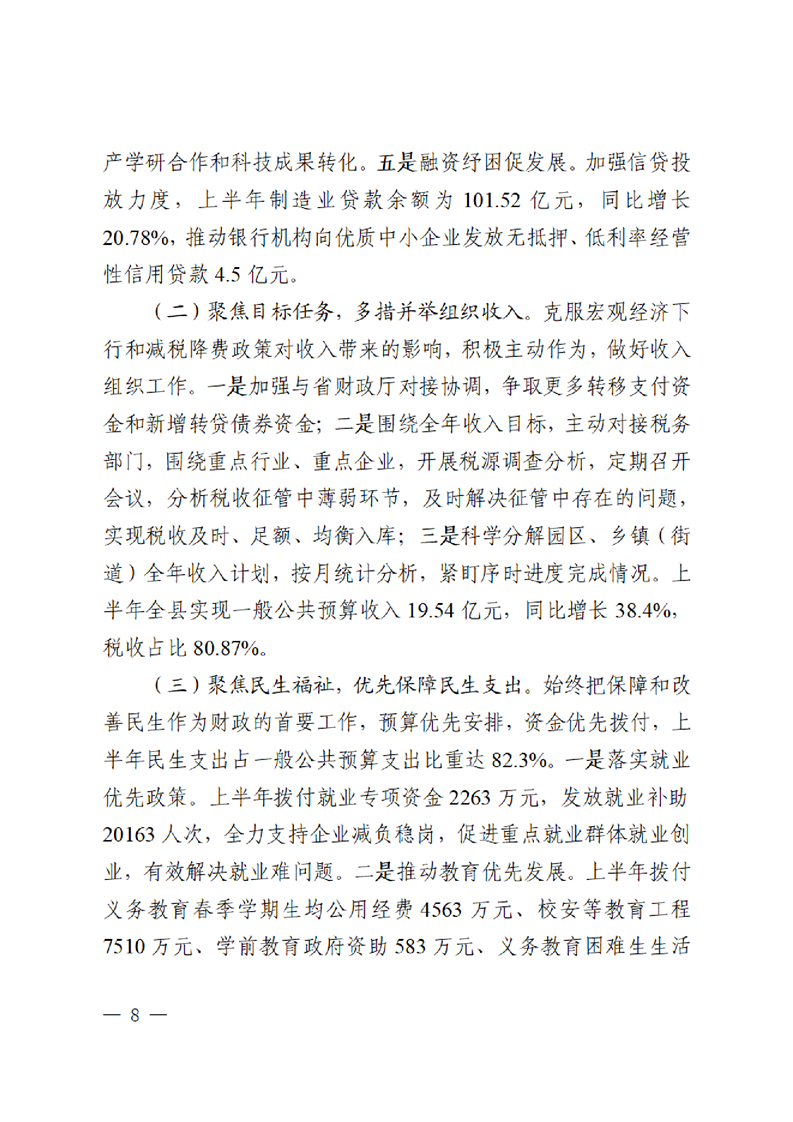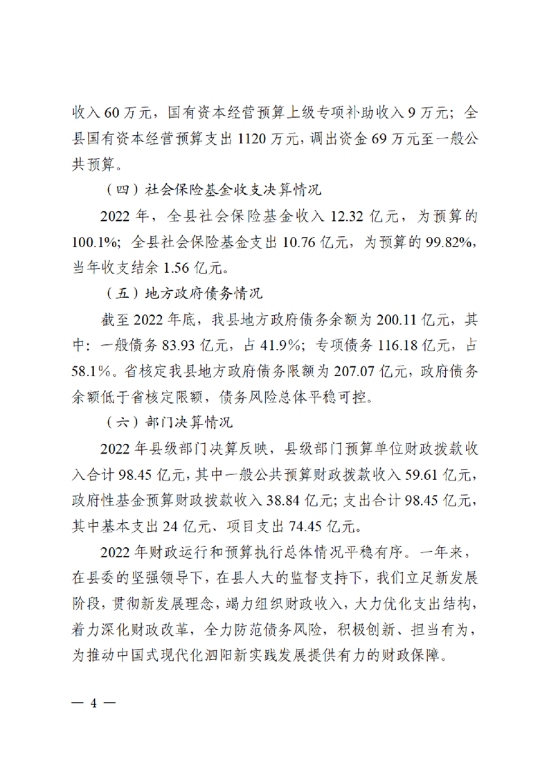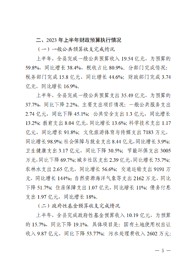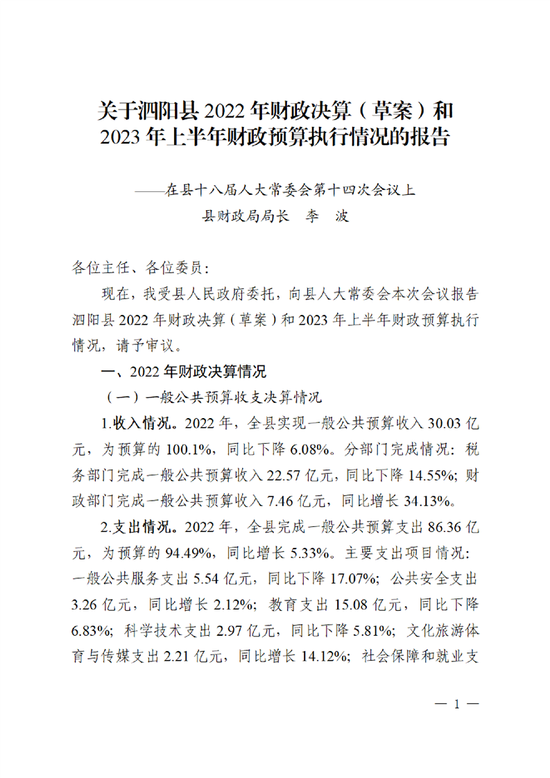 關于泗陽縣2022年財政決算(草案)和2023年上半年財政預算執行情況的報告