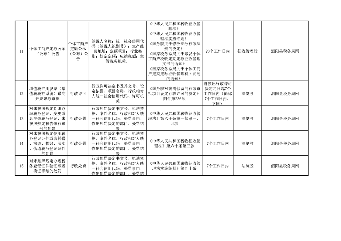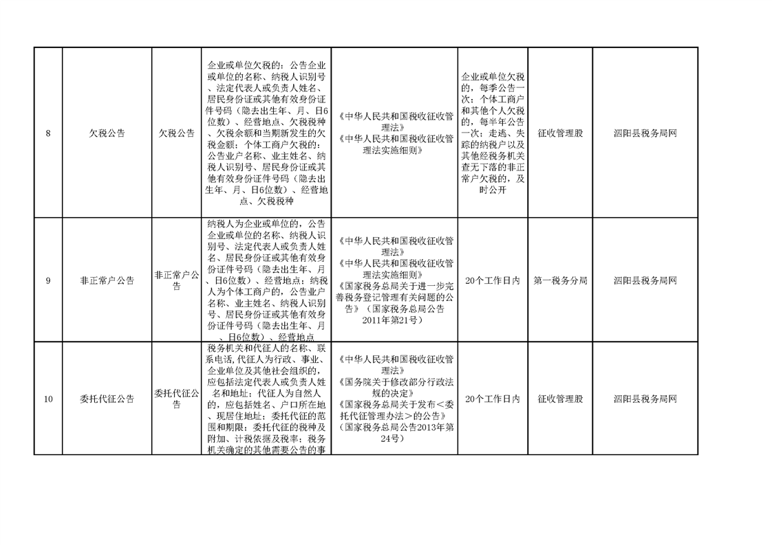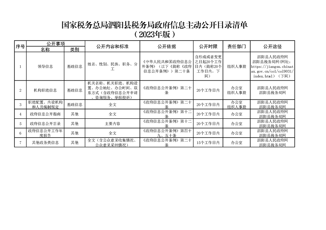 泗陽縣稅務局政府信息主動公開目錄清單(2023)