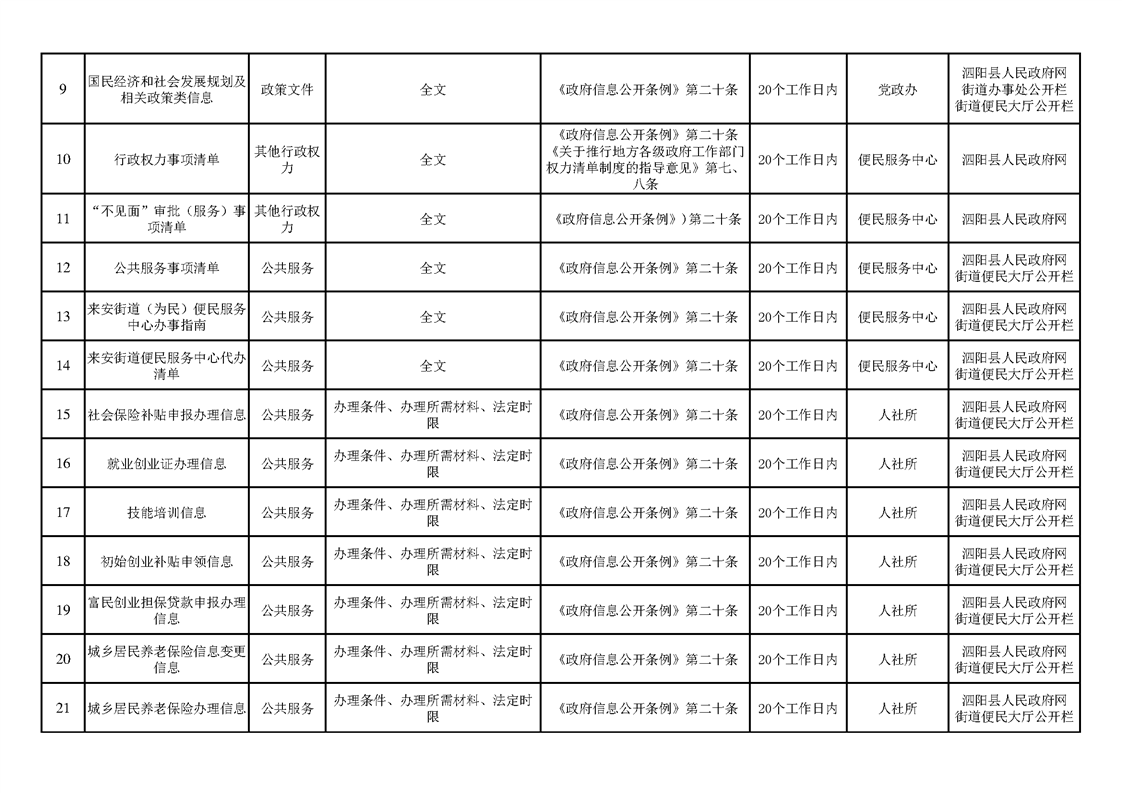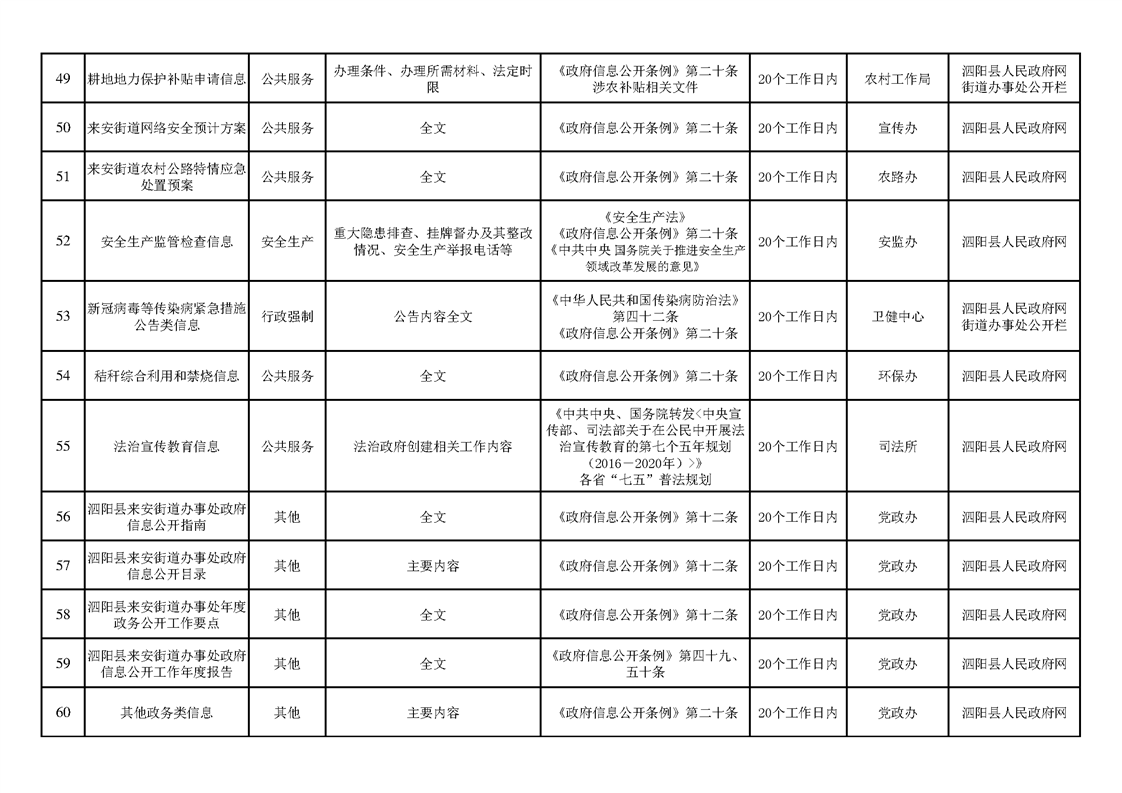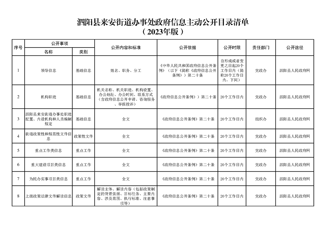 泗陽縣來安街道辦事處政府信息主動公開目錄清單(2023)