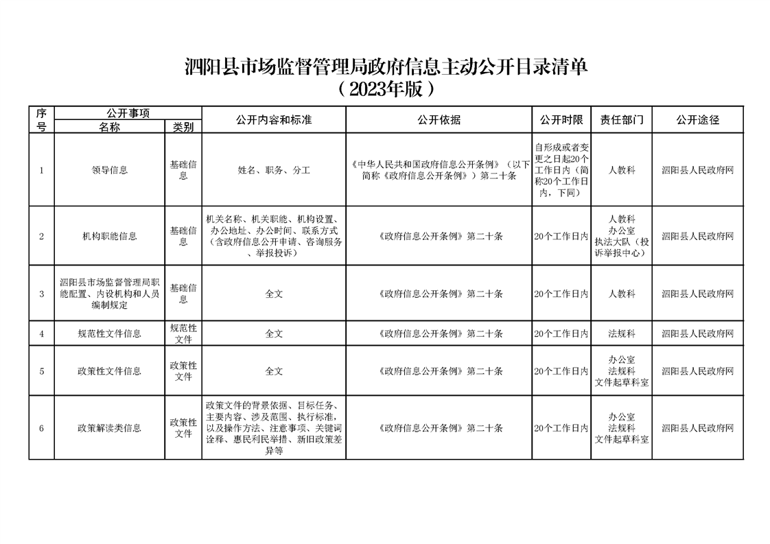 泗陽縣市場監(jiān)督管理局政府信息主動公開目錄清單(2023)