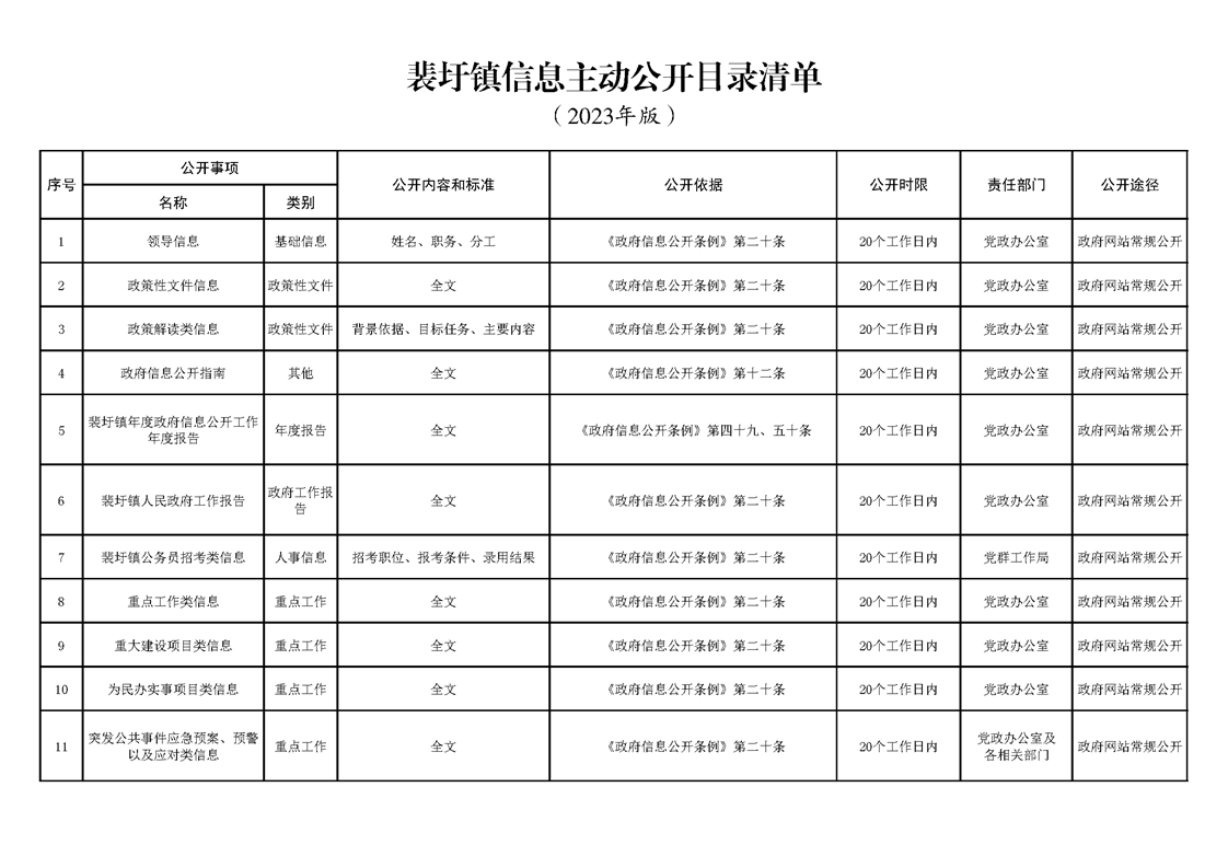 泗陽縣裴圩鎮政府信息主動公開目錄清單(2023)