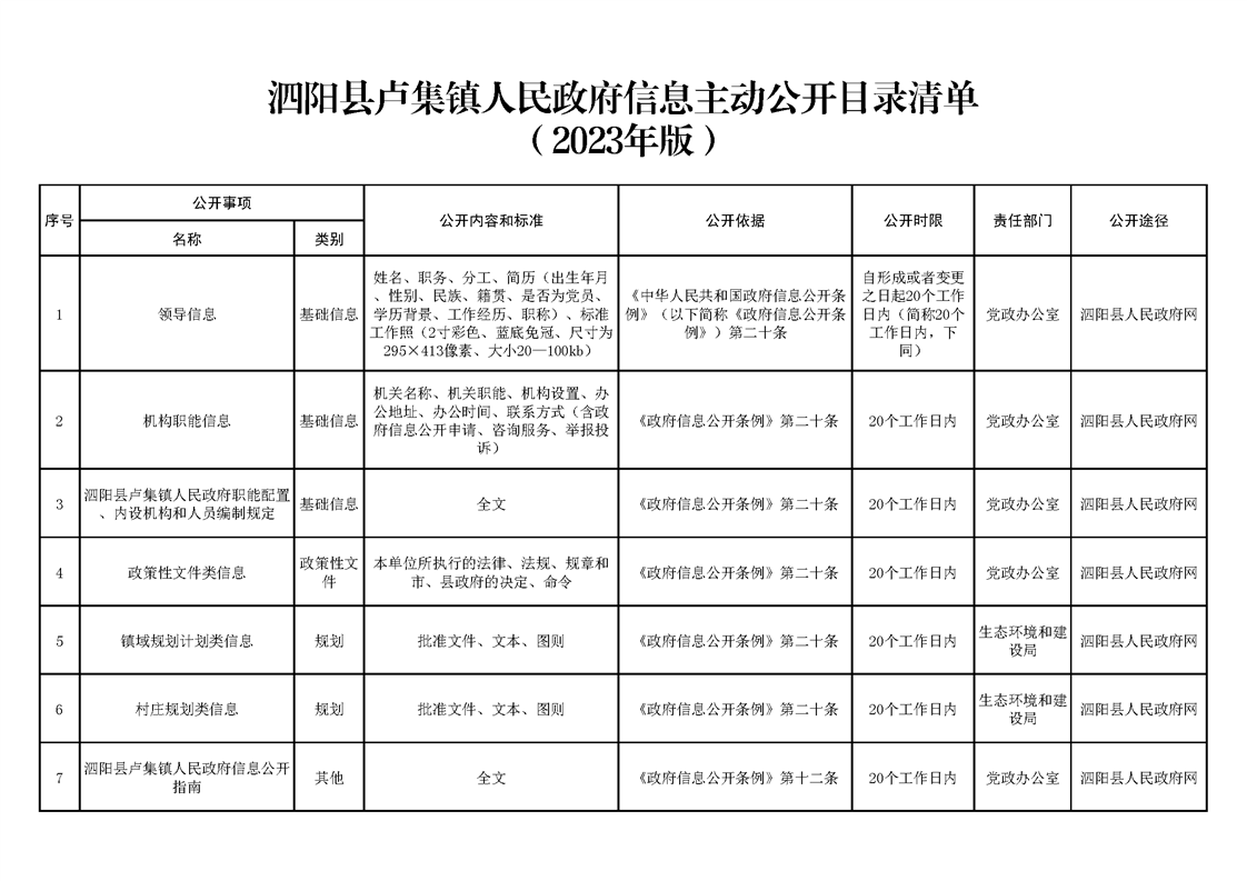 泗陽縣盧集鎮(zhèn)政府信息主動公開目錄清單(2023)