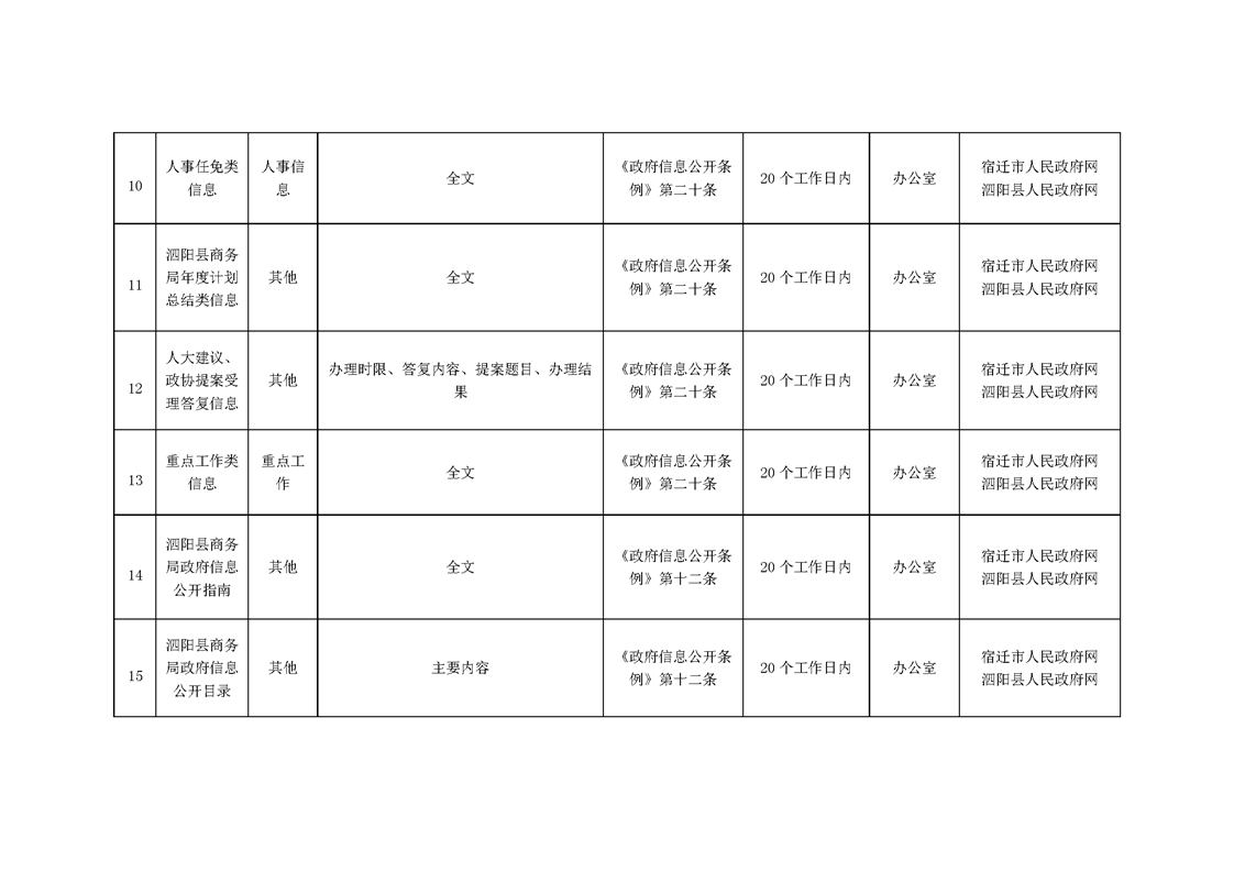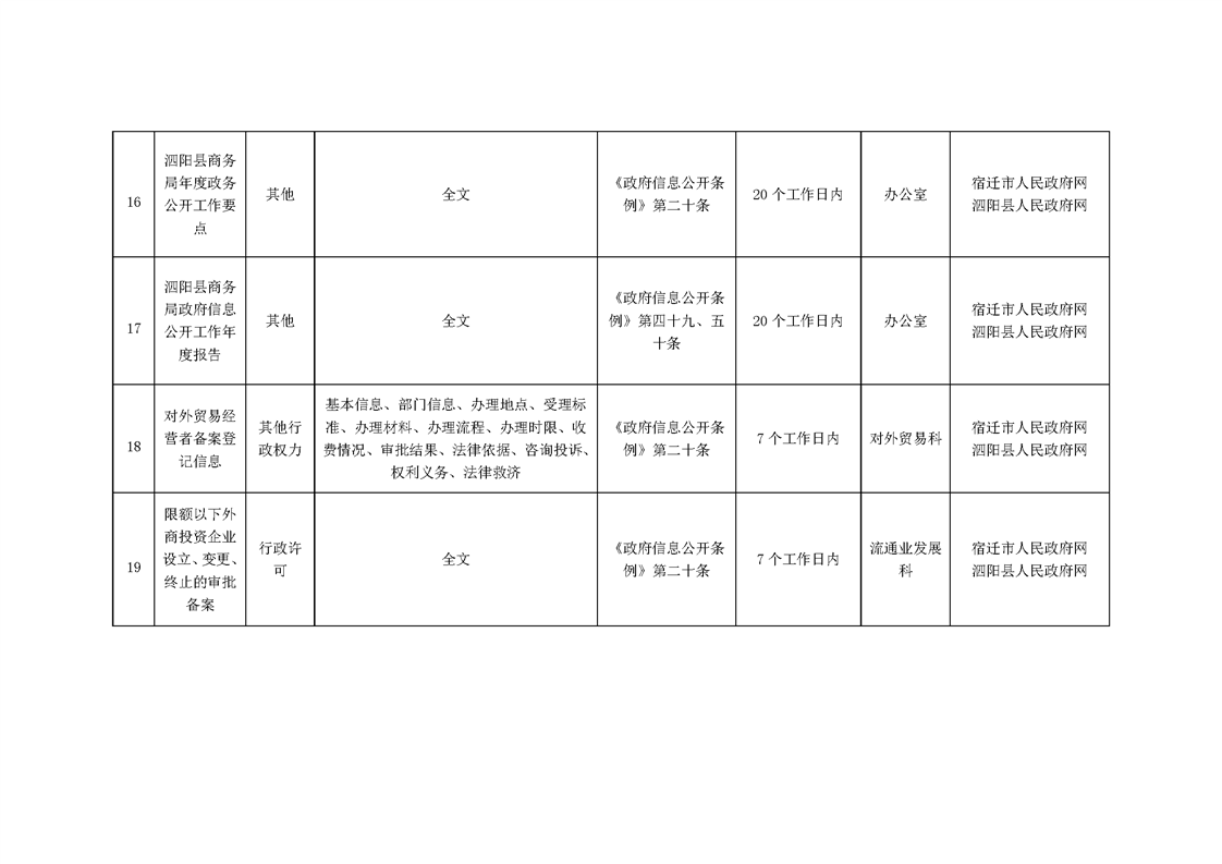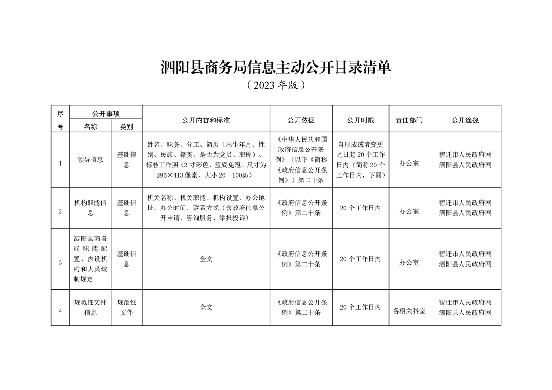 泗陽縣商務(wù)局政府信息主動公開目錄清單(2023)