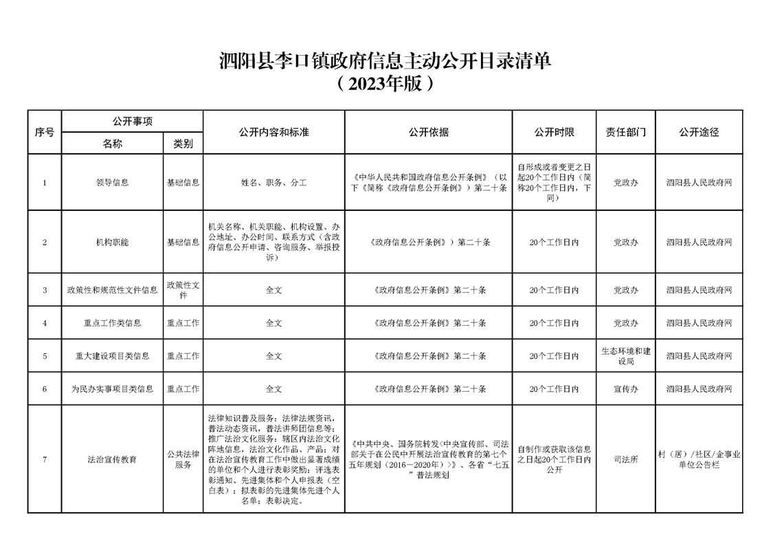 泗陽縣李口鎮(zhèn)政府信息主動公開目錄清單(2023)