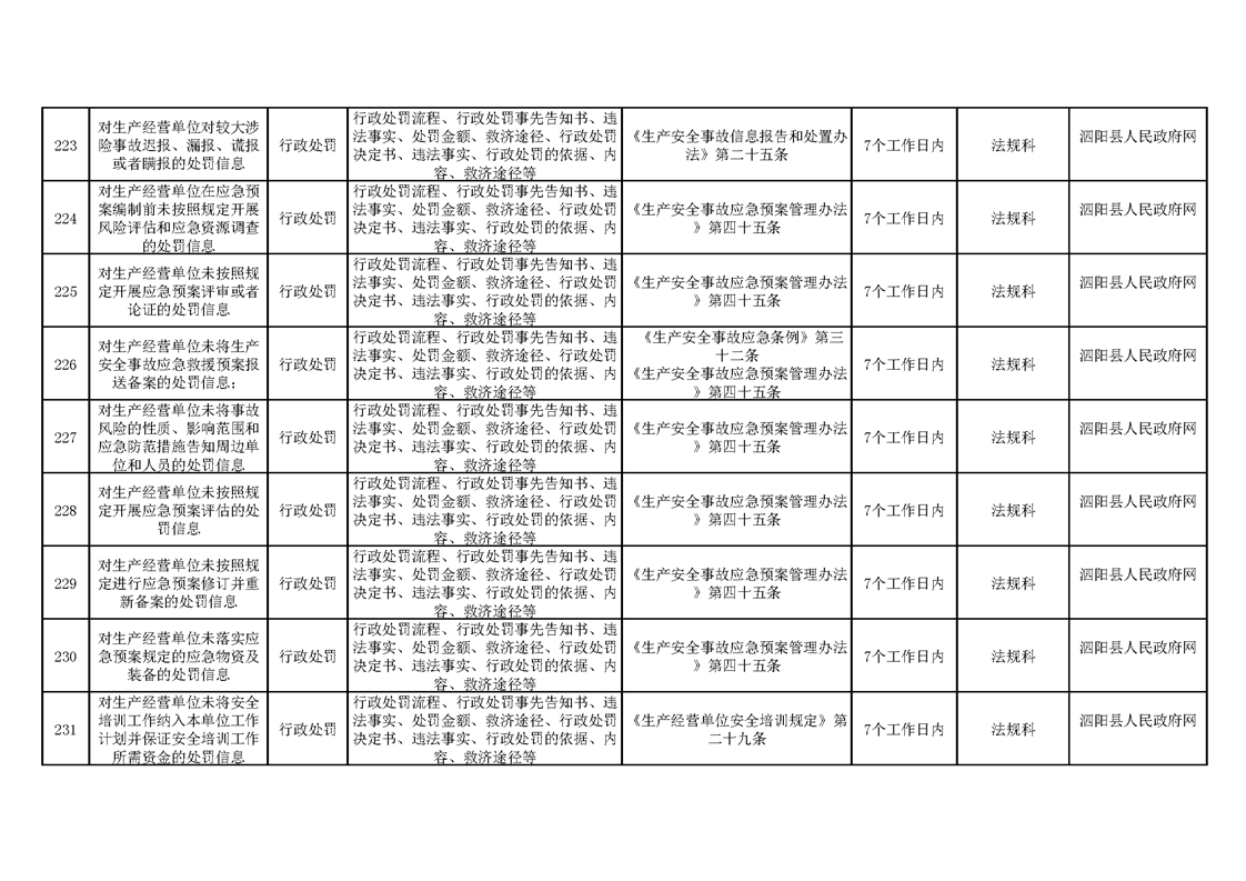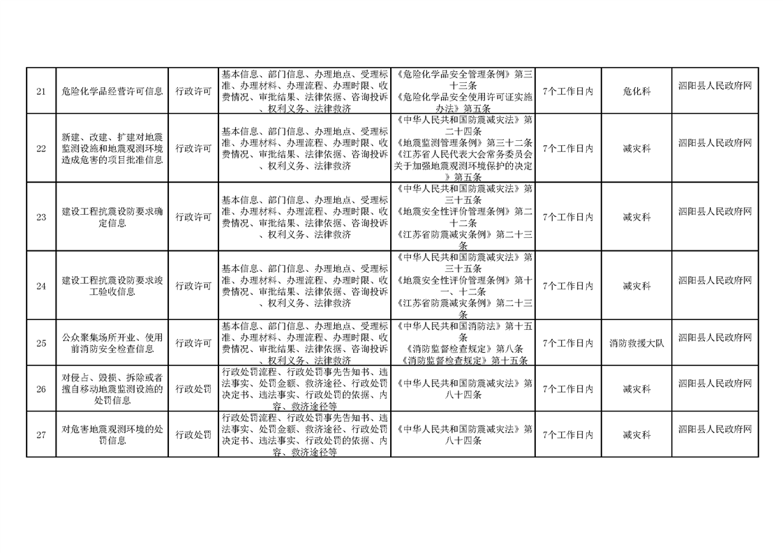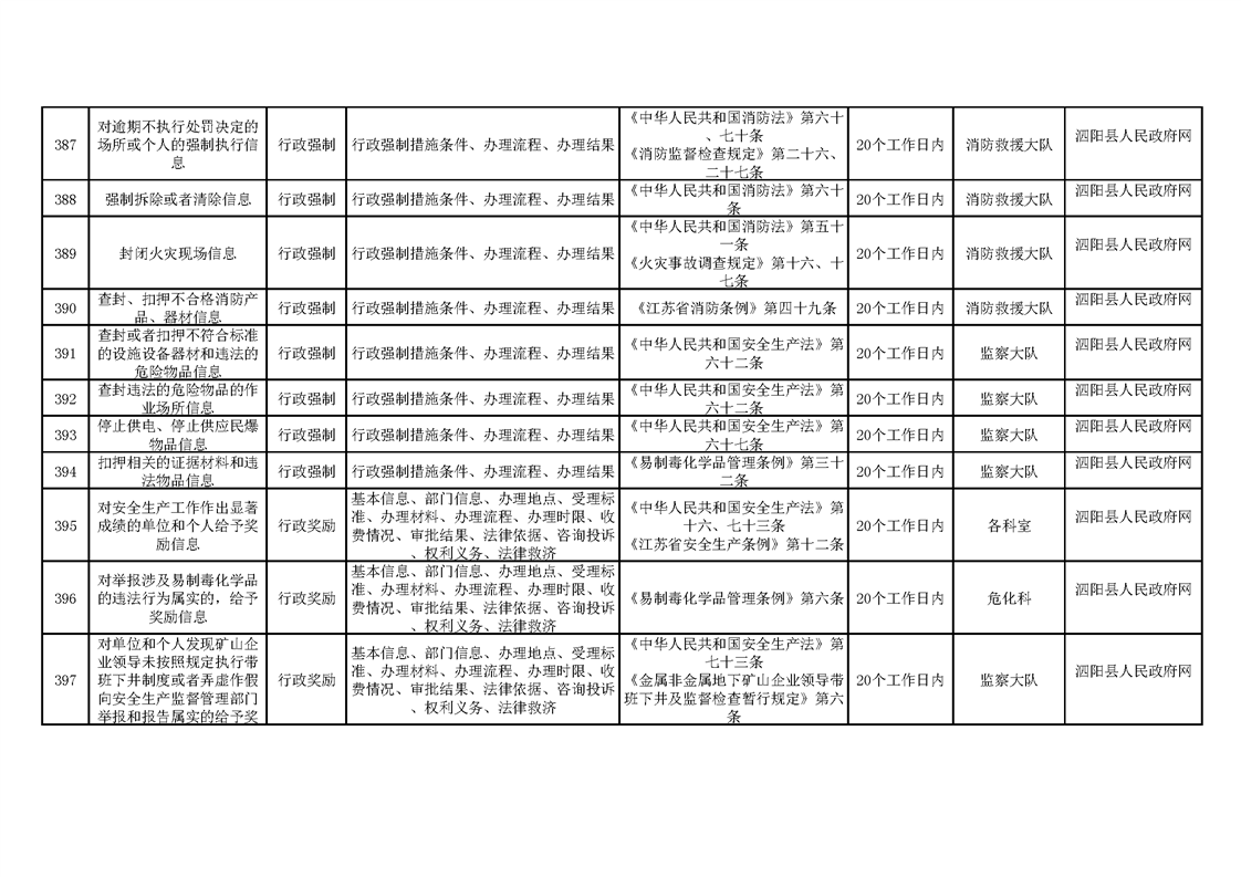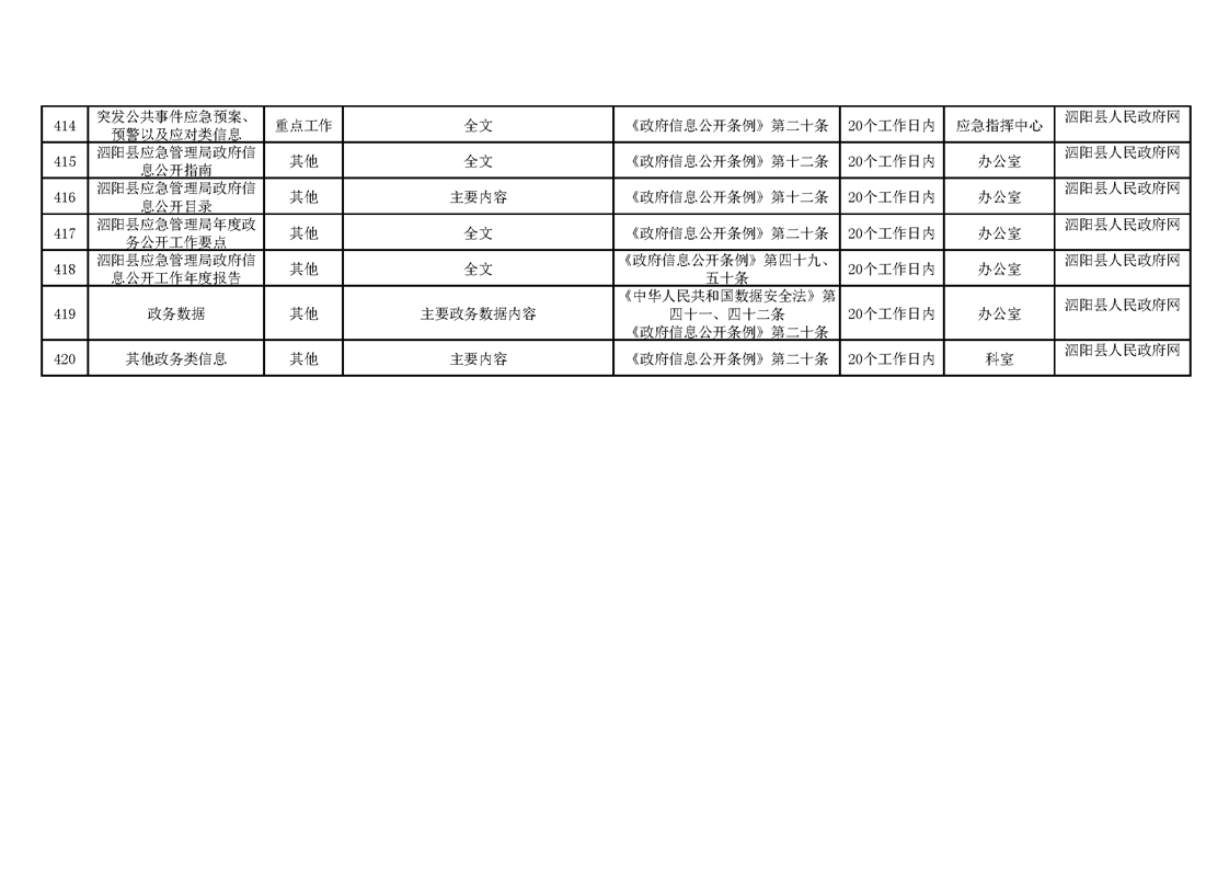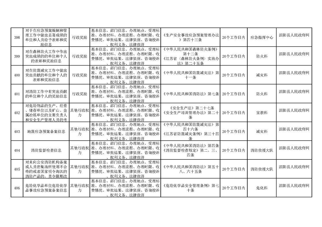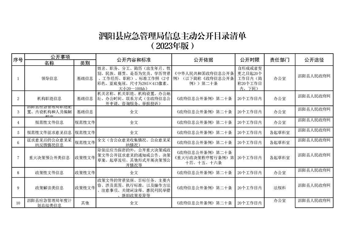 泗陽縣應急管理局政府信息主動公開目錄清單(2023)