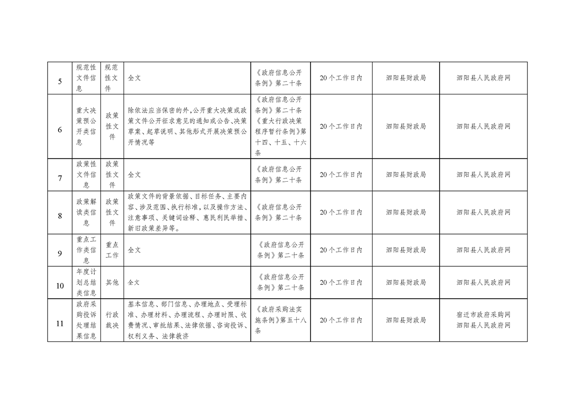 泗陽縣財政局政府信息主動公開目錄清單(2023)