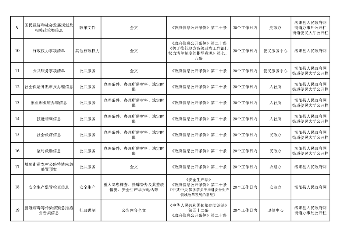 泗陽縣城廂街道辦事處政府信息主動公開目錄清單(2023)