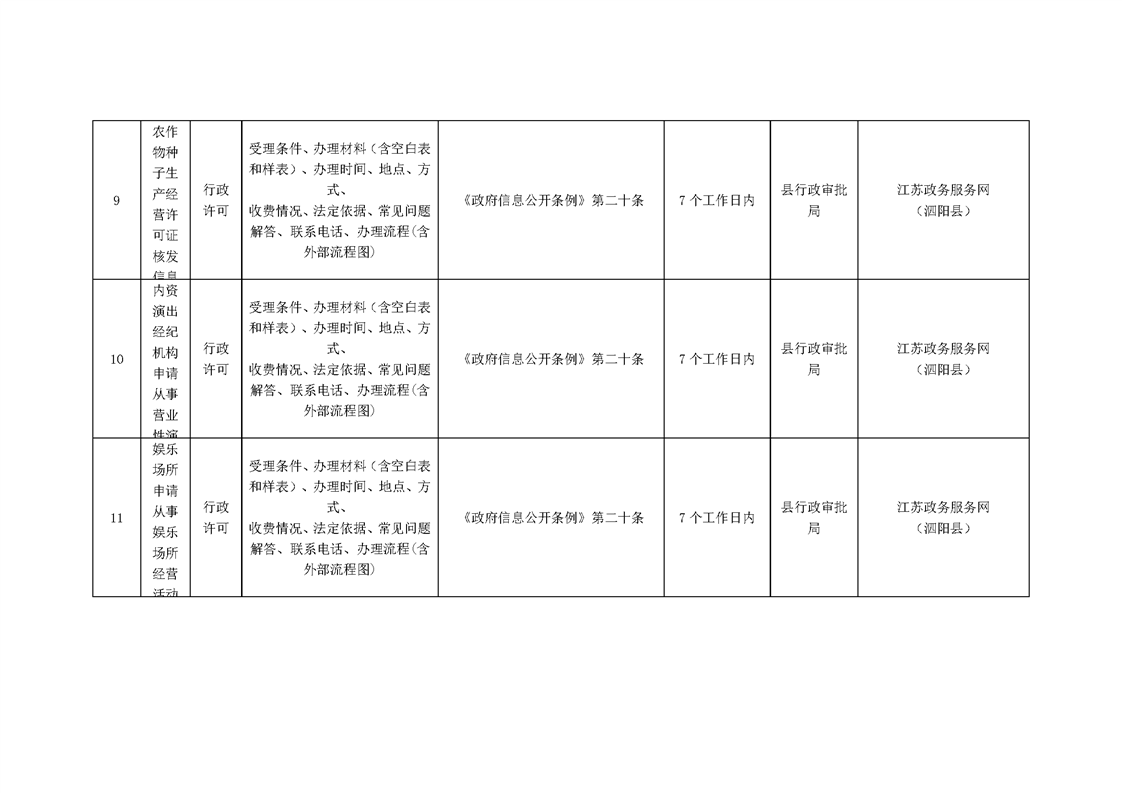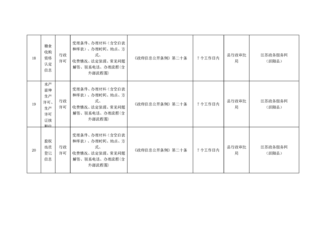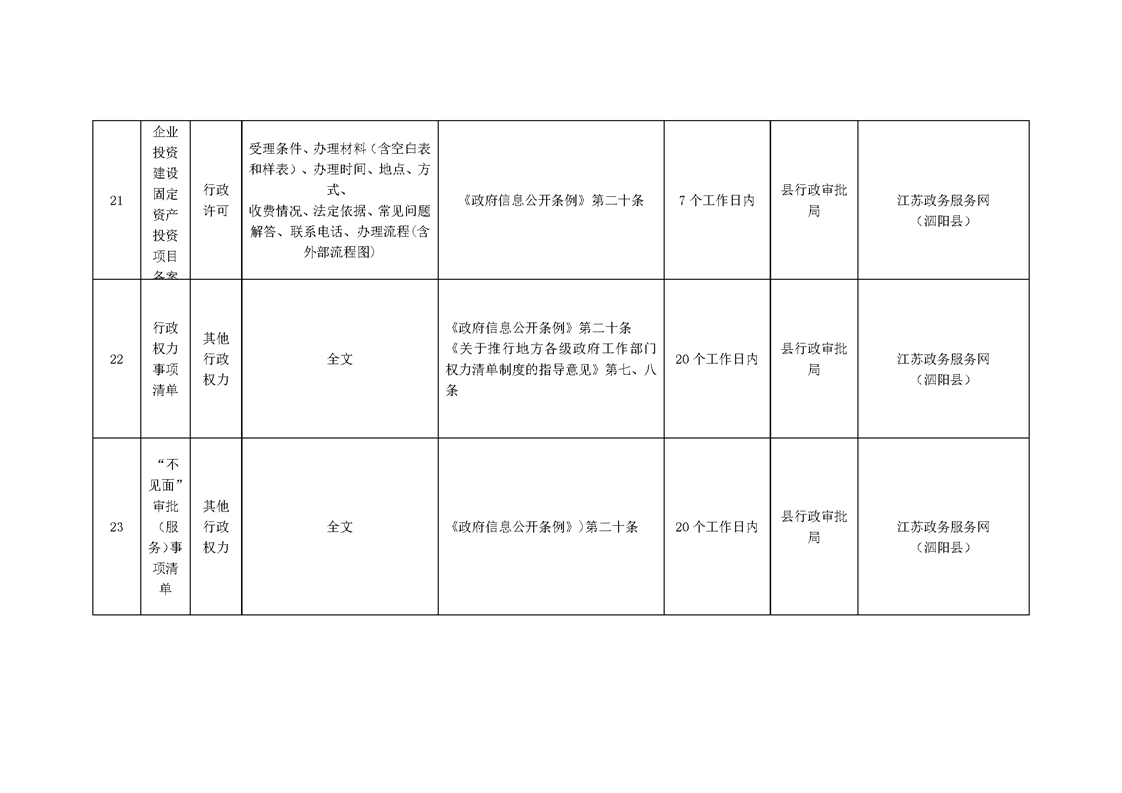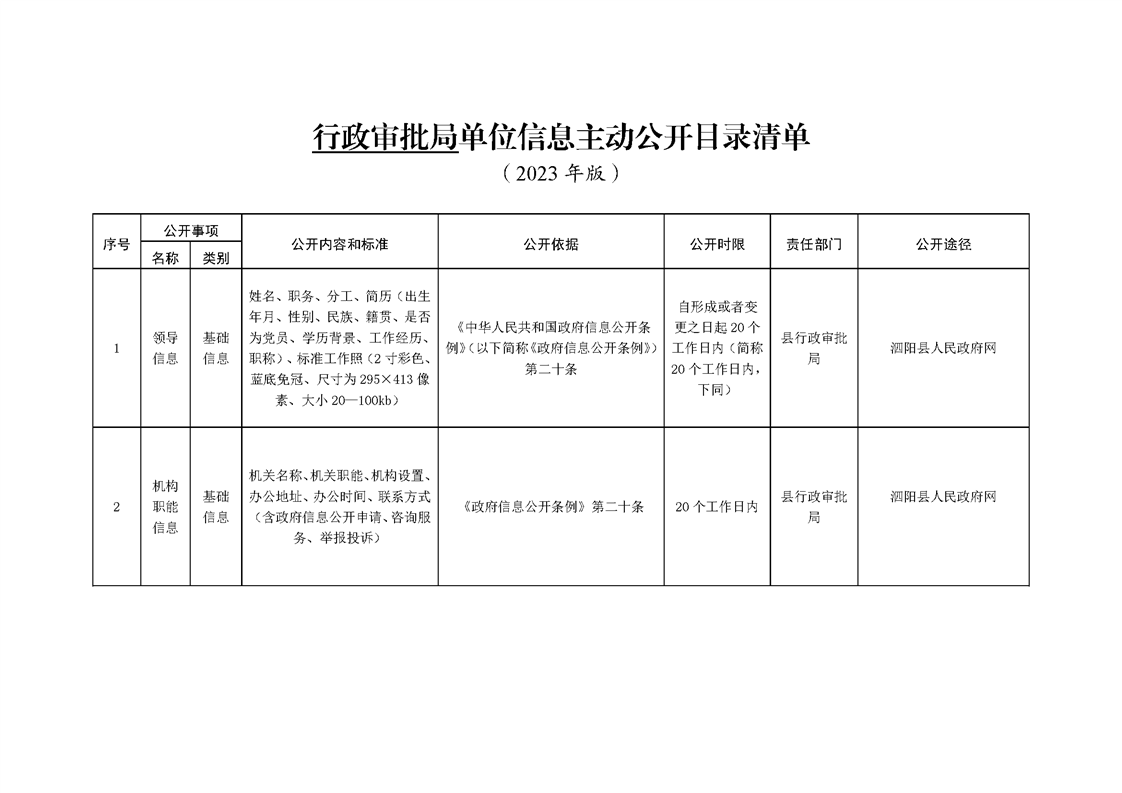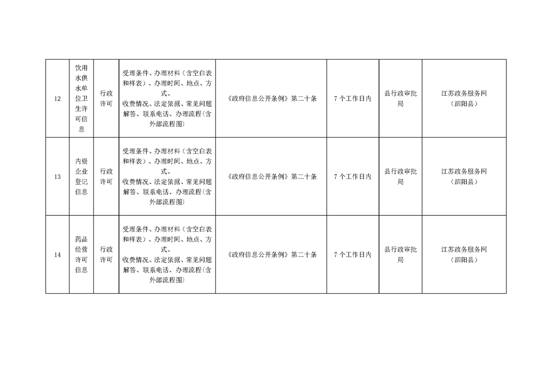 泗陽縣行政審批局政府信息主動公開目錄清單(2023)