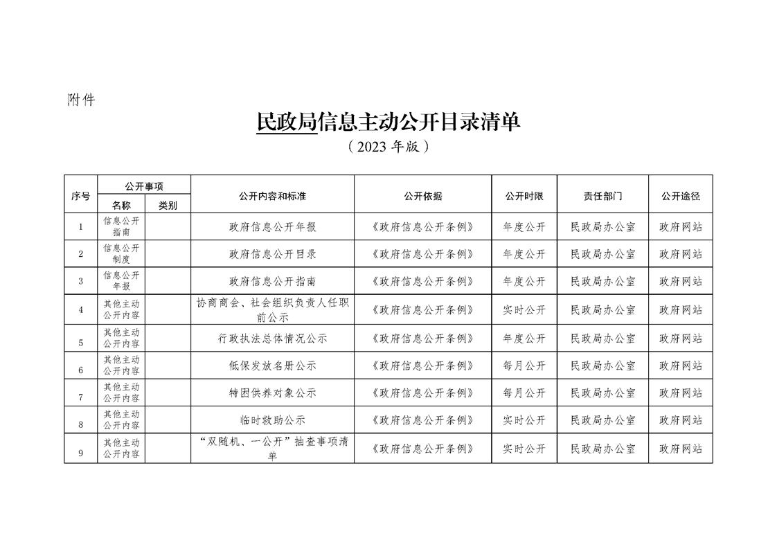 泗陽(yáng)縣民政局政府信息主動(dòng)公開(kāi)目錄清單(2023)