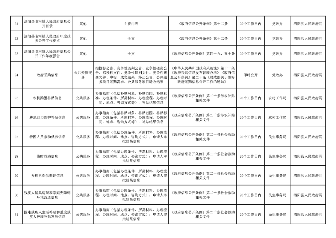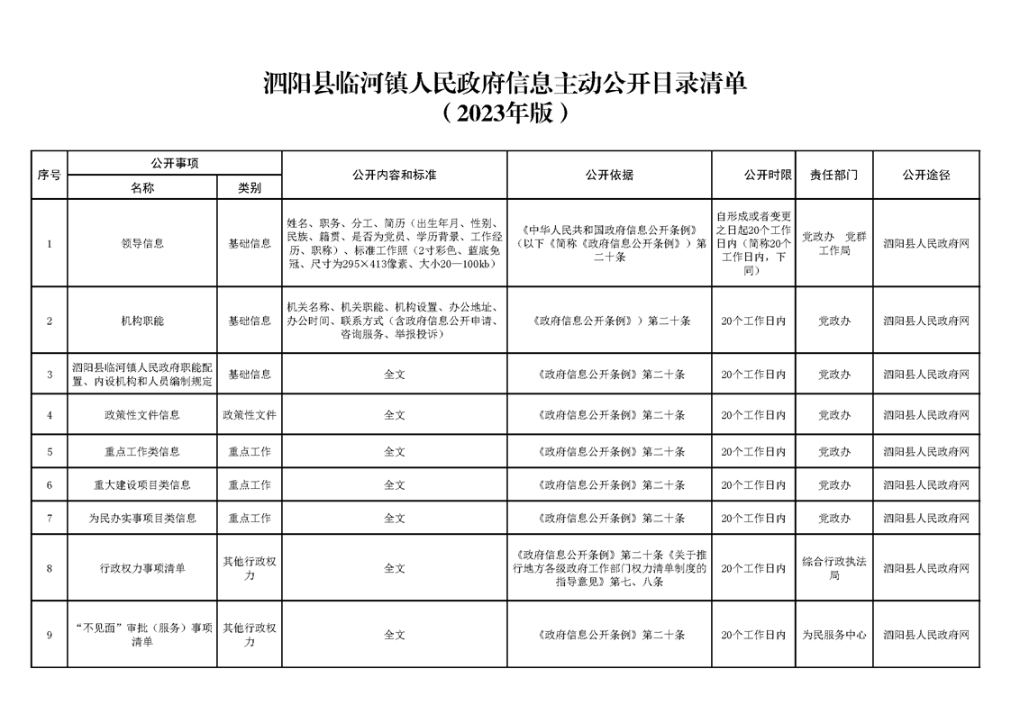 泗陽縣臨河鎮政府信息主動公開目錄清單(2023)
