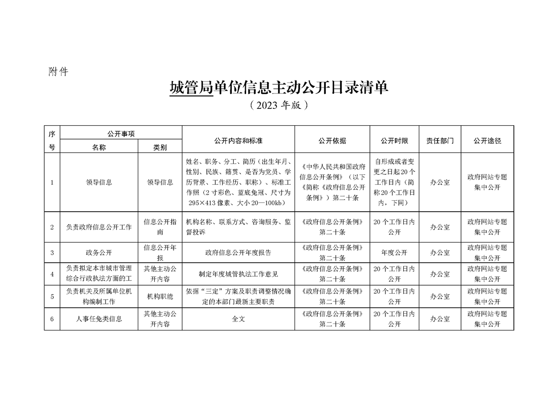 泗陽縣城管局政府信息主動公開目錄清單(2023)
