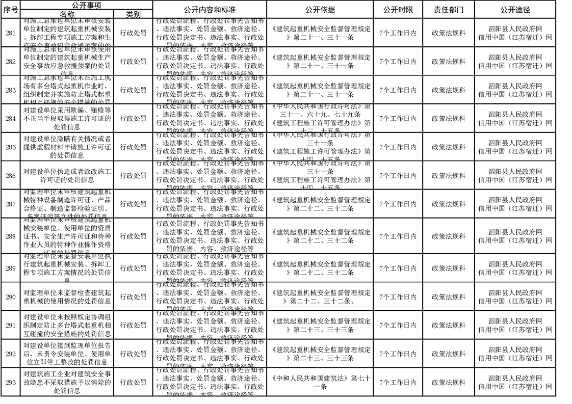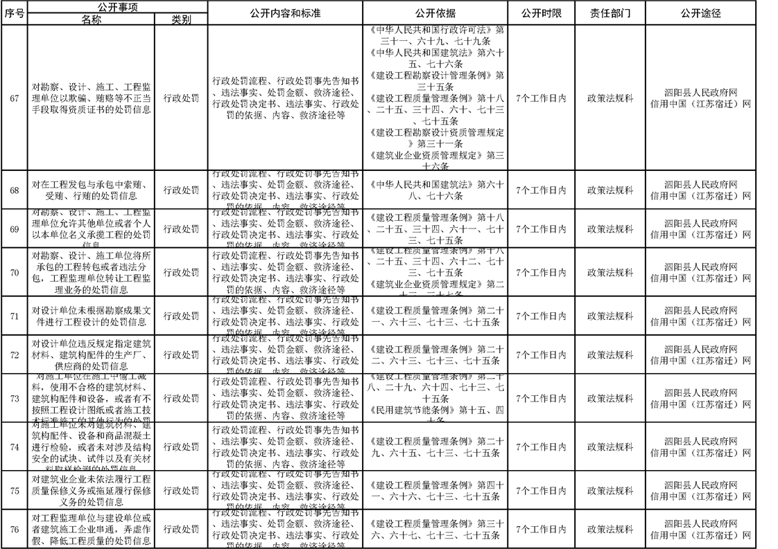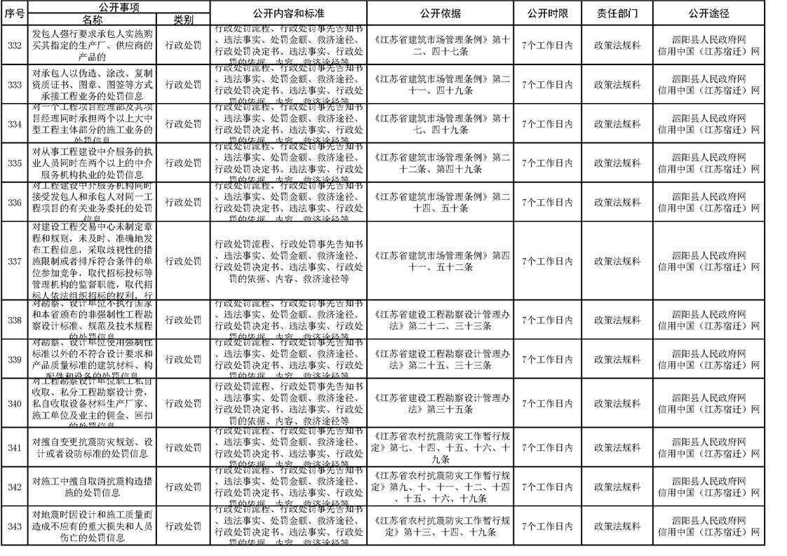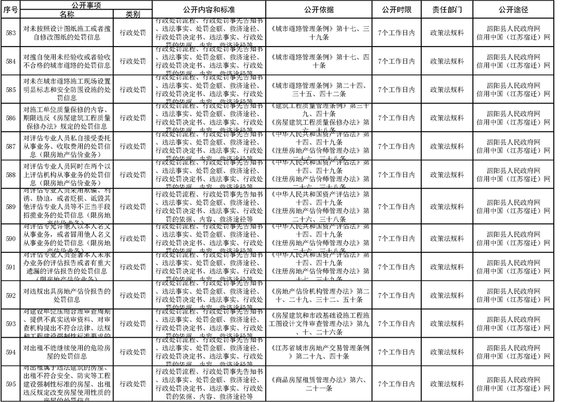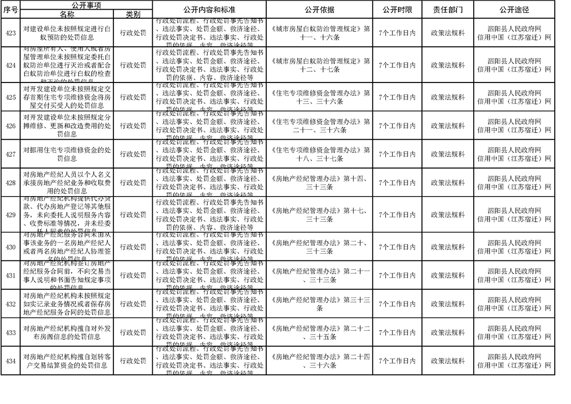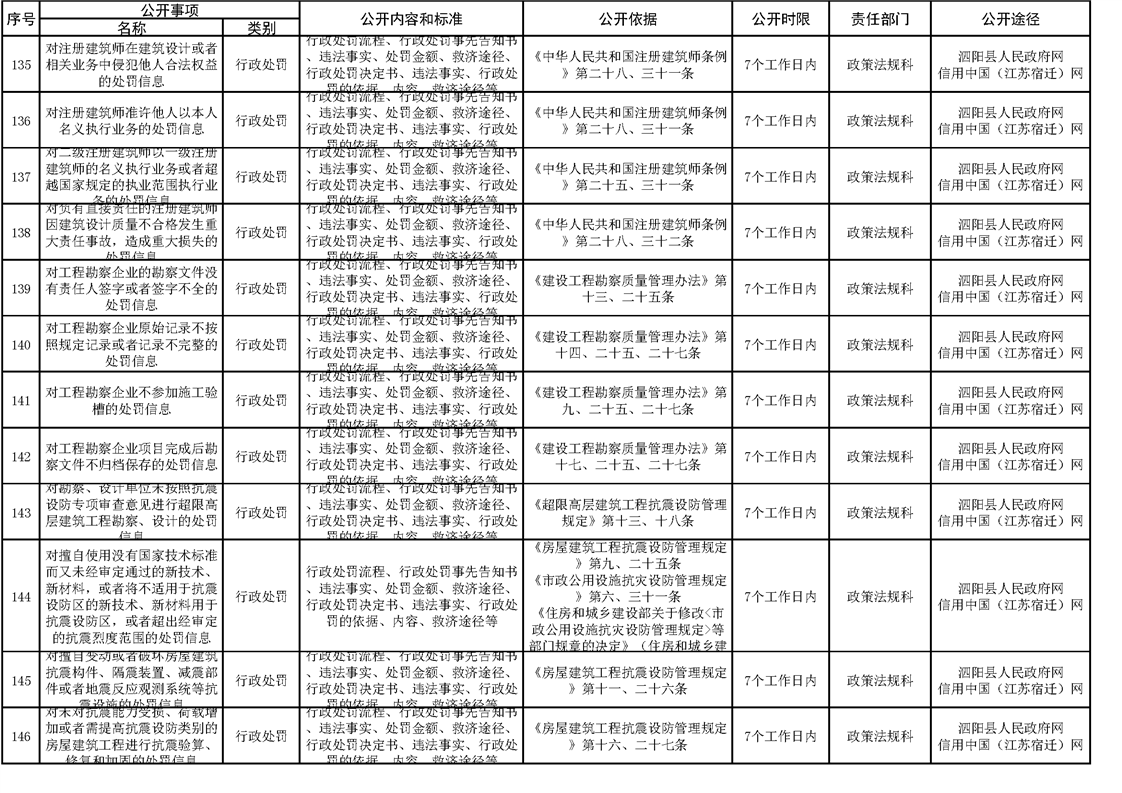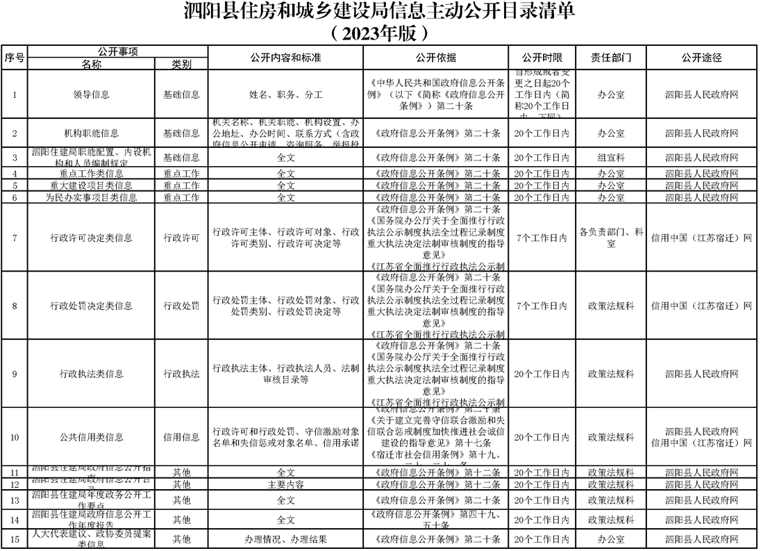 泗陽縣住建局政府信息主動公開目錄清單(2023)