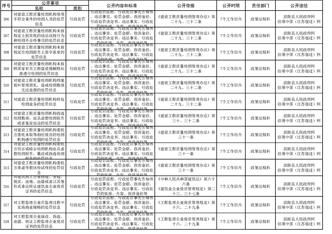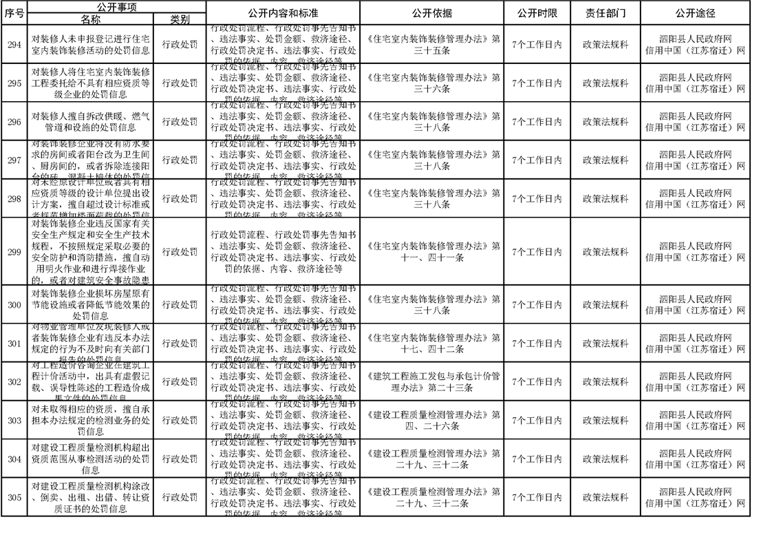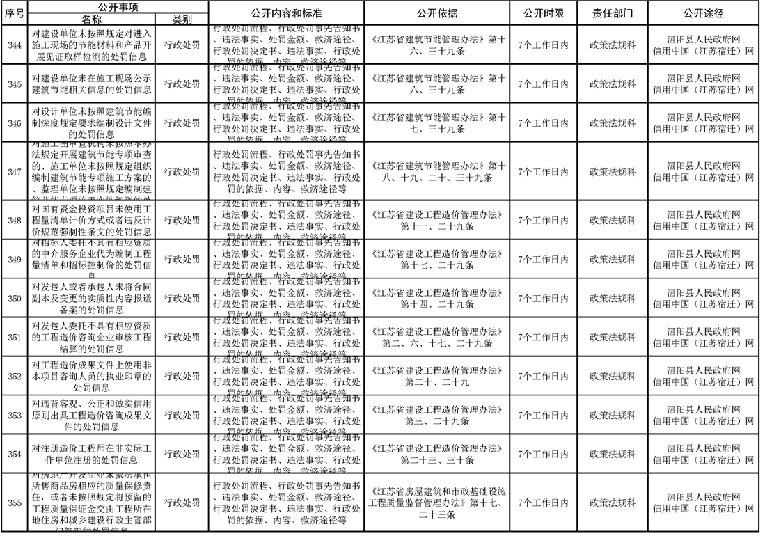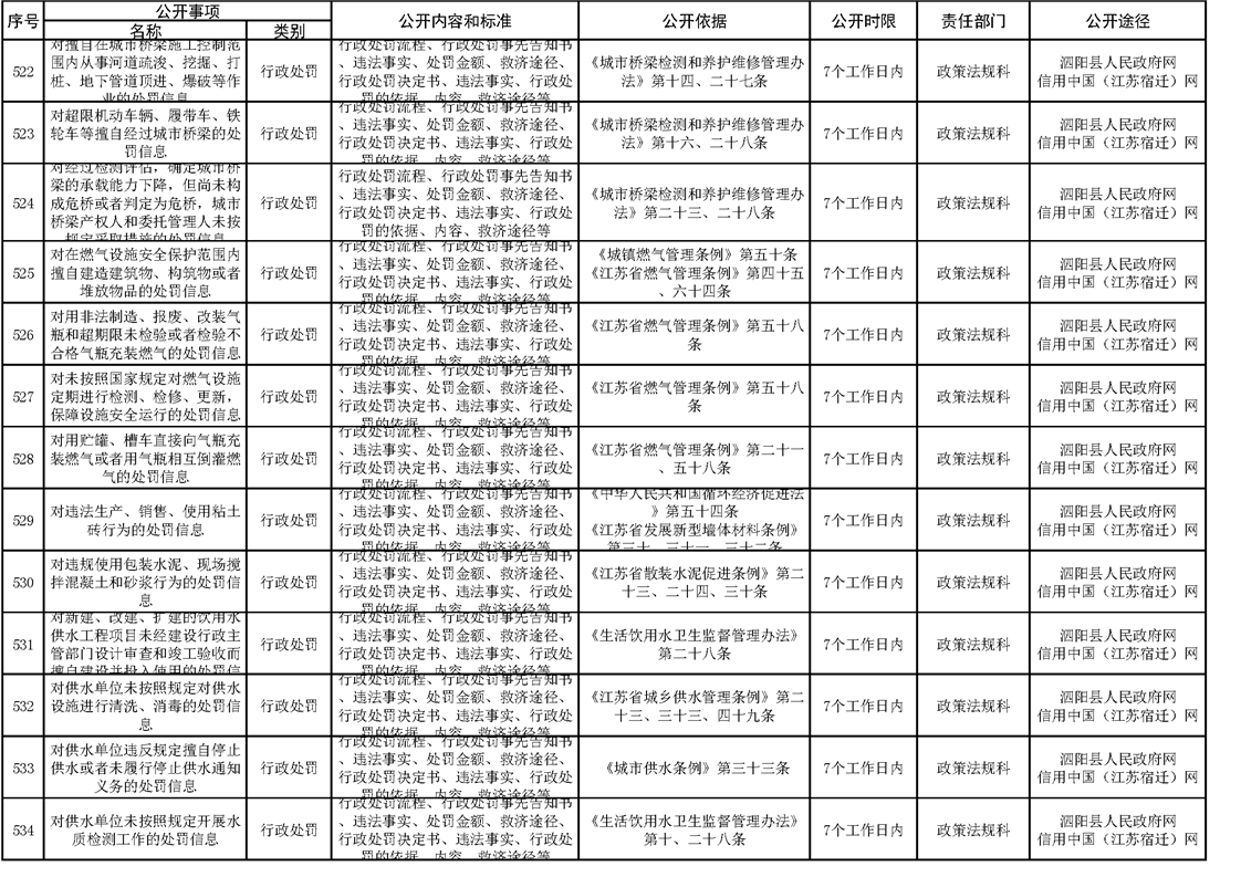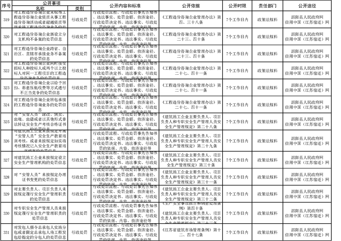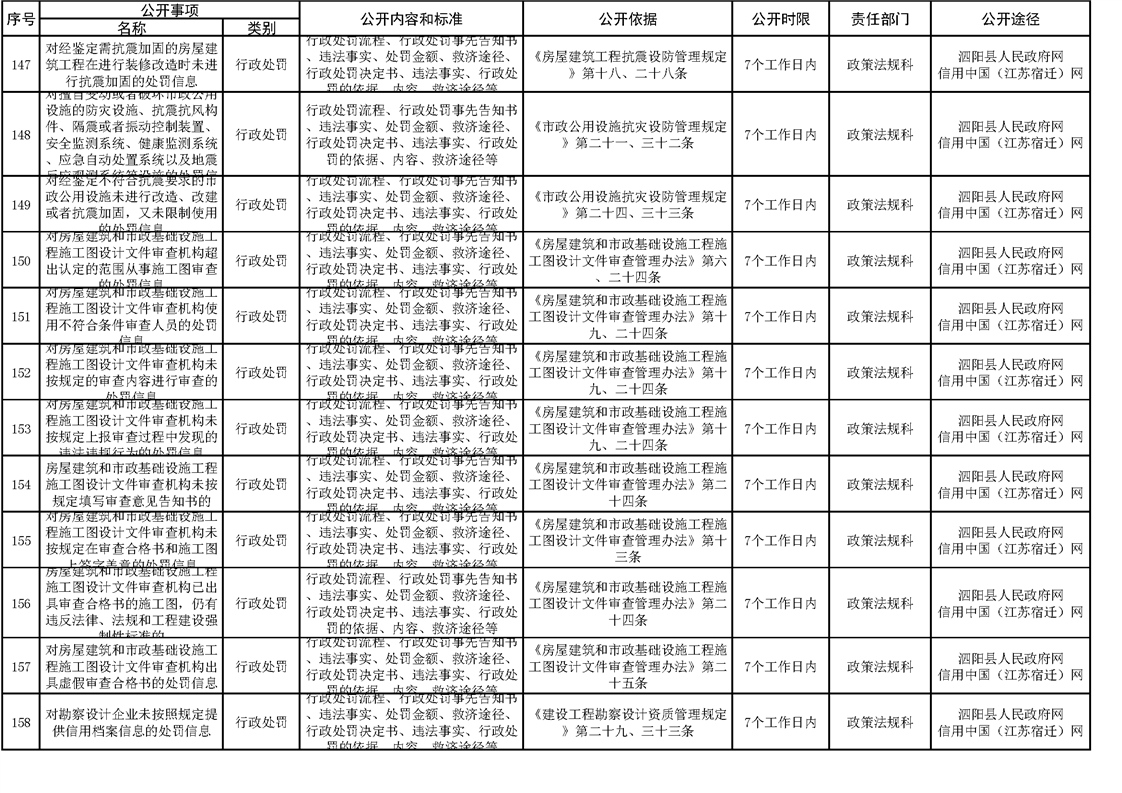 泗陽縣住建局政府信息主動公開目錄清單(2023)
