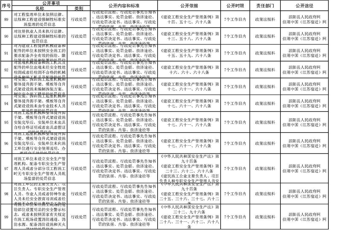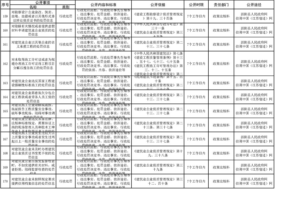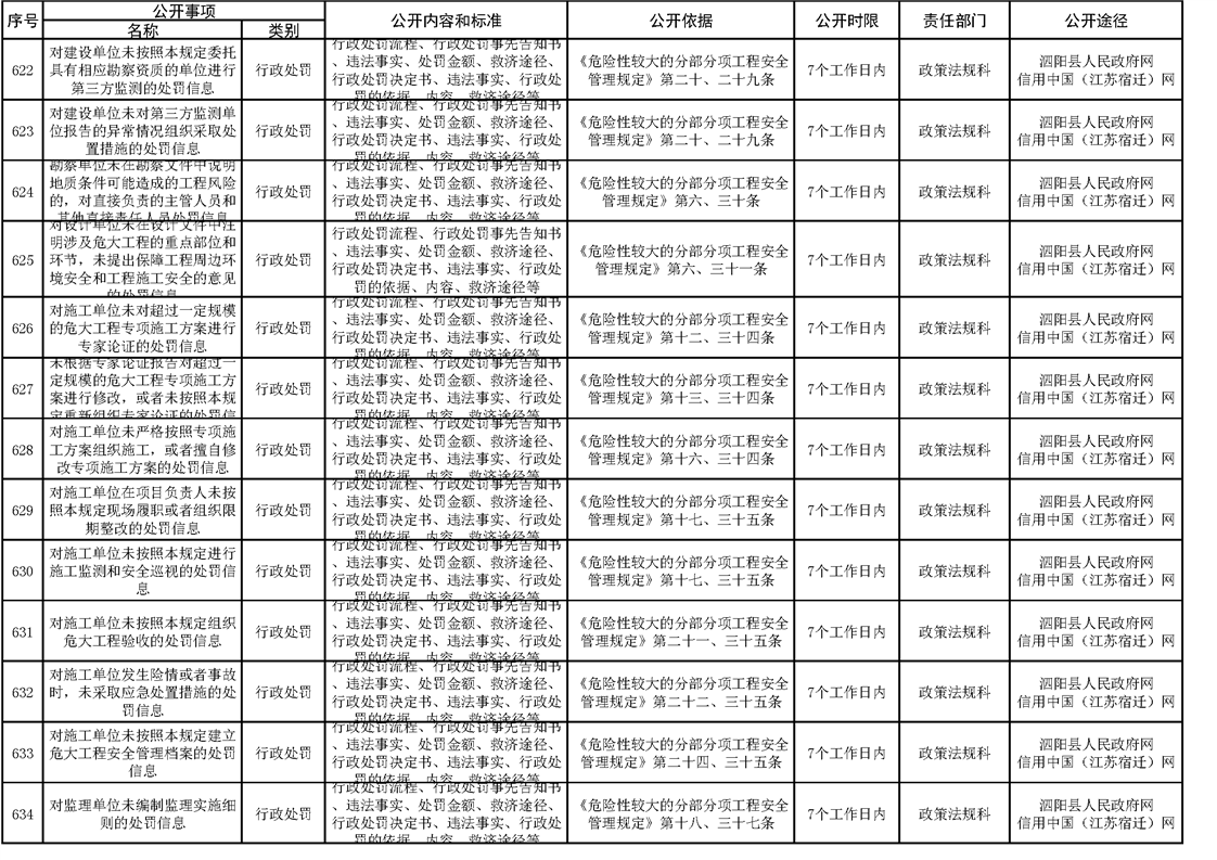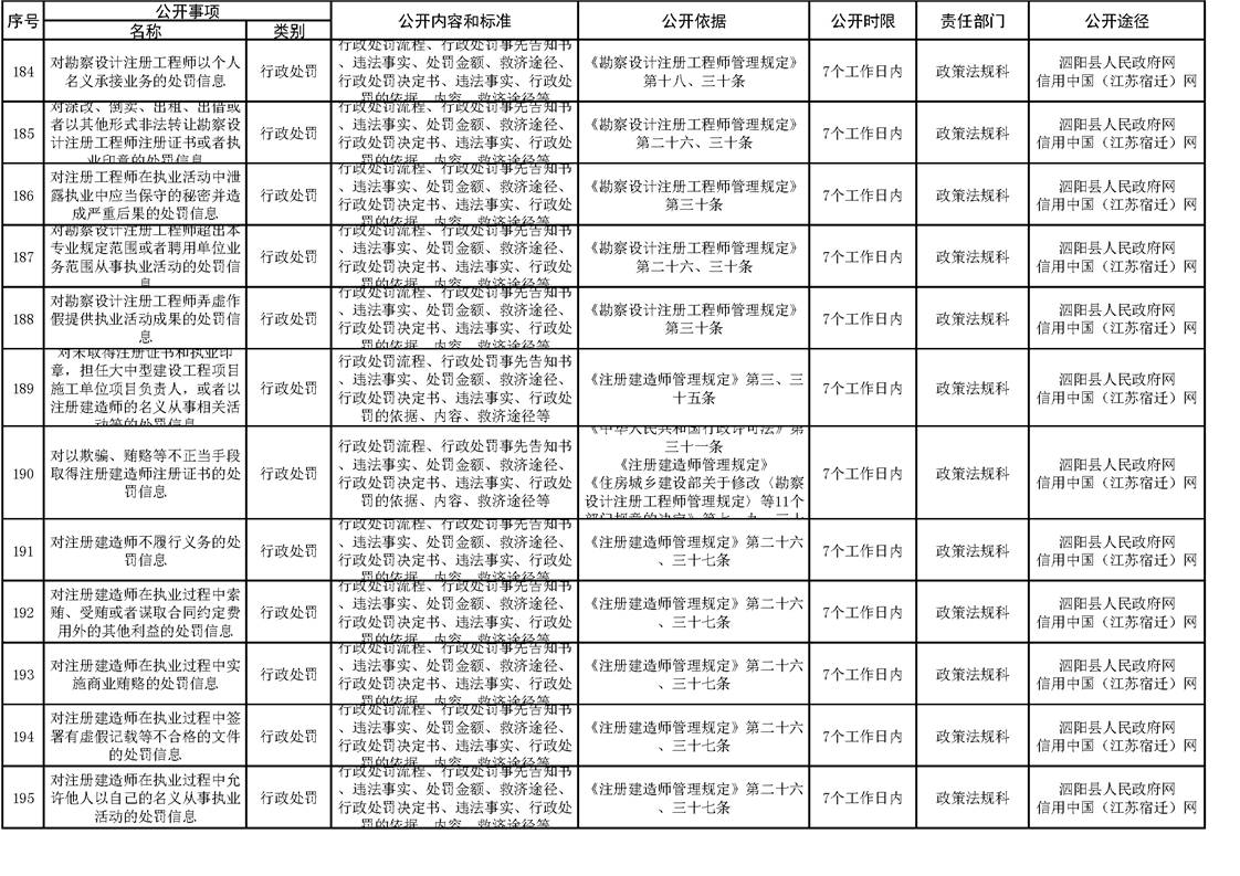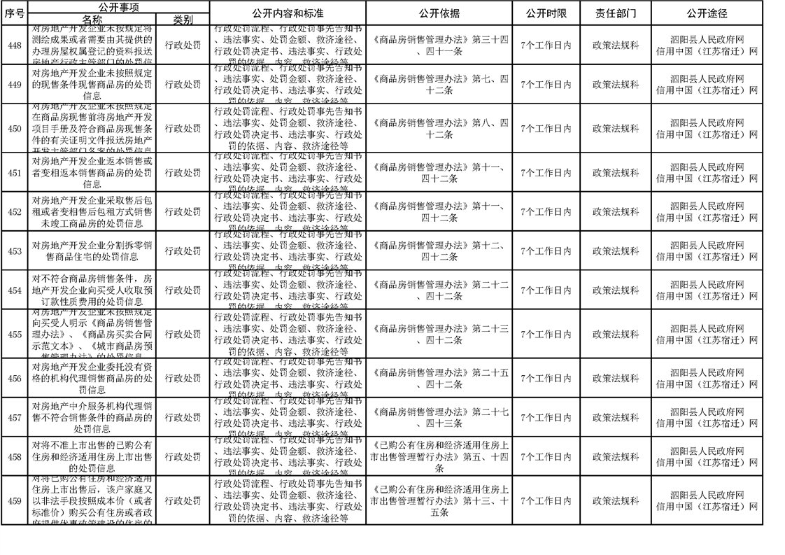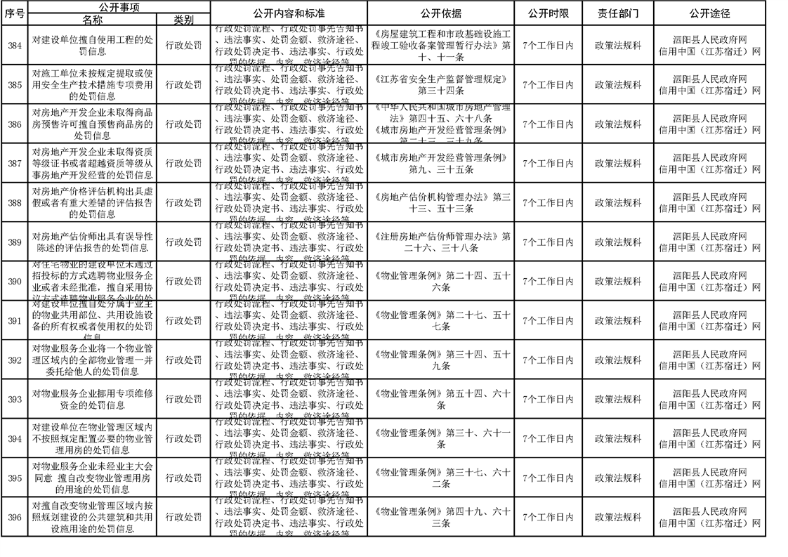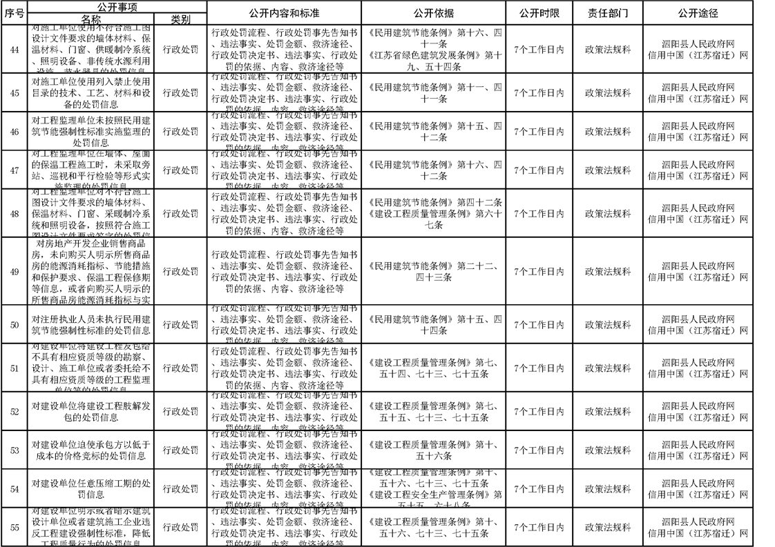 泗陽縣住建局政府信息主動公開目錄清單(2023)
