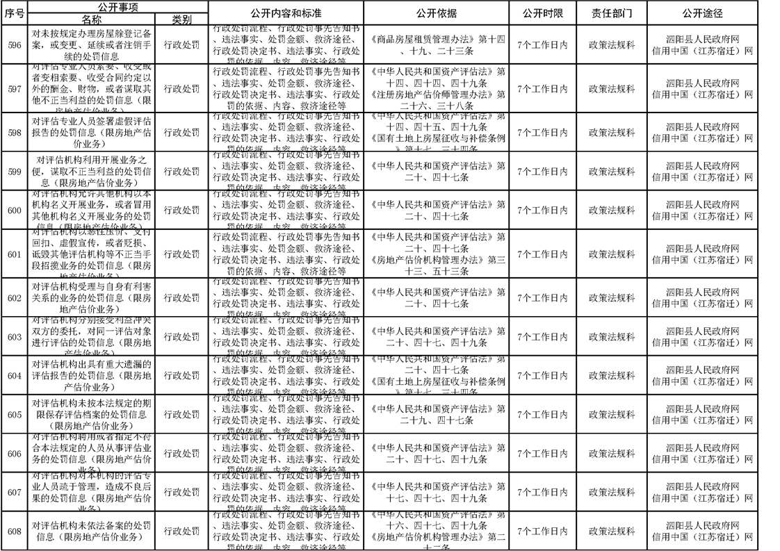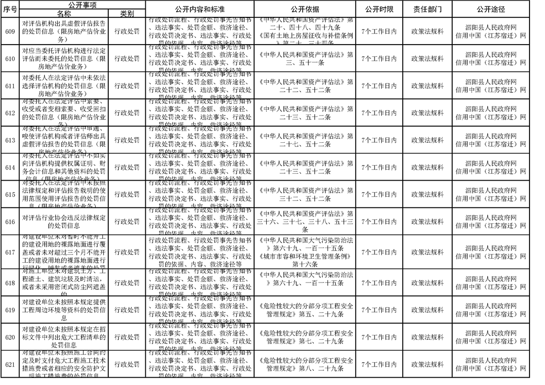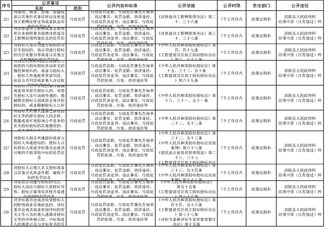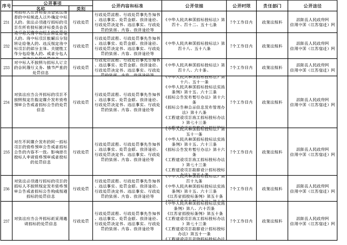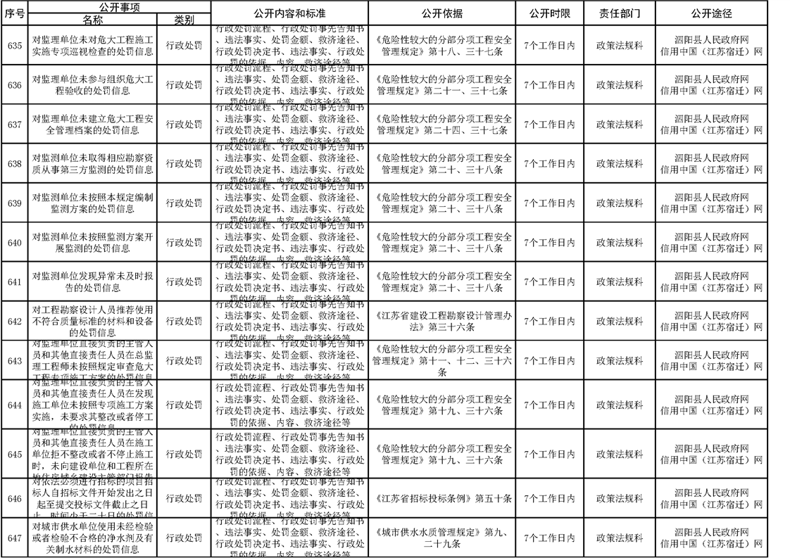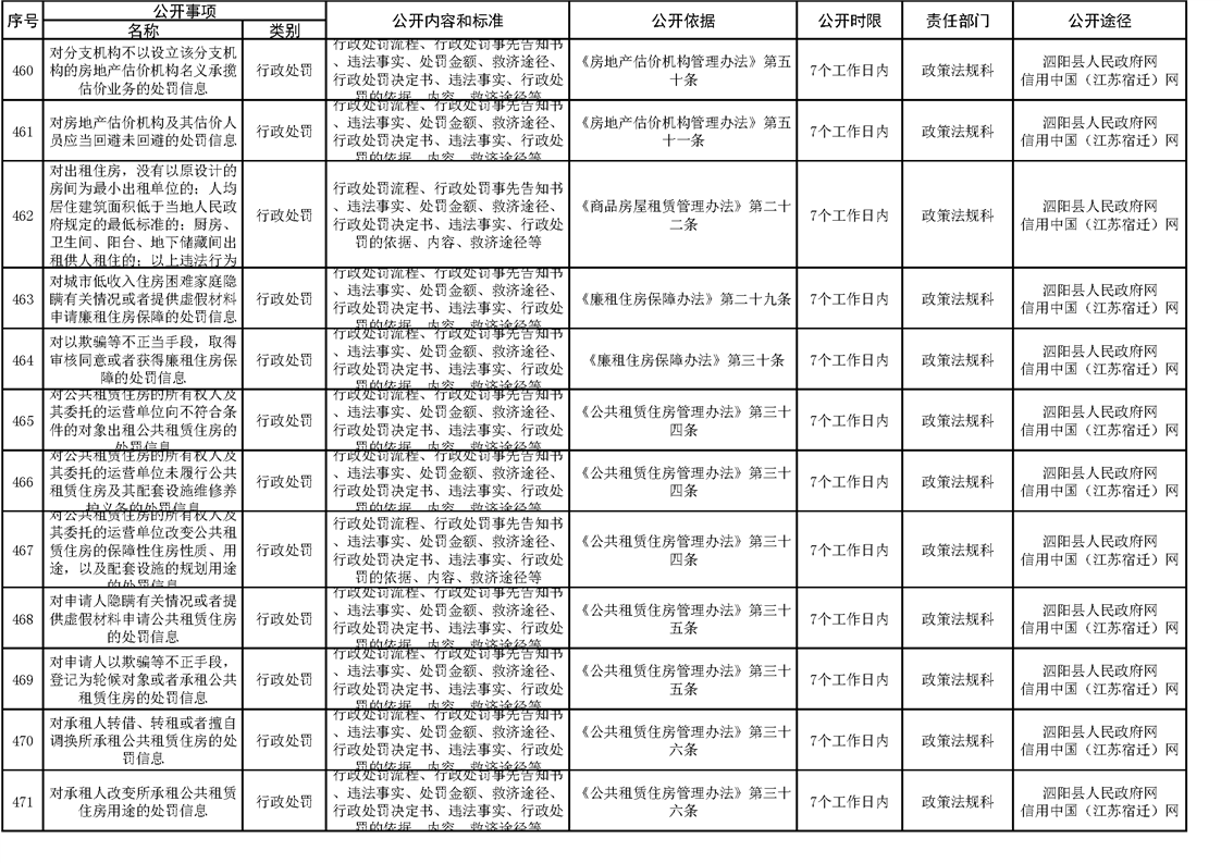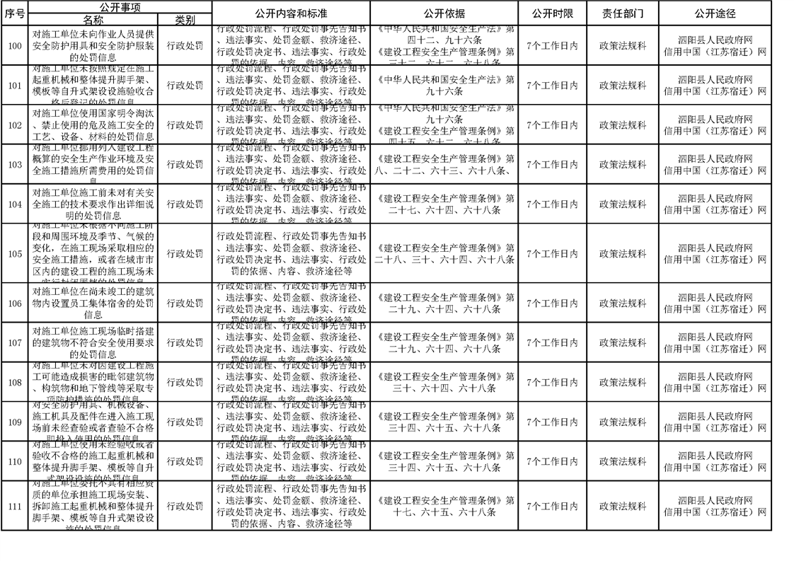 泗陽縣住建局政府信息主動公開目錄清單(2023)