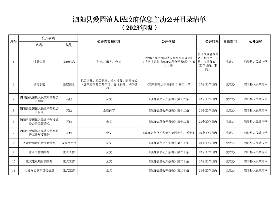 泗陽縣愛園鎮政府信息主動公開目錄清單(2023)