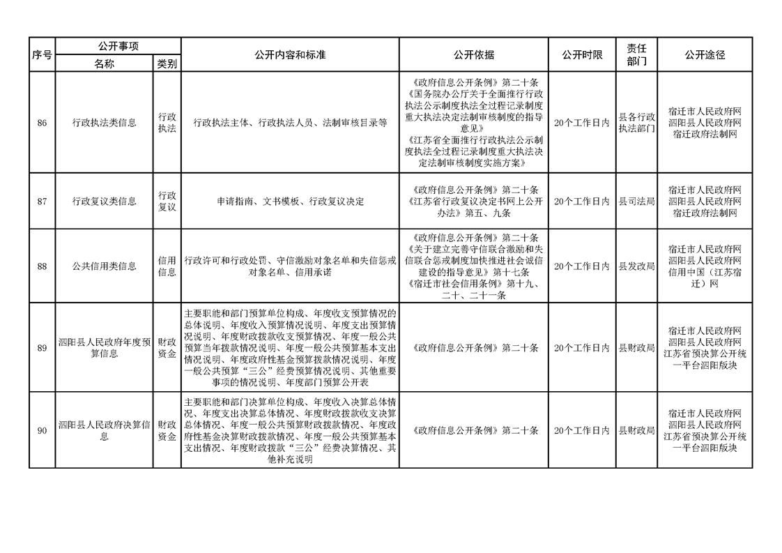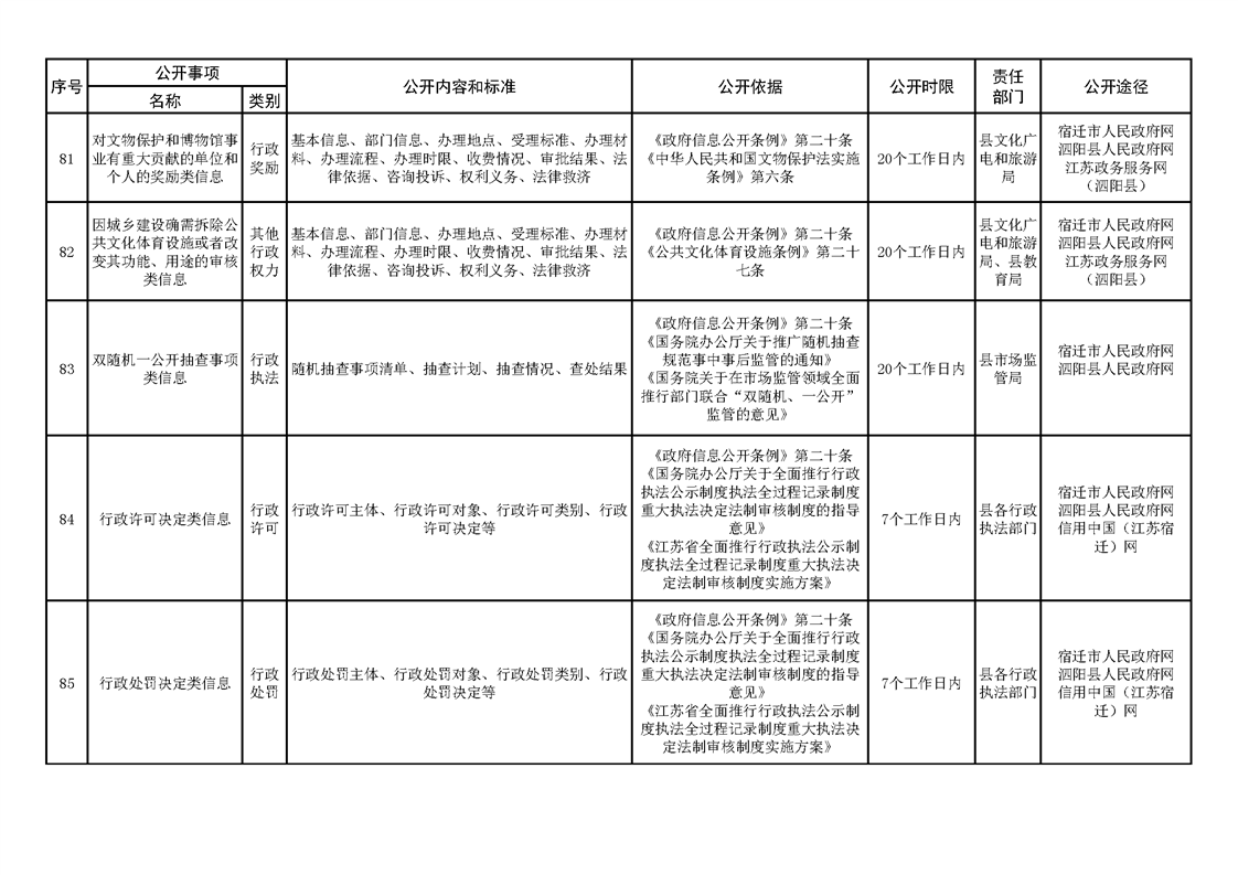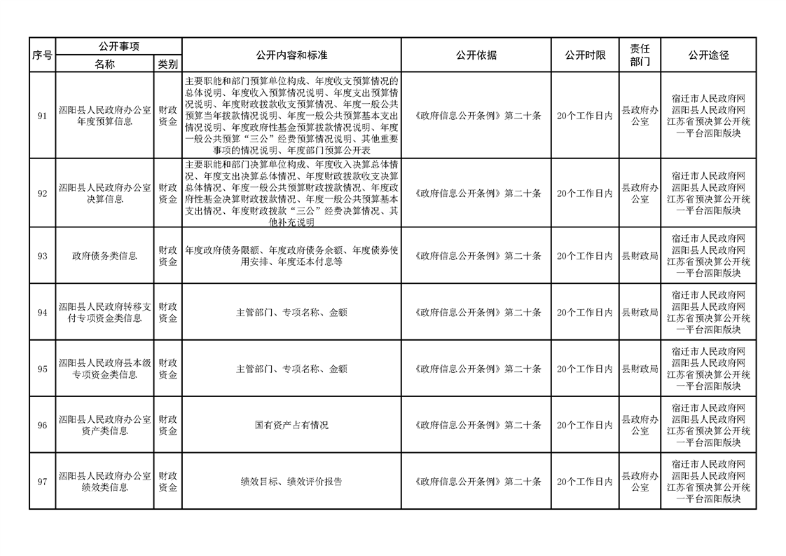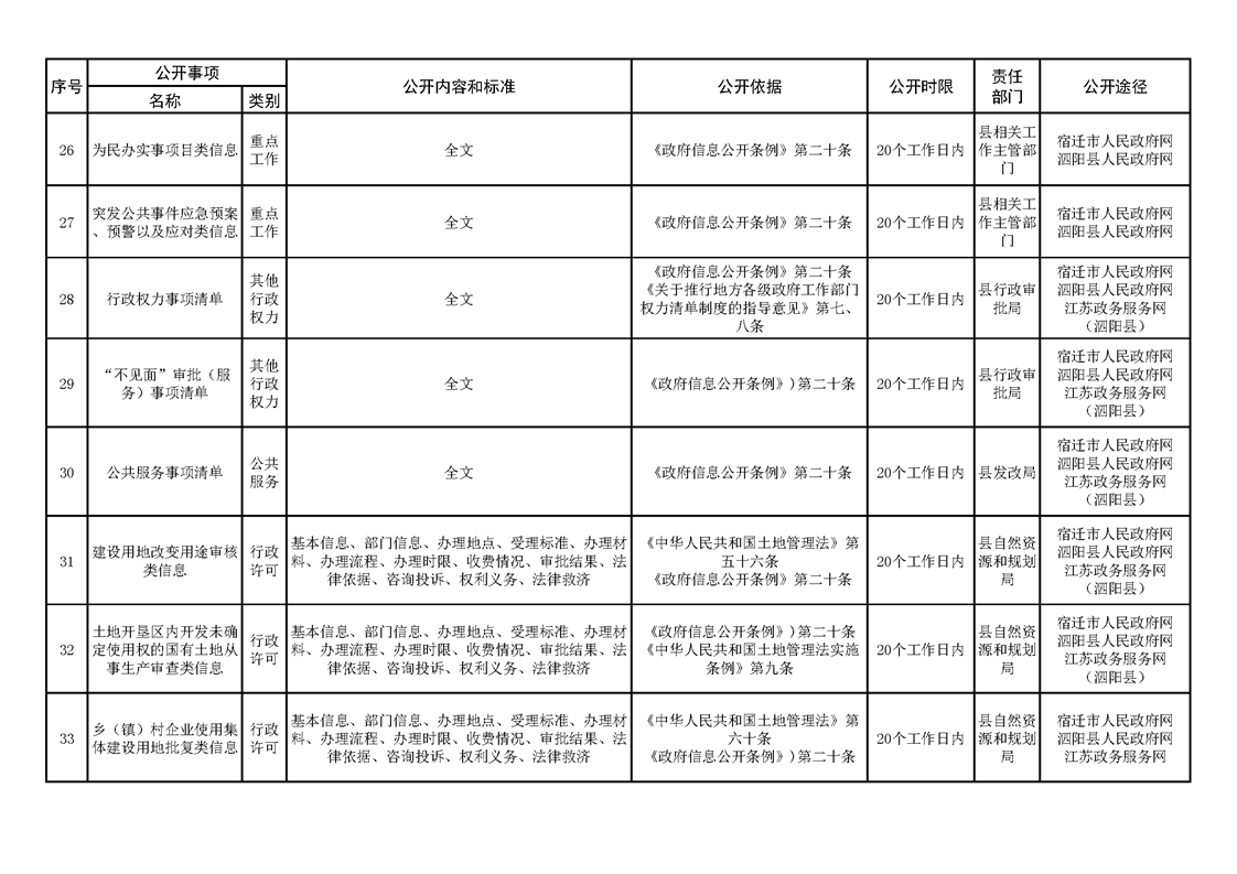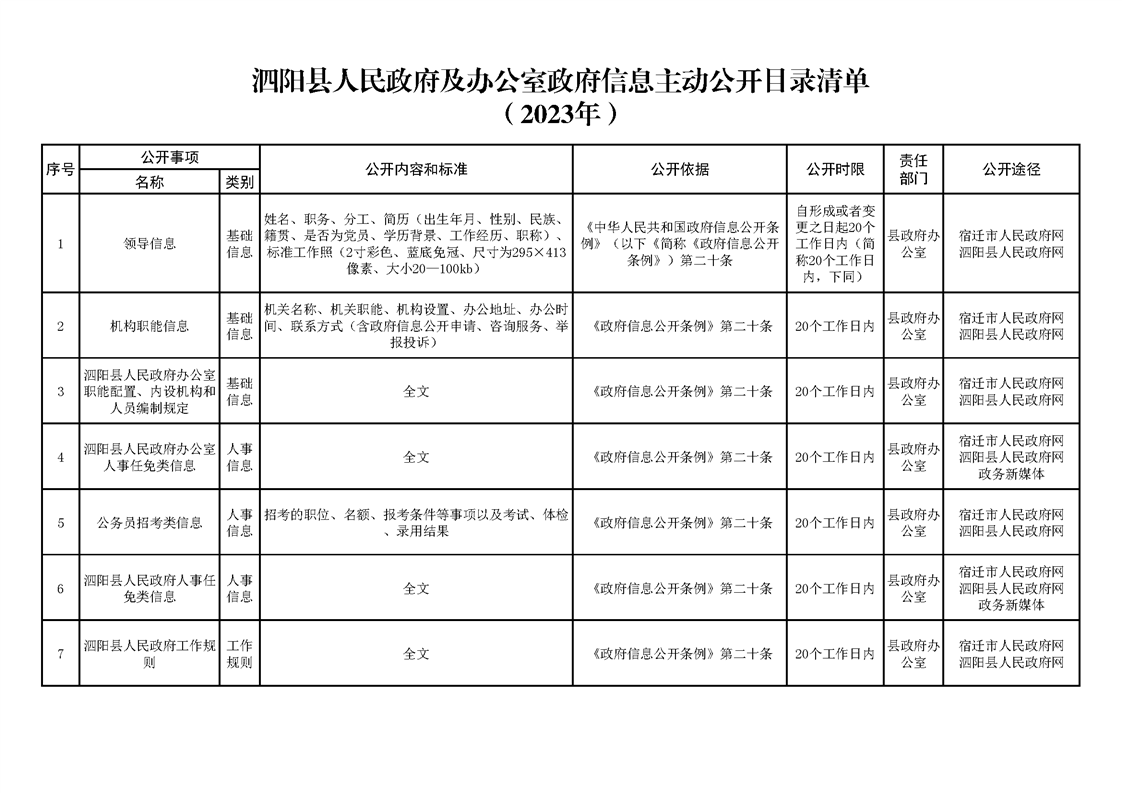泗陽縣人民政府及辦公室政府信息主動公開目錄清單(2023年版)