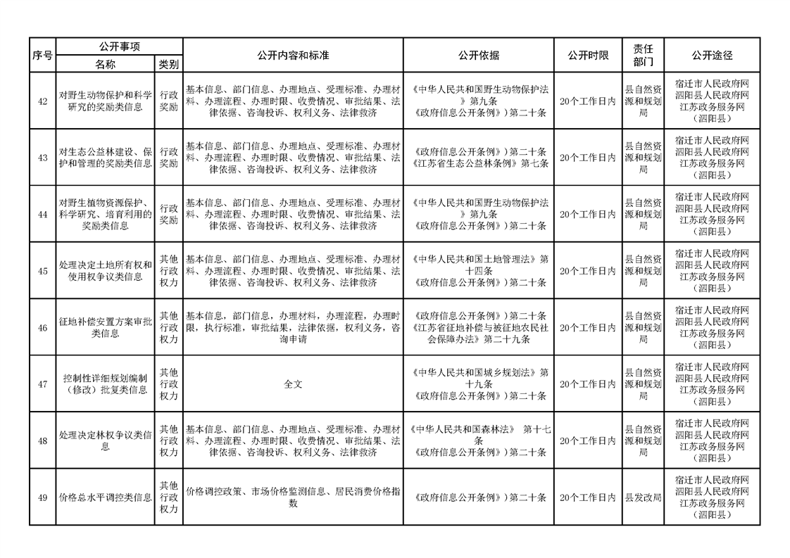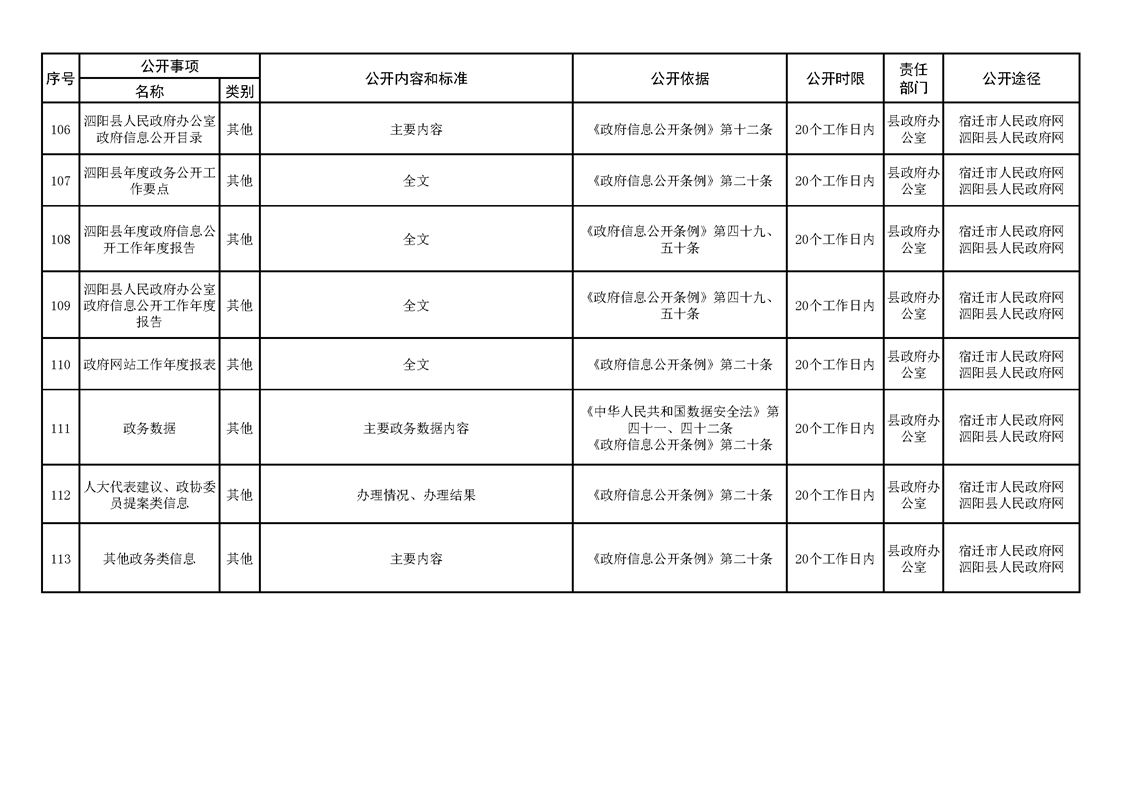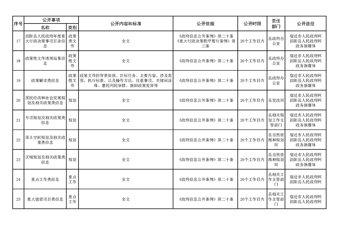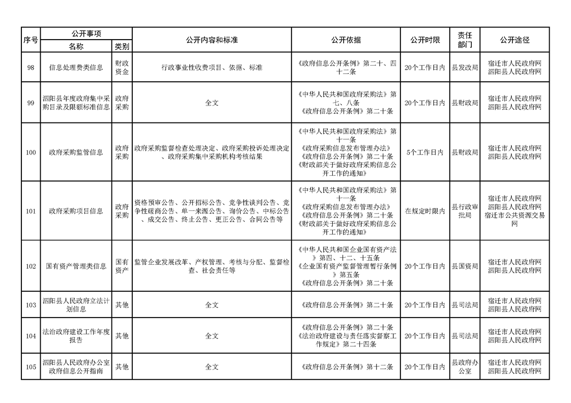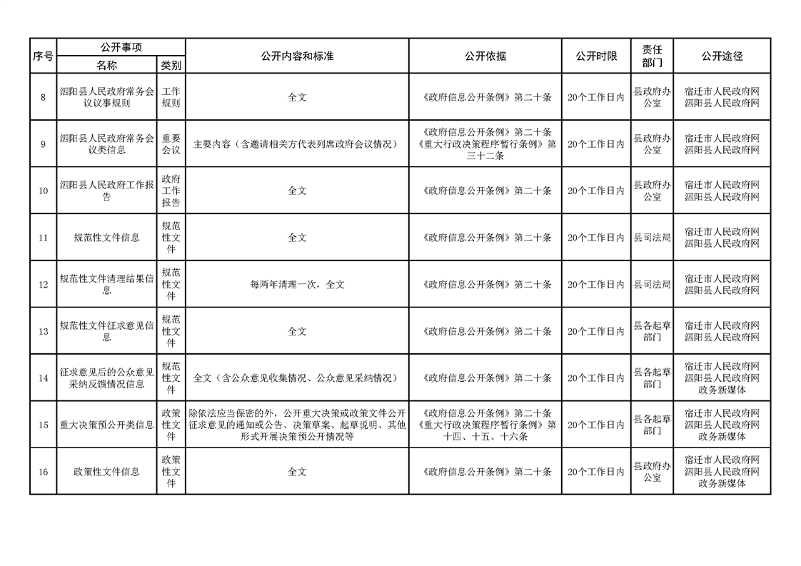 泗陽縣人民政府及辦公室政府信息主動公開目錄清單(2023年版)