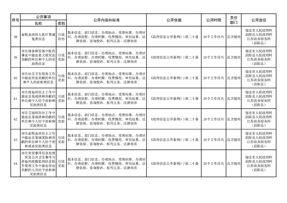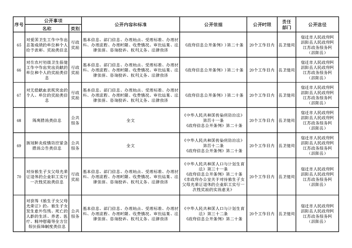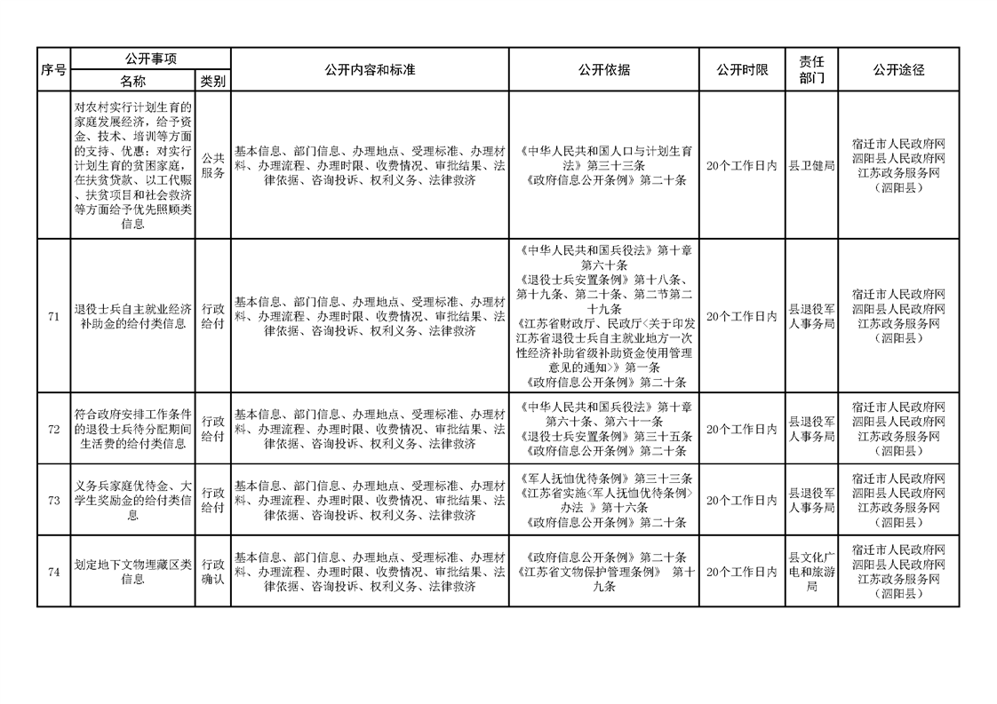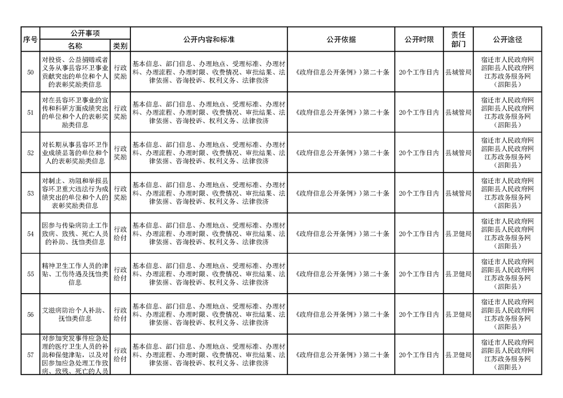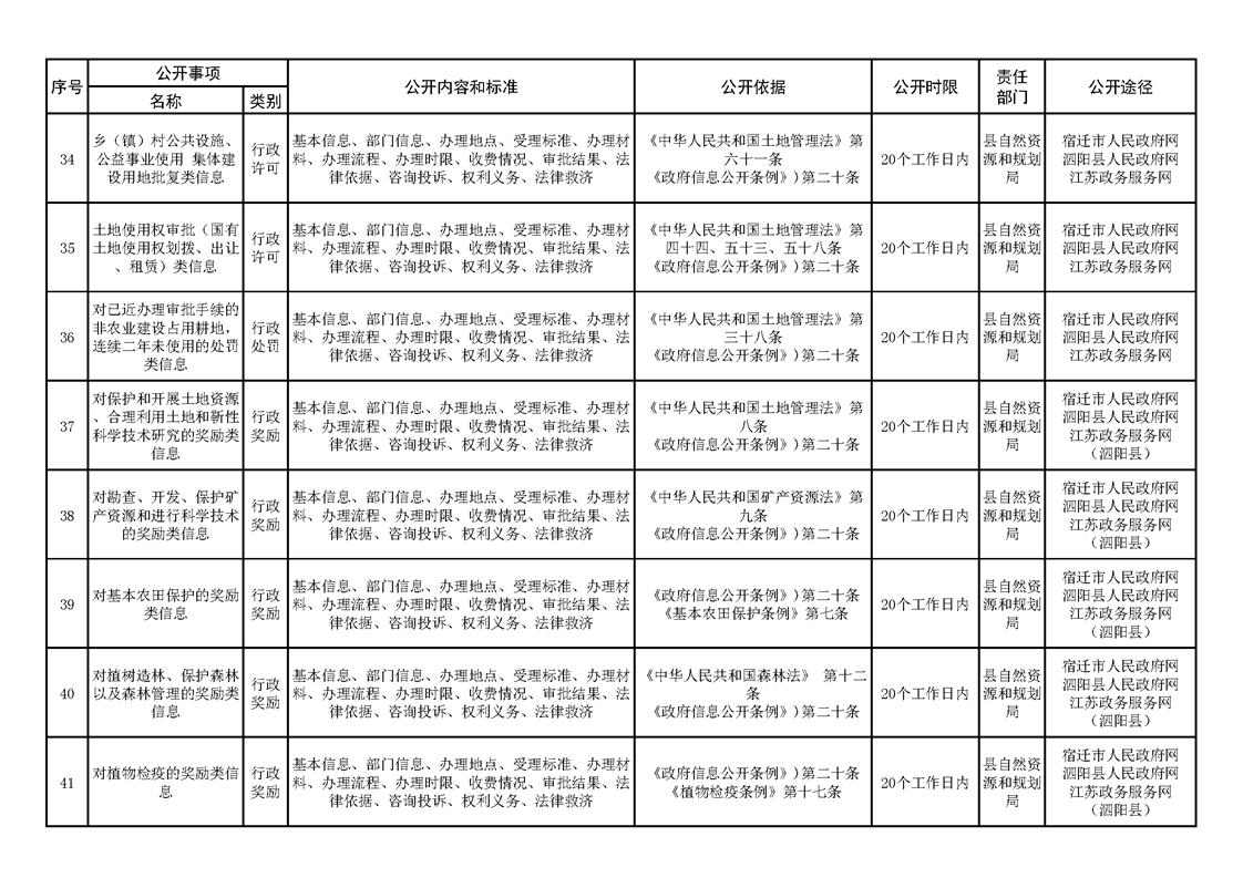 泗陽縣人民政府及辦公室政府信息主動公開目錄清單(2023年版)