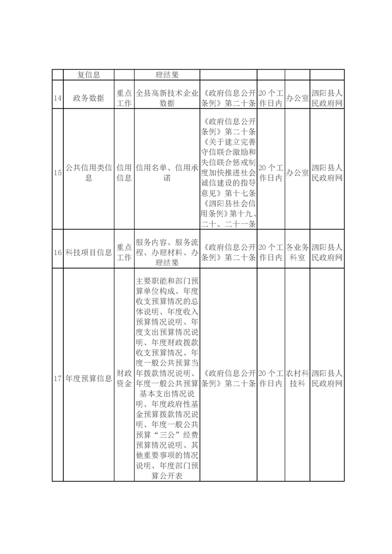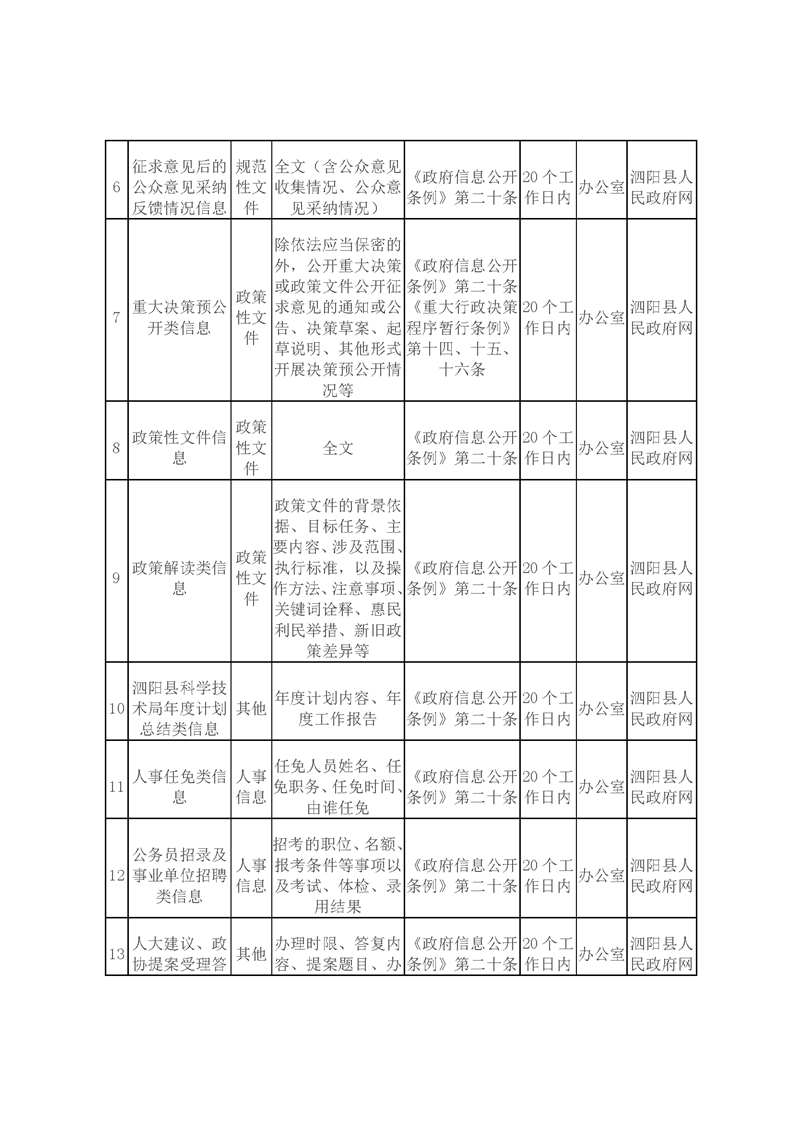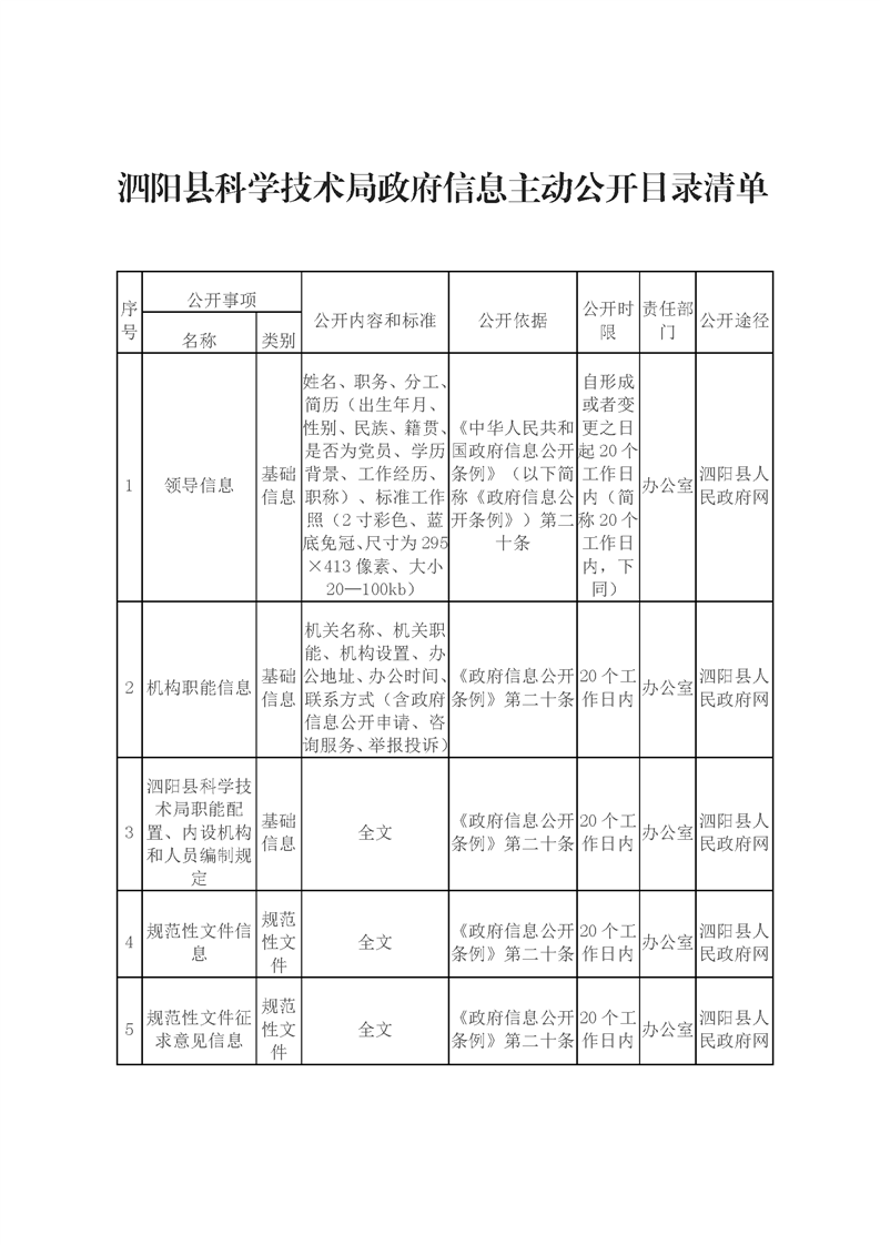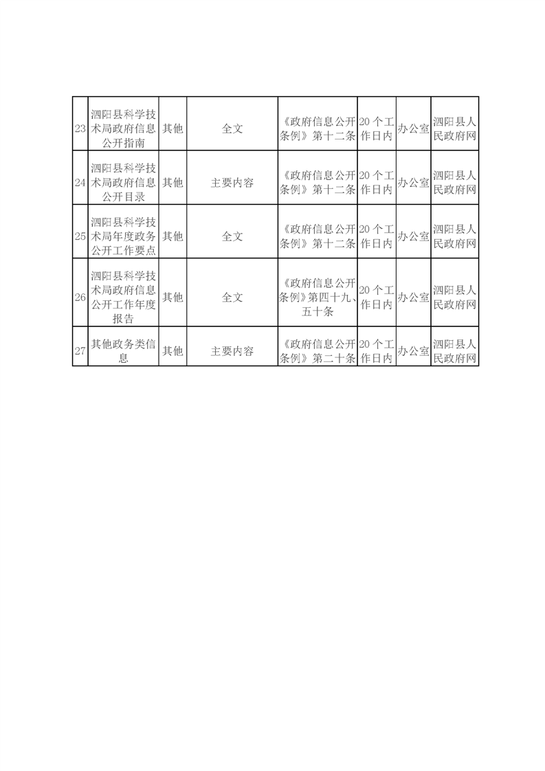 泗陽縣科技局政府信息主動公開目錄清單(2023)