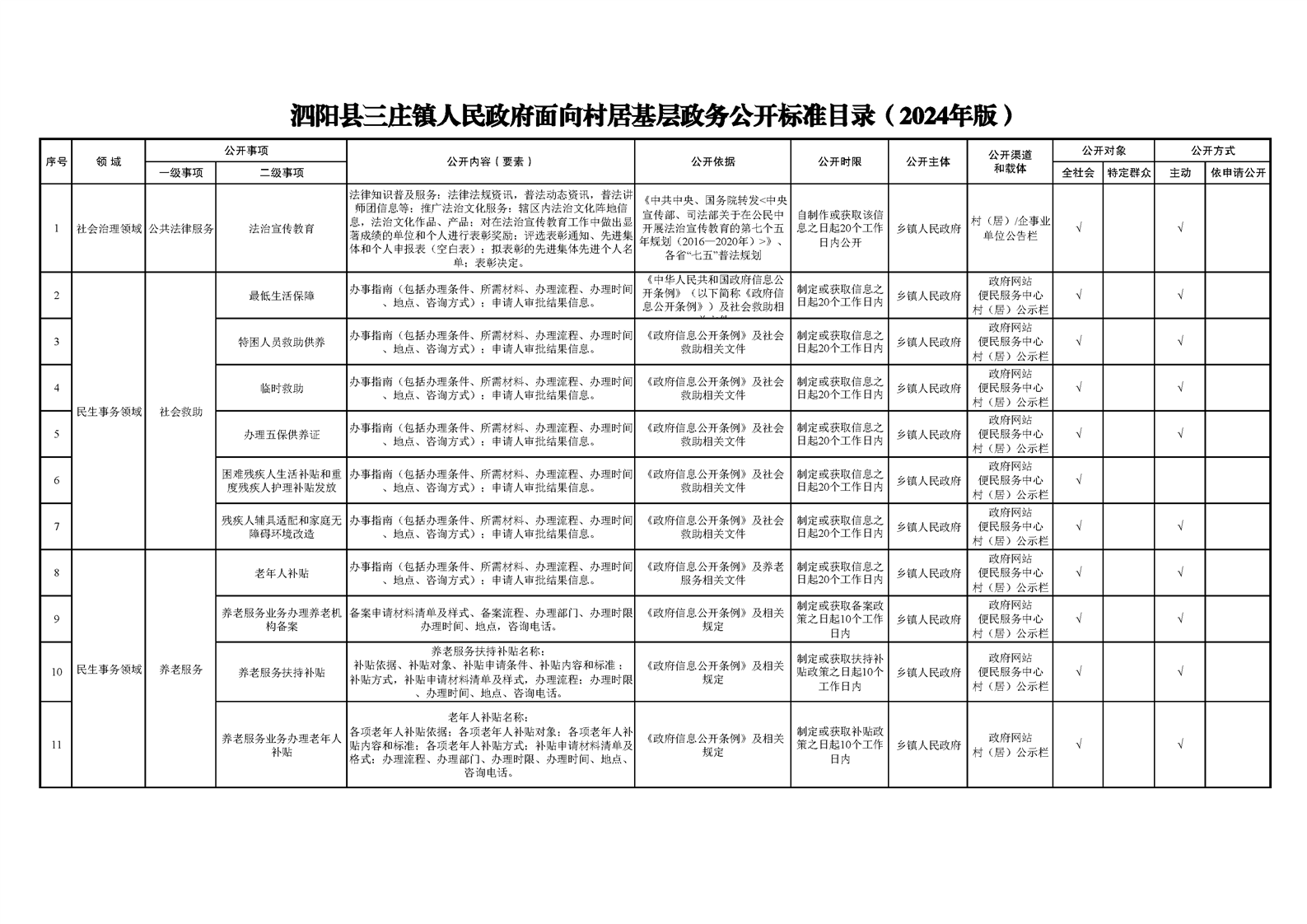 三莊鎮(zhèn)人民政府面向村居基層政務(wù)公開標(biāo)準(zhǔn)目錄(2024年)