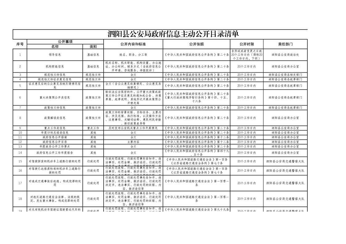 泗陽縣公安局政府信息主動公開目錄清單(2024年)