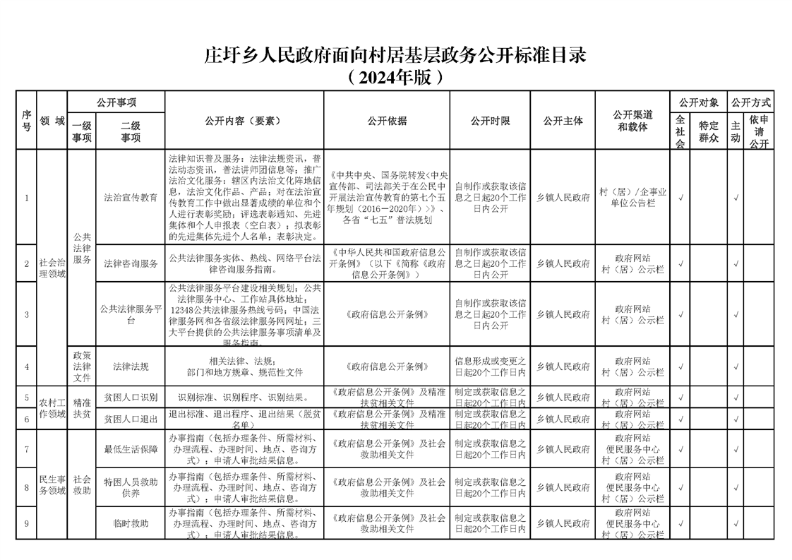 莊圩鄉人民政府面向村居基層政務公開標準目錄(2024年)