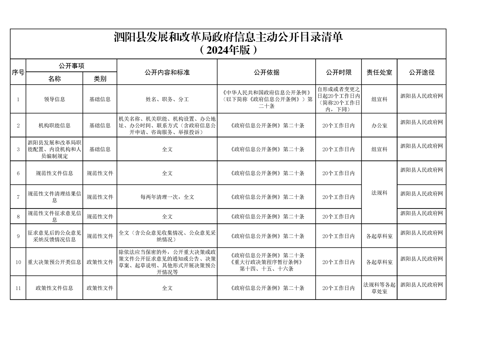 泗陽(yáng)縣發(fā)改局政府信息主動(dòng)公開(kāi)目錄清單(2024年)