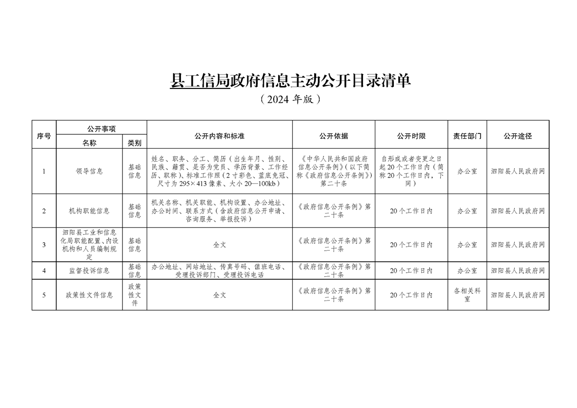 泗陽縣工信局政府信息主動公開目錄清單(2024年)