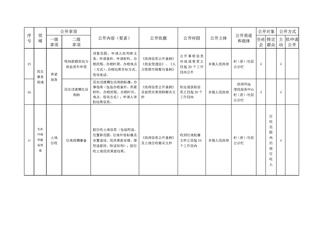 穿城鎮人民政府面向村居基層政務公開標準目錄(2024年)