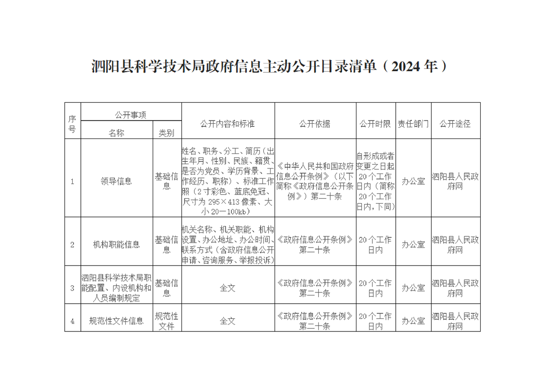 泗陽縣科技局政府信息主動(dòng)公開目錄清單(2024年)