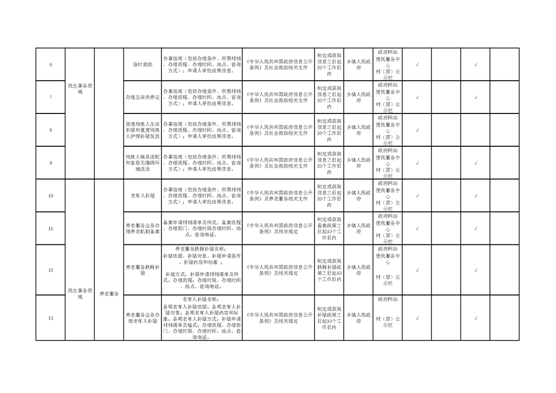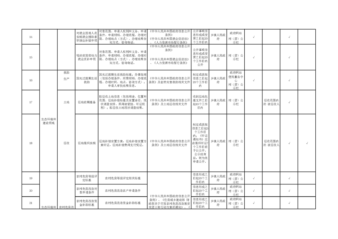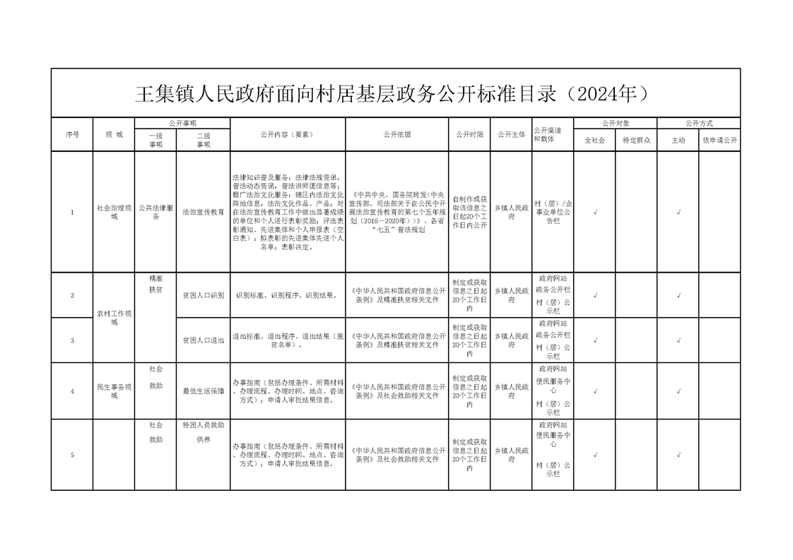 王集鎮(zhèn)人民政府面向村居基層政務(wù)公開標(biāo)準(zhǔn)目錄(2024年)