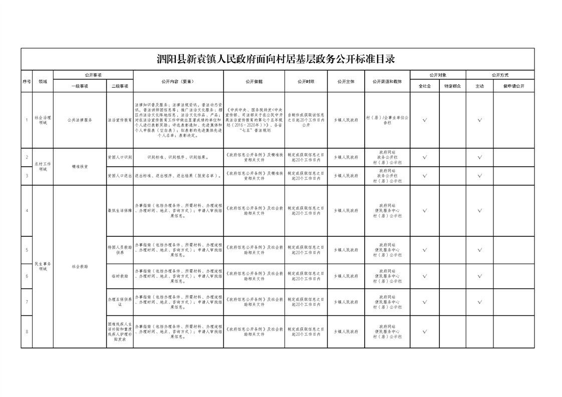 新袁鎮(zhèn)人民政府面向村居基層政務(wù)公開標(biāo)準(zhǔn)目錄(2024年)