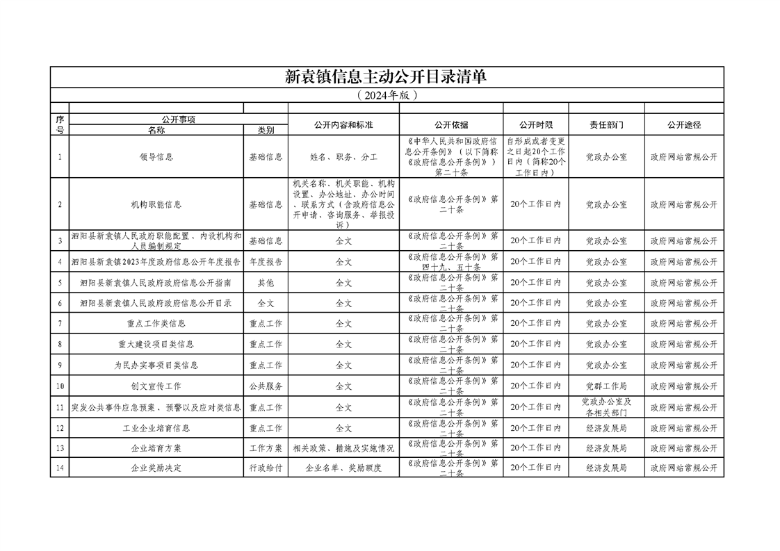 新袁鎮政府信息主動公開目錄清單(2024年)