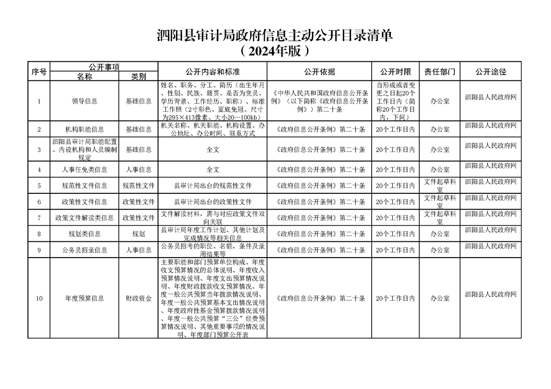 泗陽縣審計(jì)局政府信息主動(dòng)公開目錄清單(2024年)