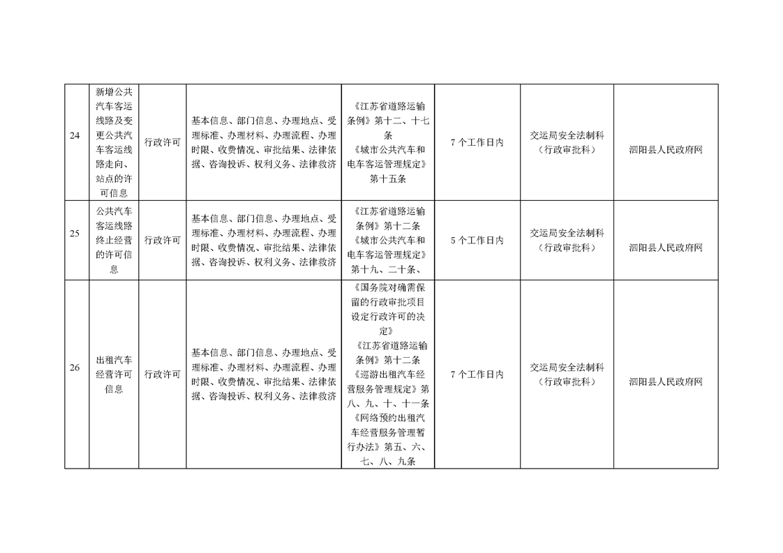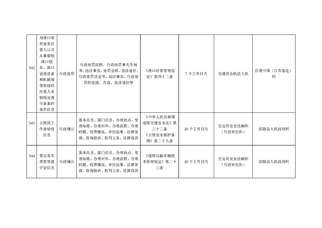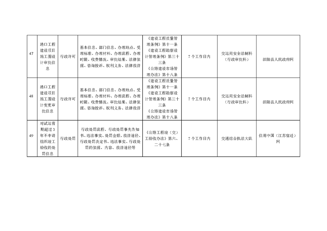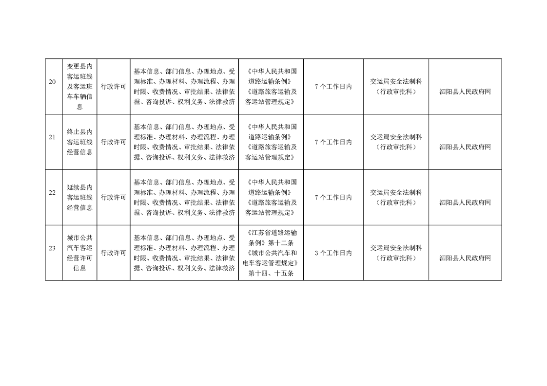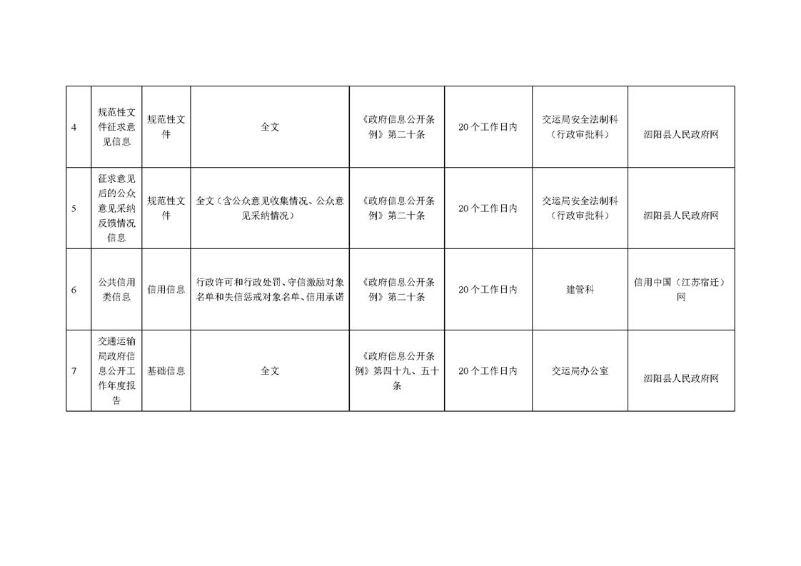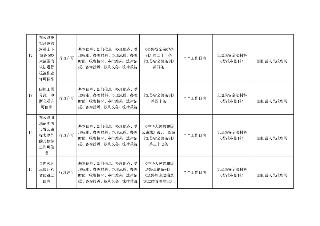泗陽縣交通運輸局政府信息主動公開目錄清單(2024年)