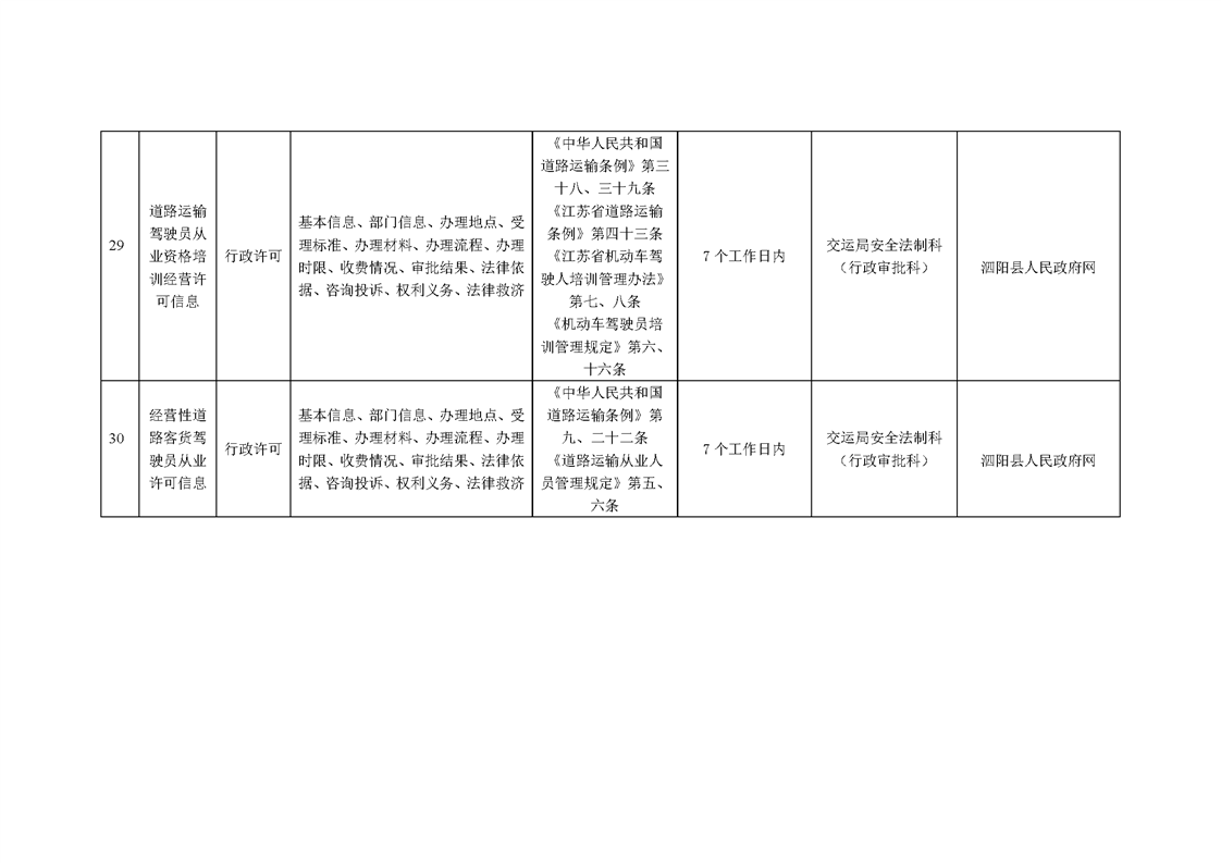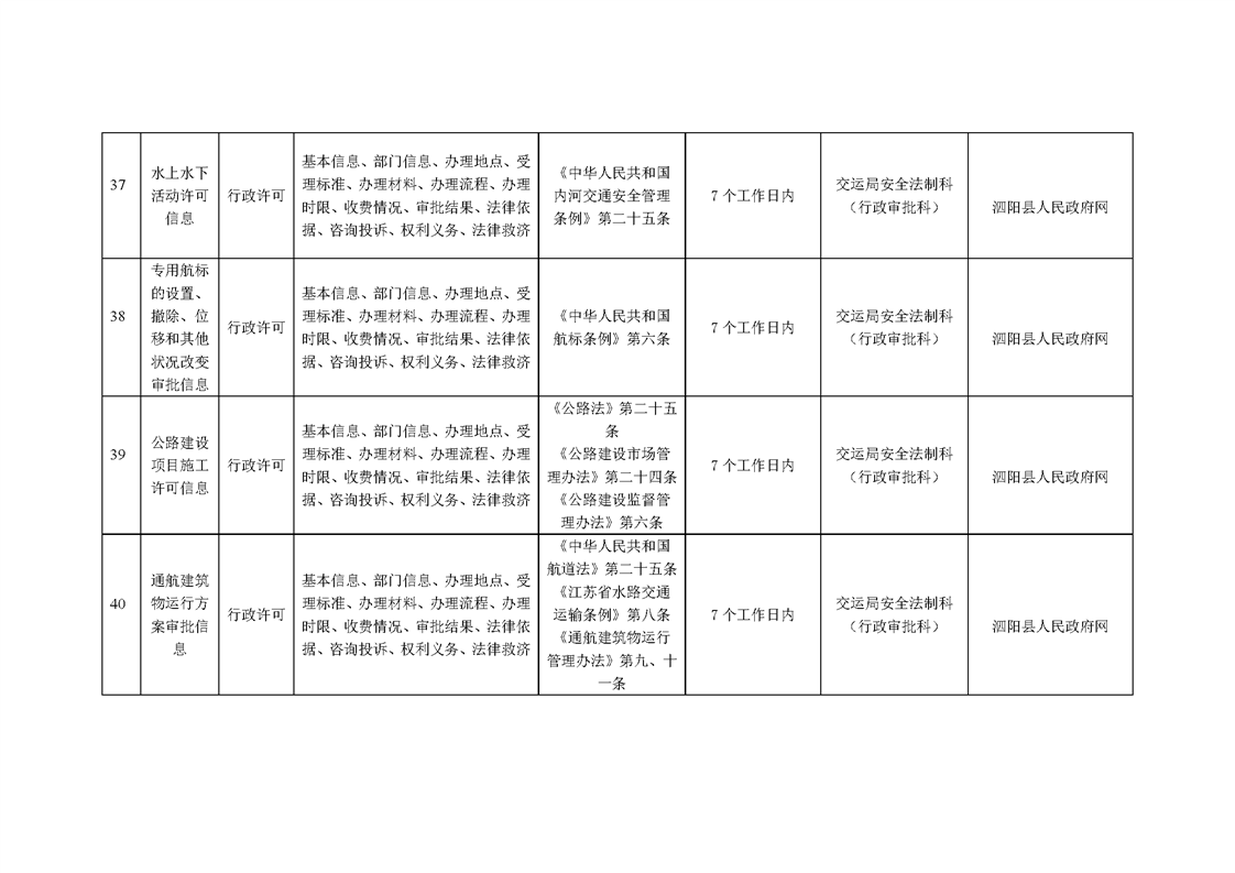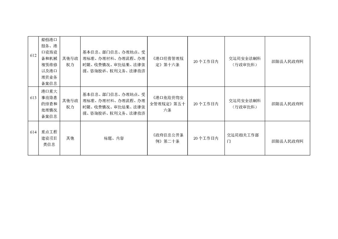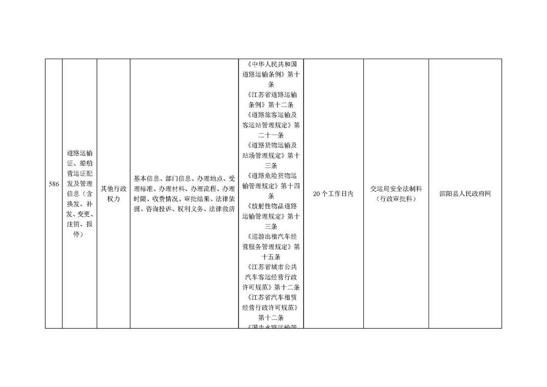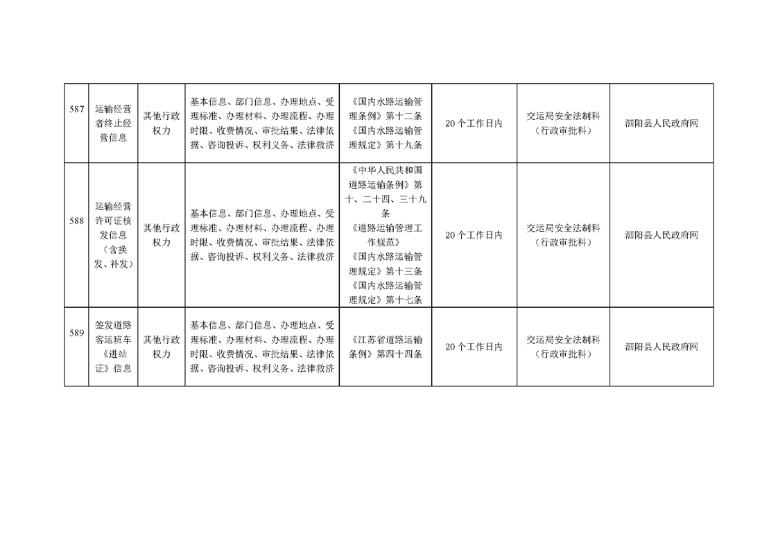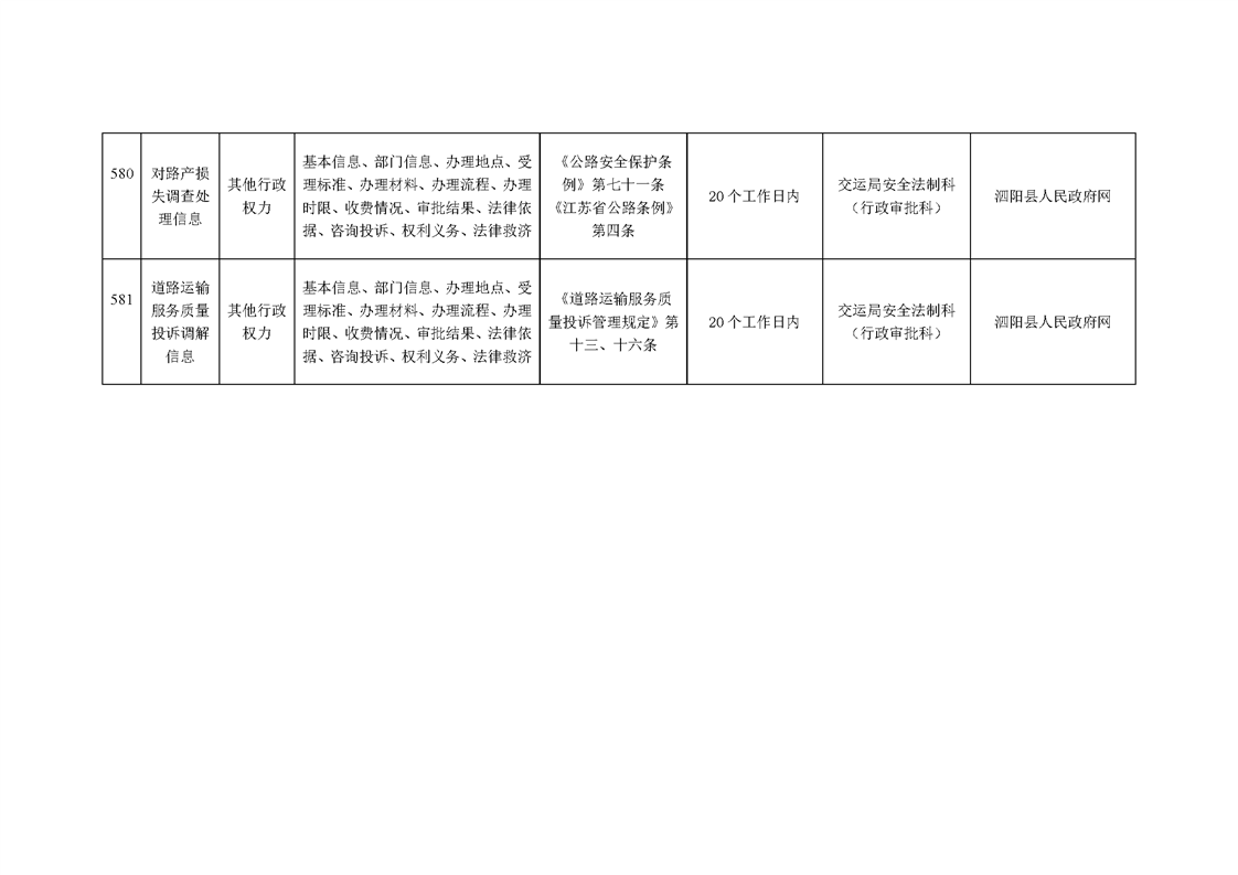 泗陽縣交通運輸局政府信息主動公開目錄清單(2024年)