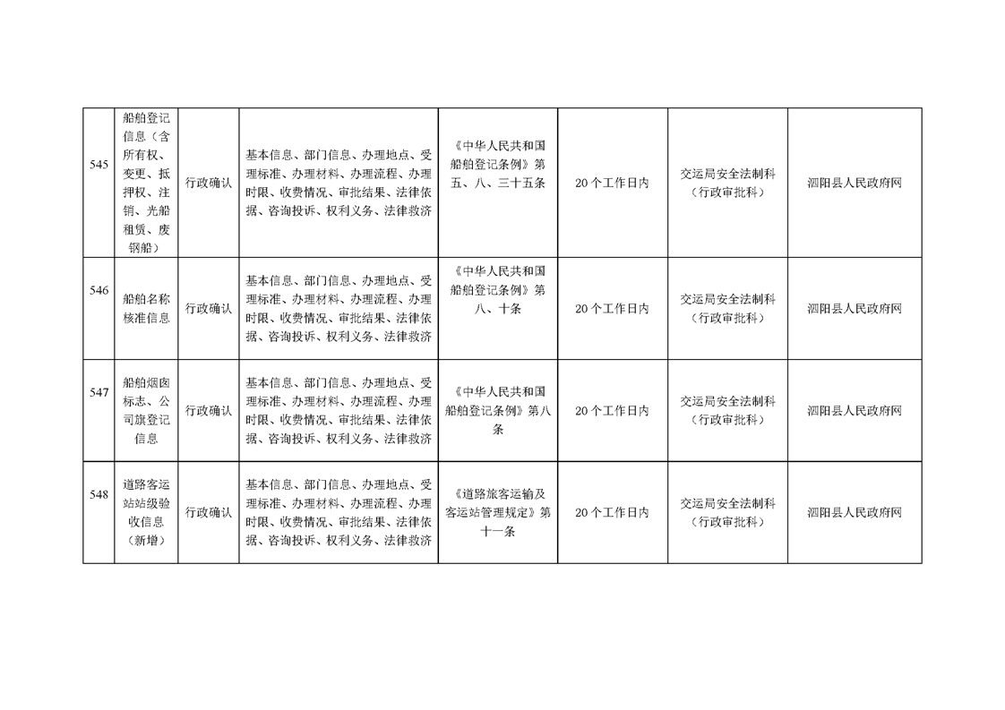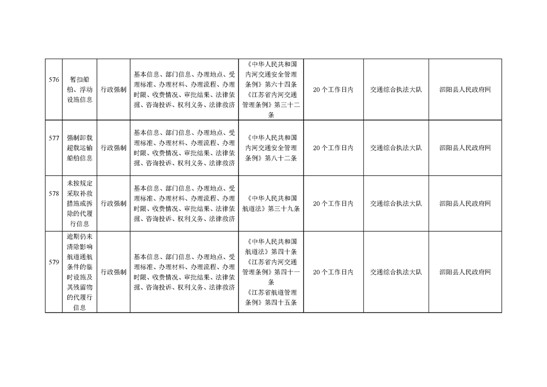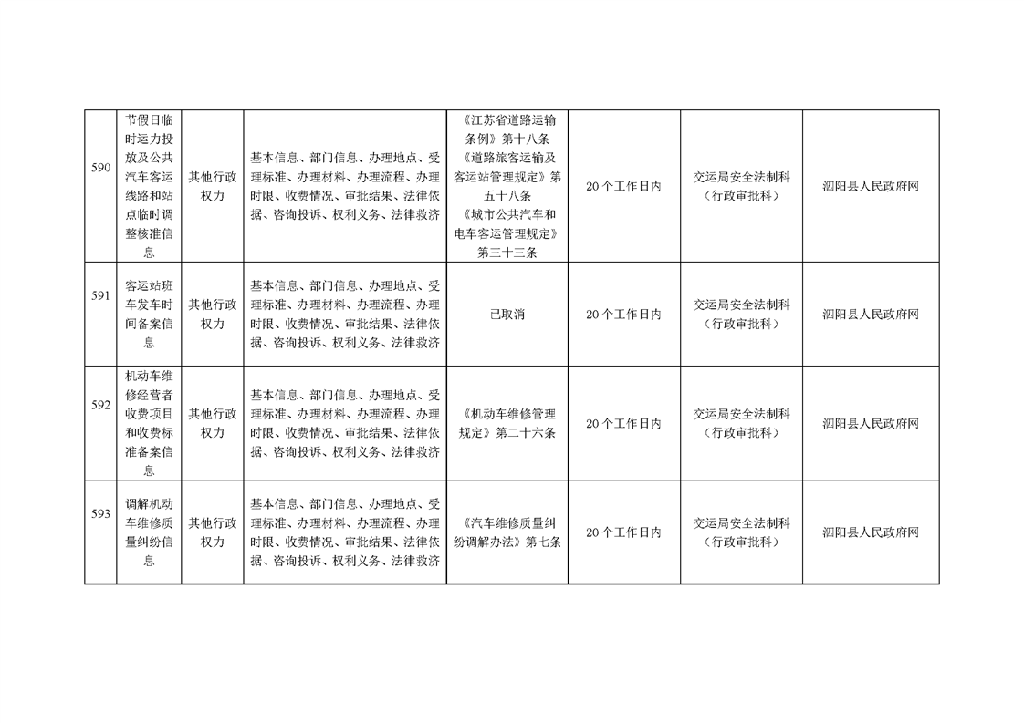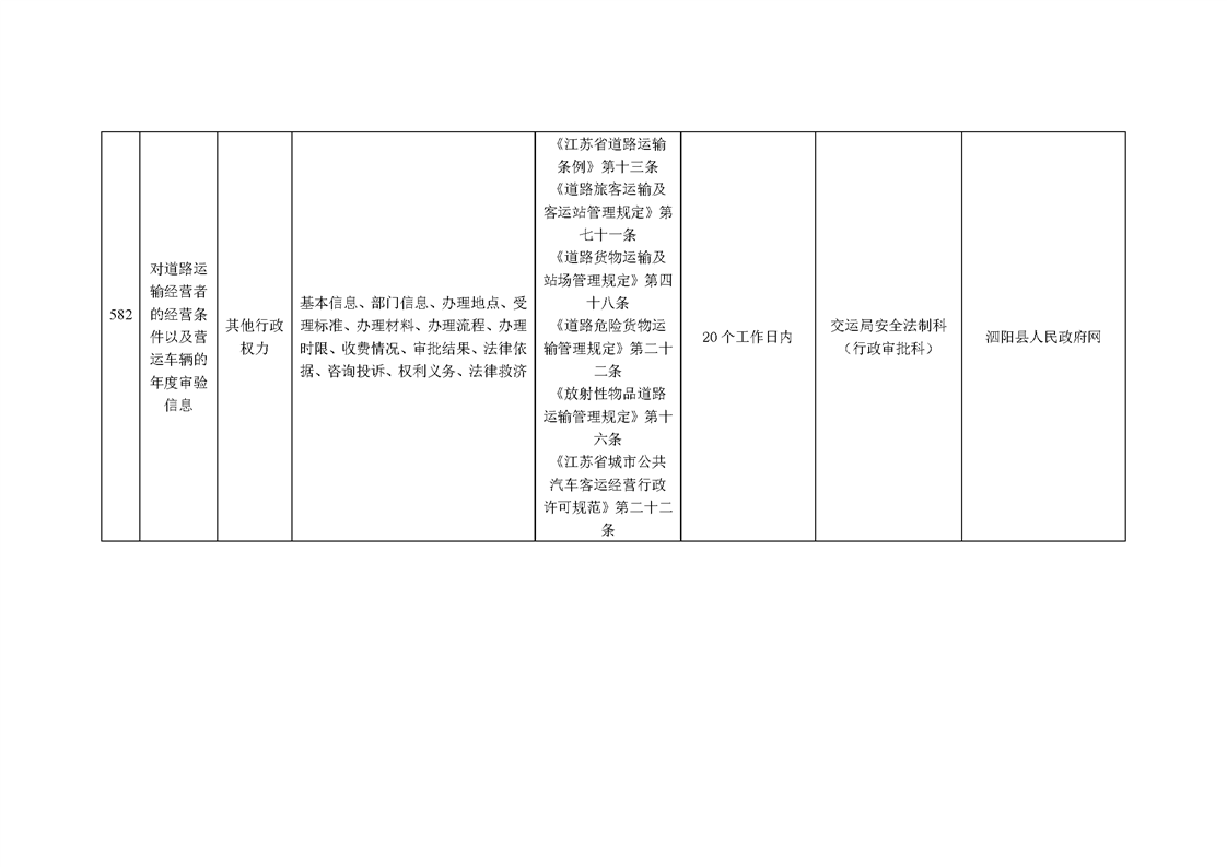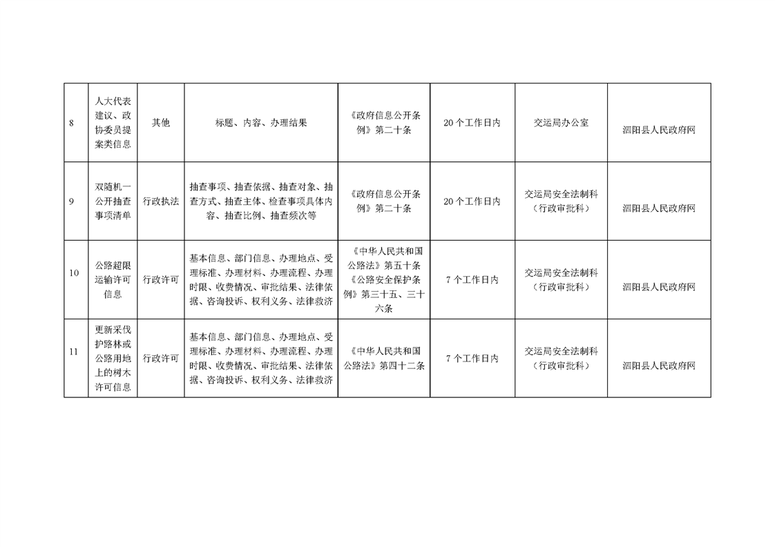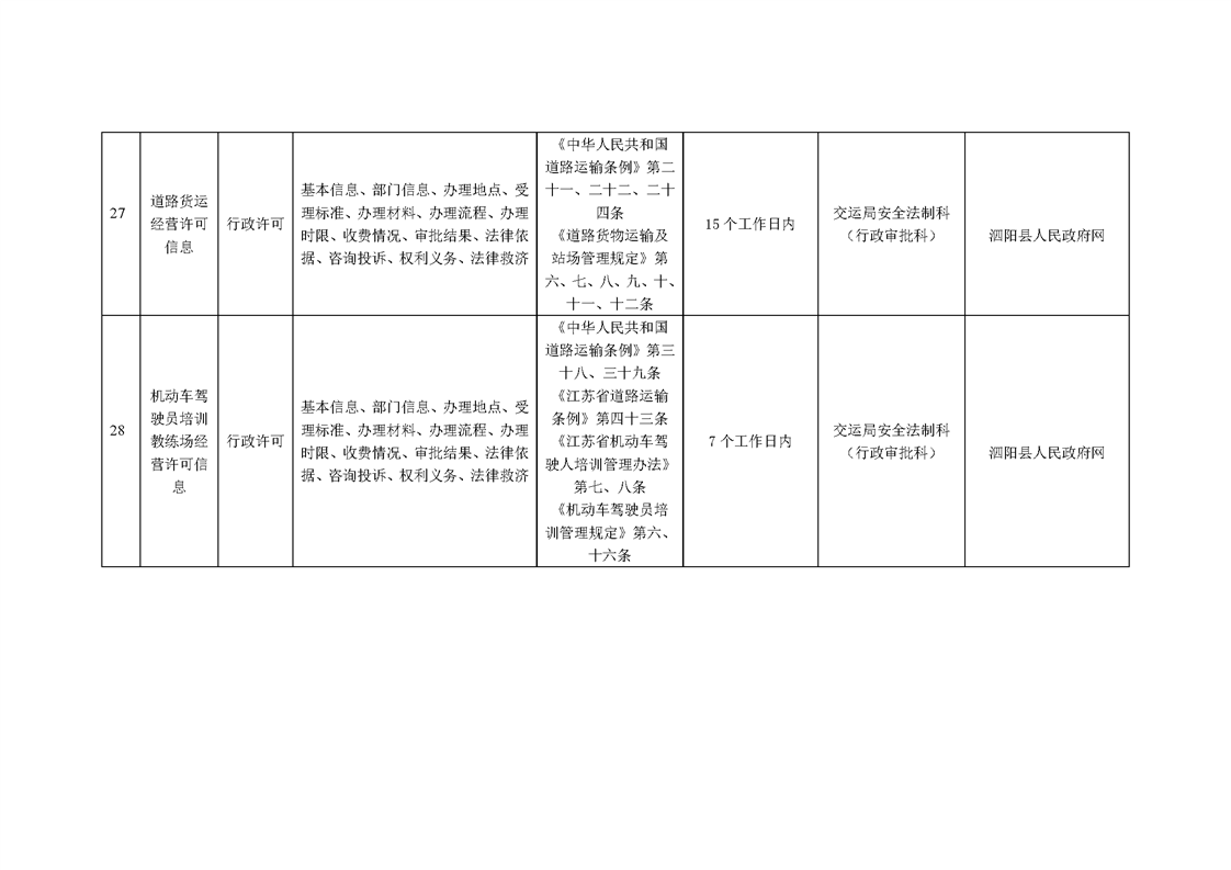 泗陽縣交通運輸局政府信息主動公開目錄清單(2024年)