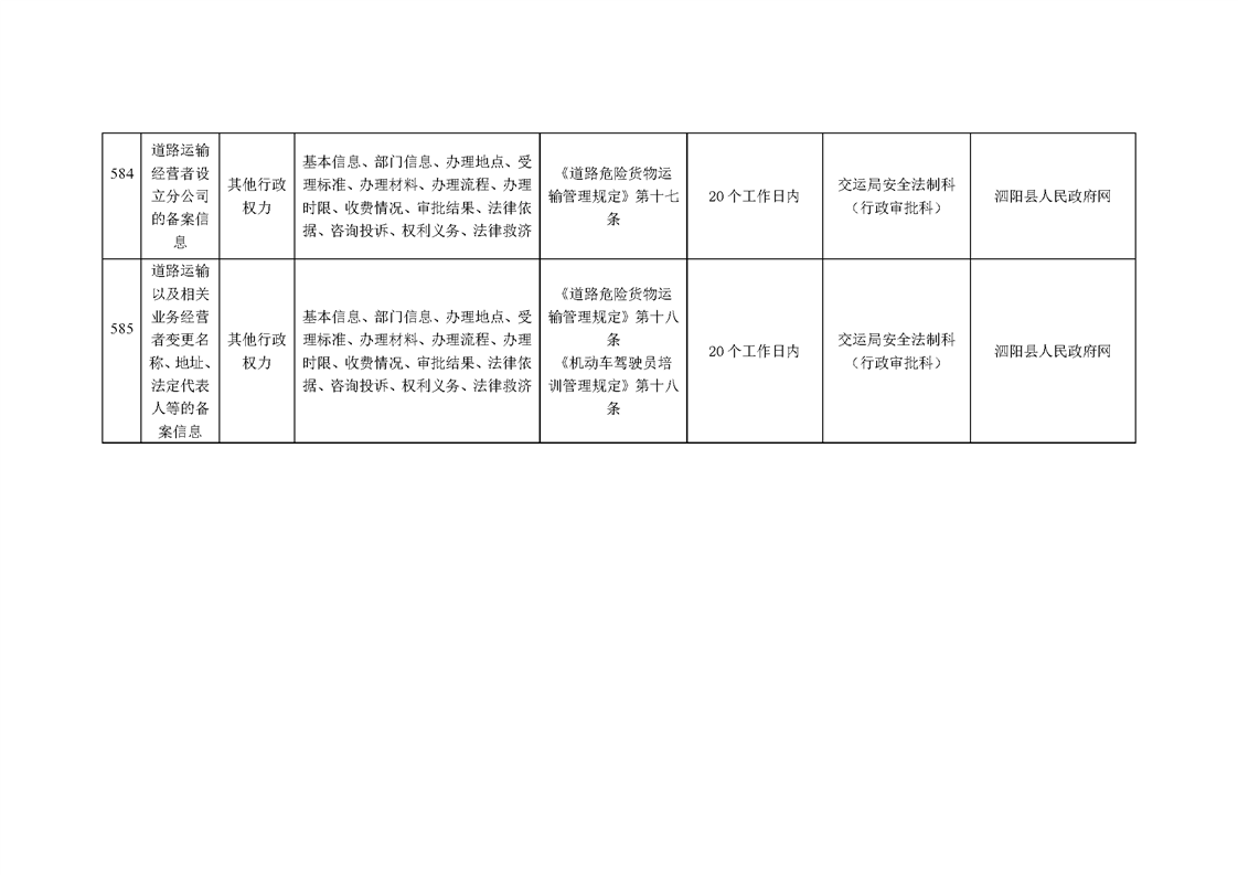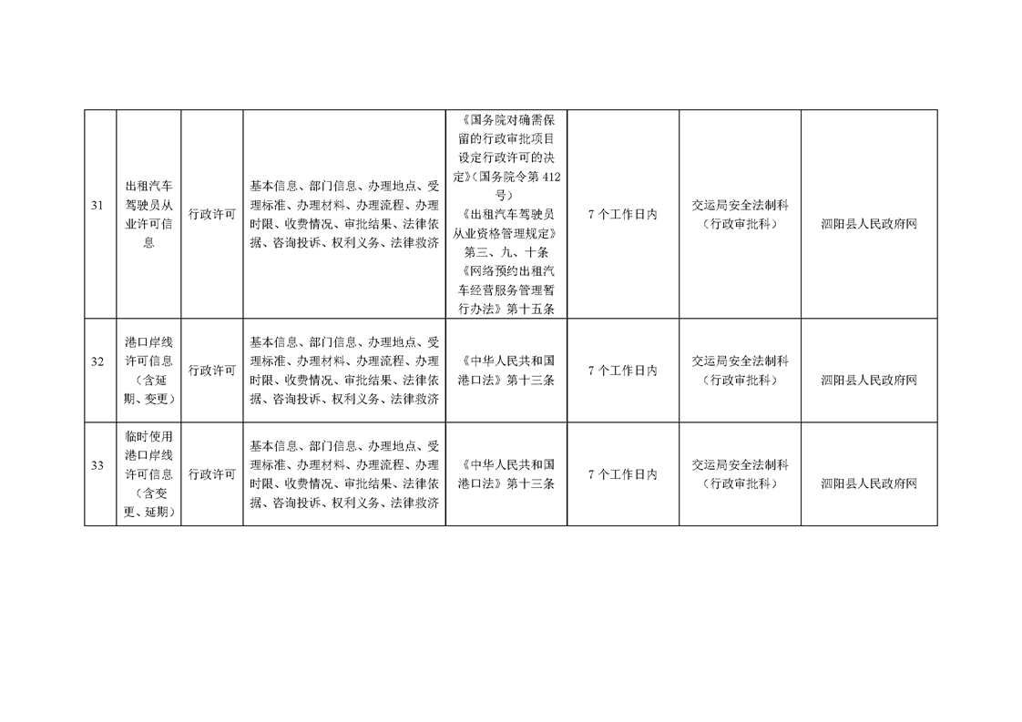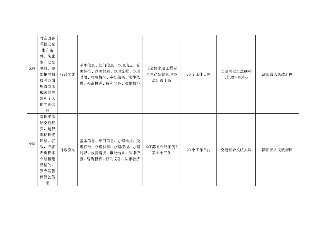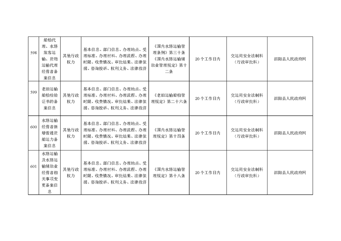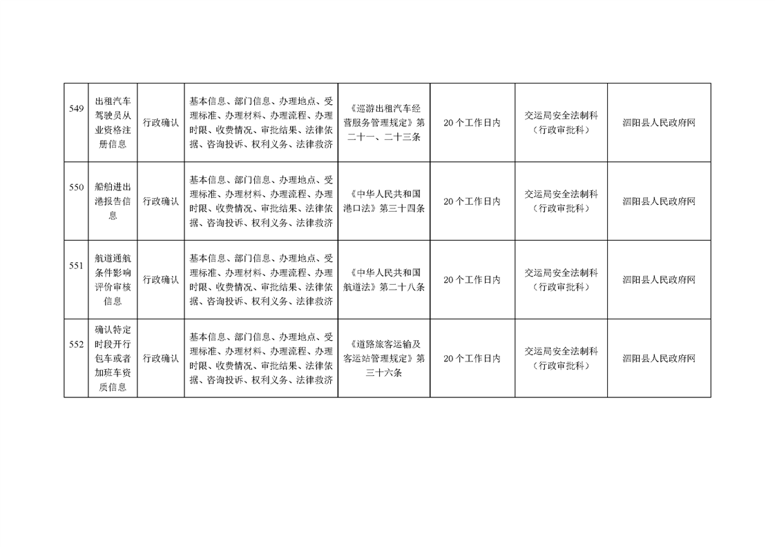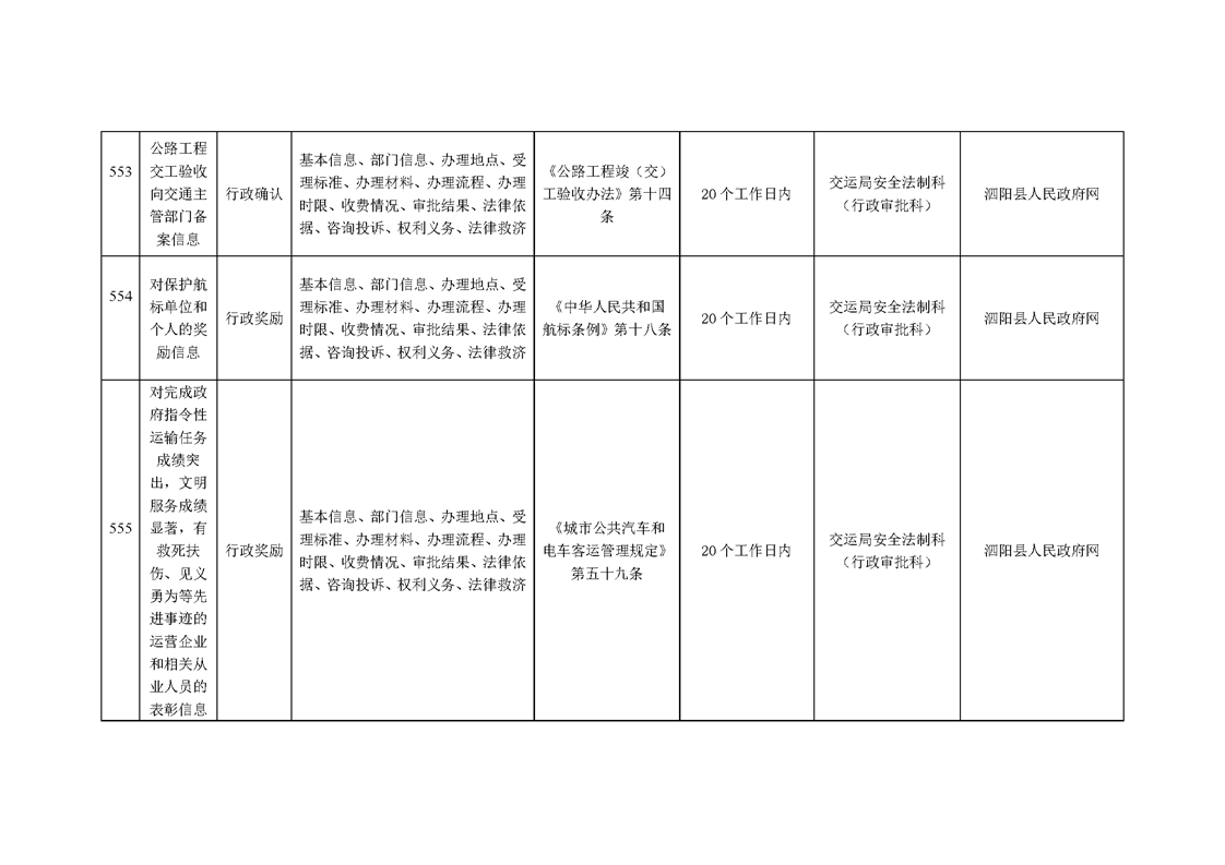 泗陽縣交通運輸局政府信息主動公開目錄清單(2024年)