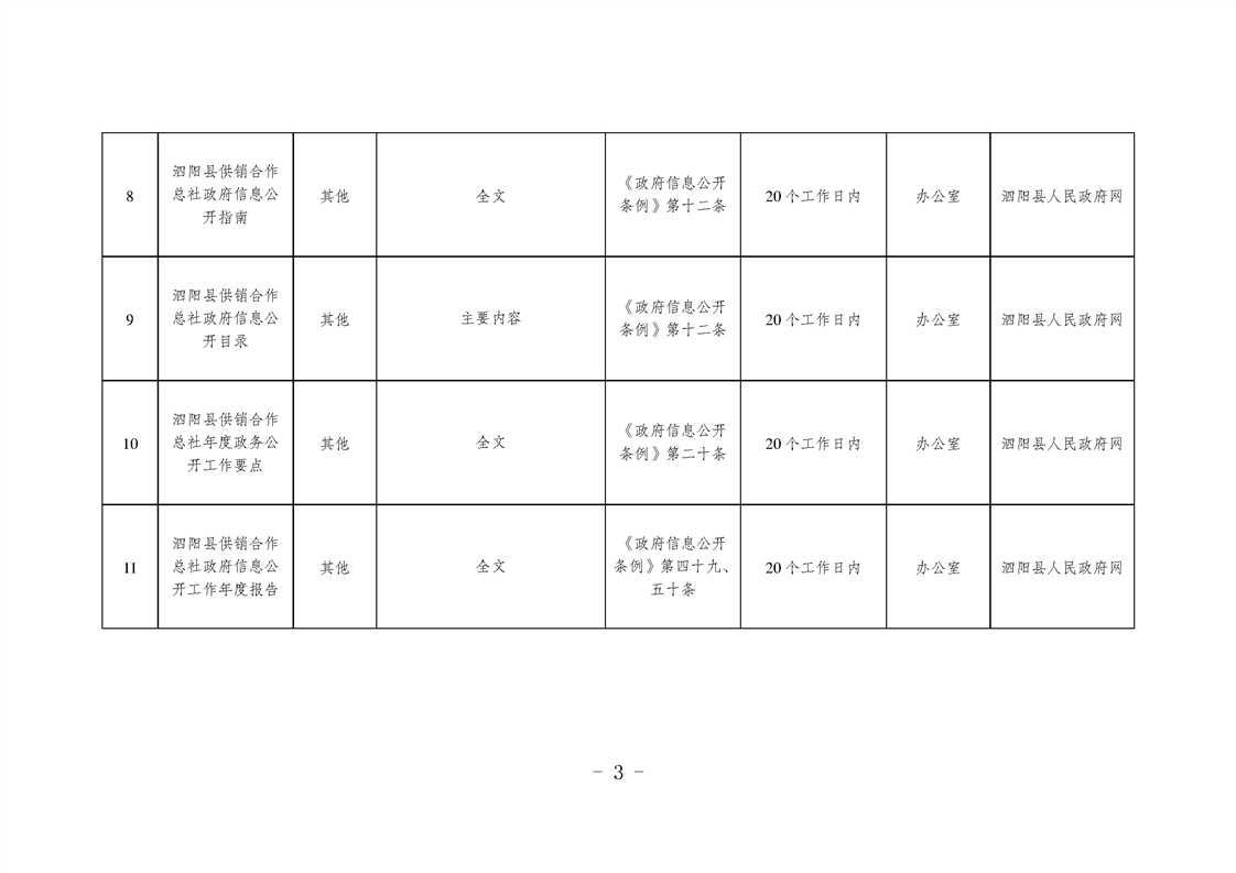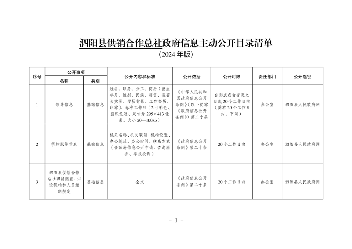 泗陽縣供銷合作總社政府信息主動公開目錄清單(2024年)